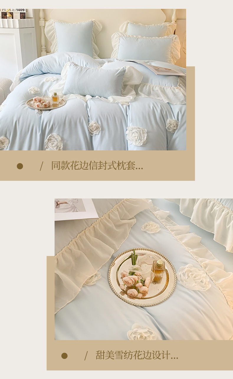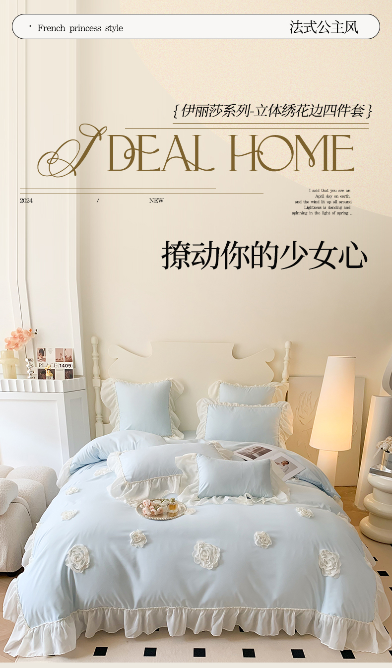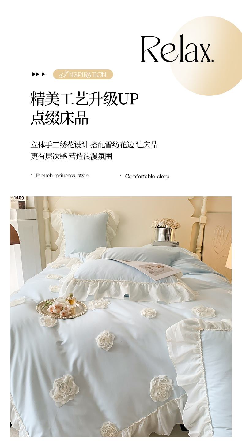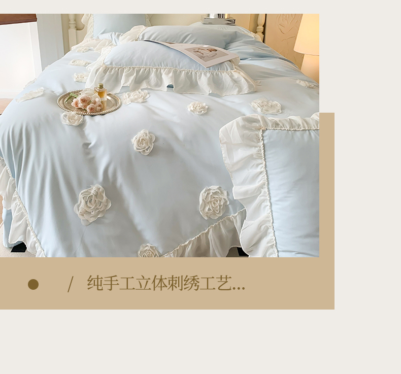 (总)吾欢心 2025秋冬新款加厚雕花绒婴儿绒安娜贝尔系列法式双层花边四件套,安娜贝尔白,安娜贝尔粉,安娜贝尔咖,安娜贝尔蓝,安娜贝尔绿,安娜贝尔紫