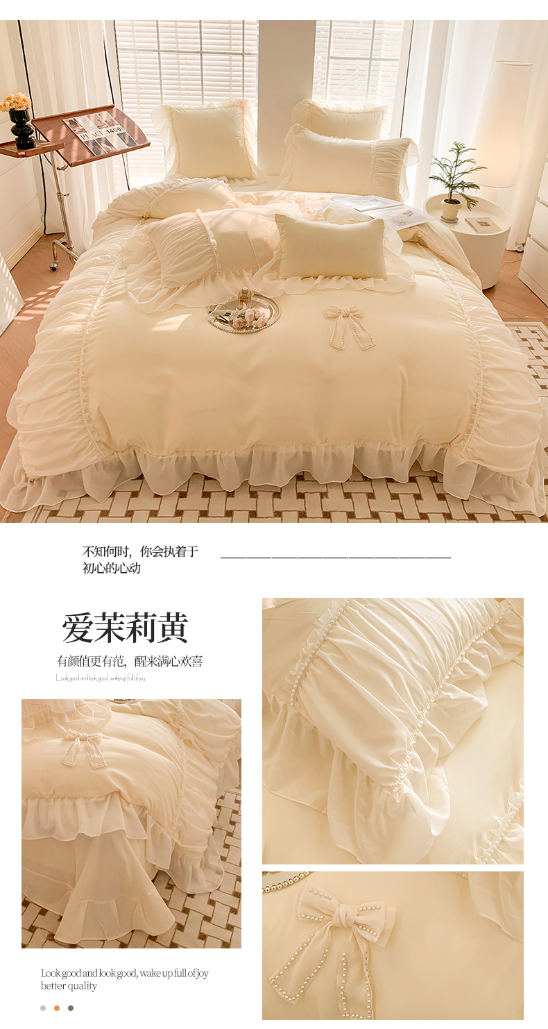 商品名称:吾欢心 2025新款糯小棉四件套-爱茉莉珍珠 爱茉莉黄