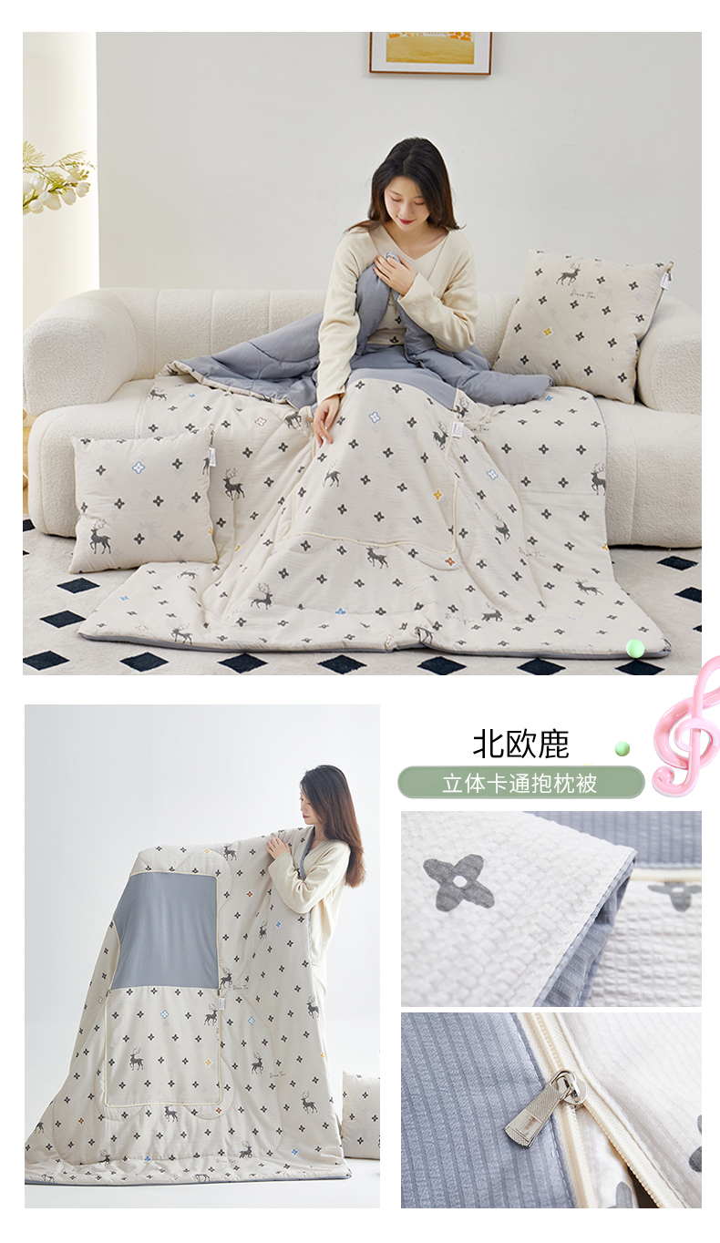 (总)雷娜家居 复合凉感 简约商务款抱枕被,商务卡其,商务灰,商务粉,商务紫,商务绿,商务蓝