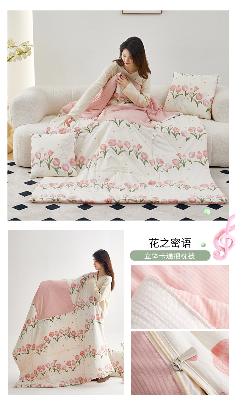 (总)2025新款加厚款图拉拉系列抱枕被,图拉拉粉色,图拉拉咖啡色,图拉拉卡其色