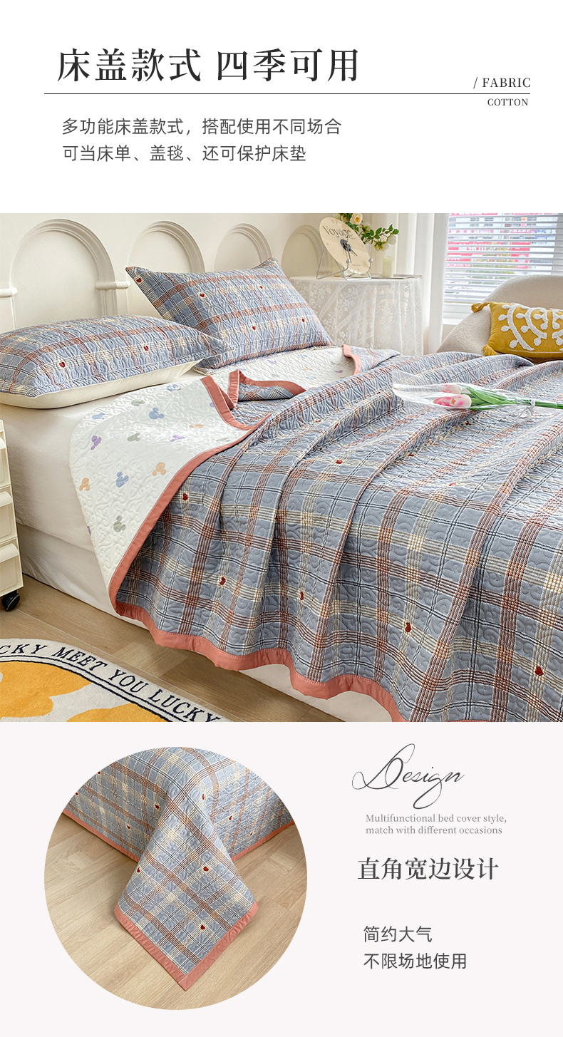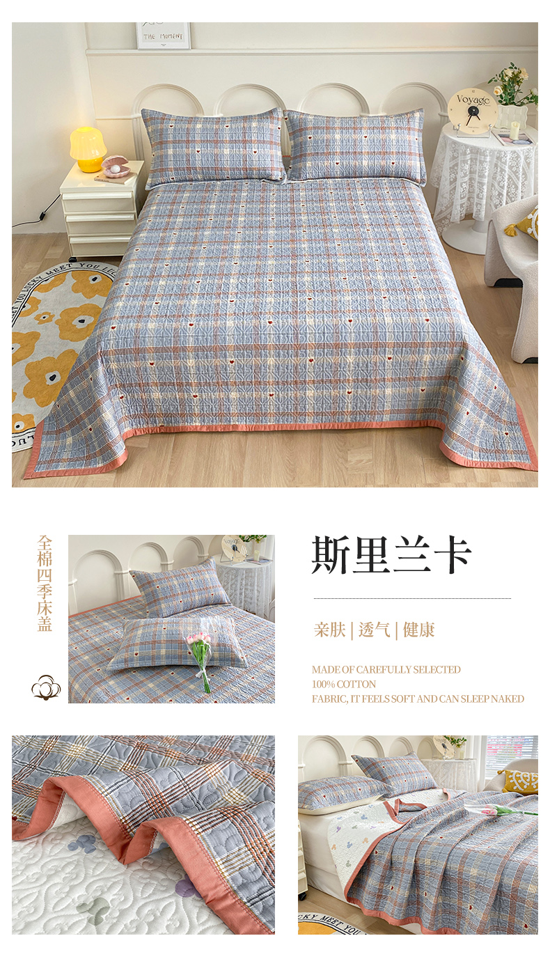 胜权40支A类全棉夹棉绗缝13372简约款印花多功能床盖夏被四季通用斯里兰卡