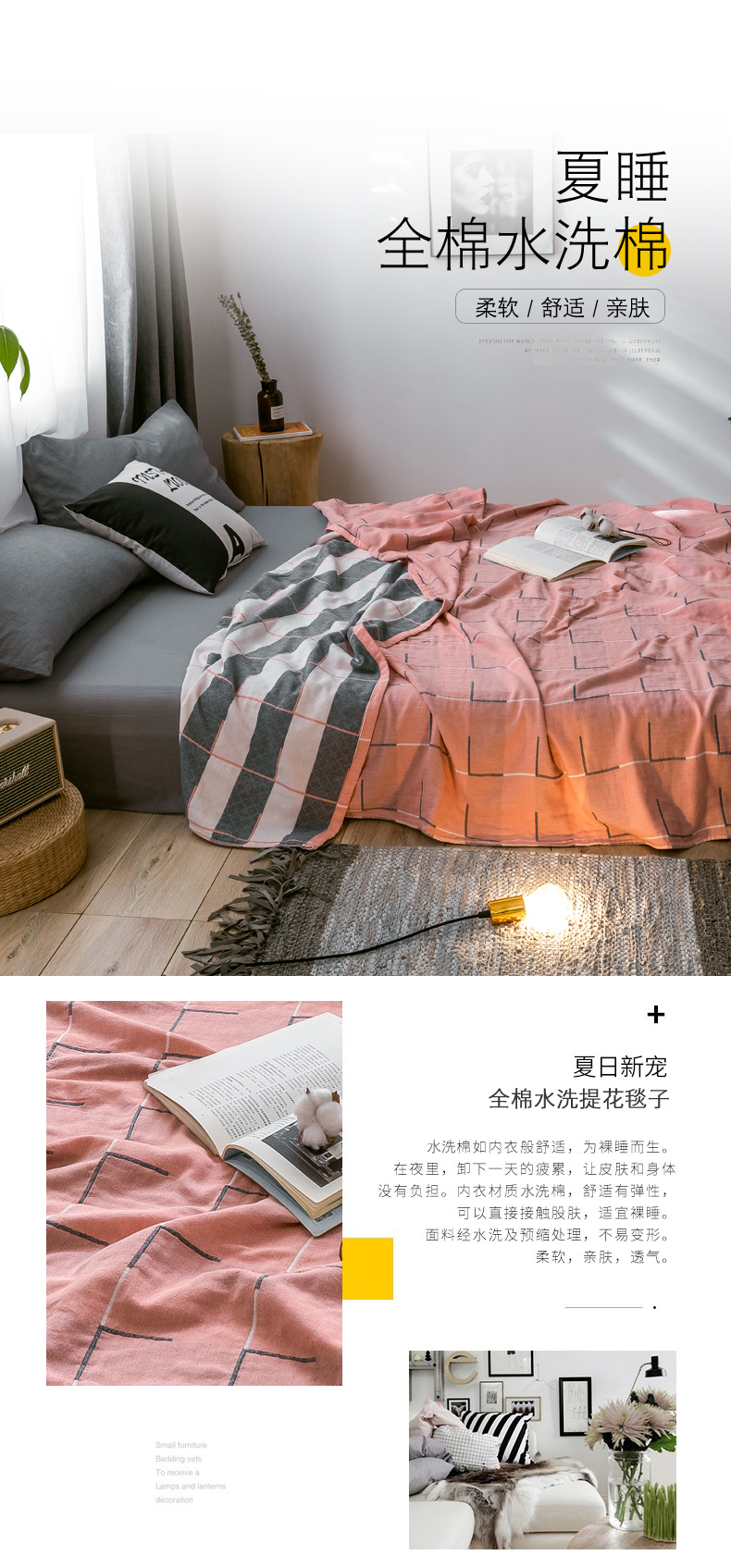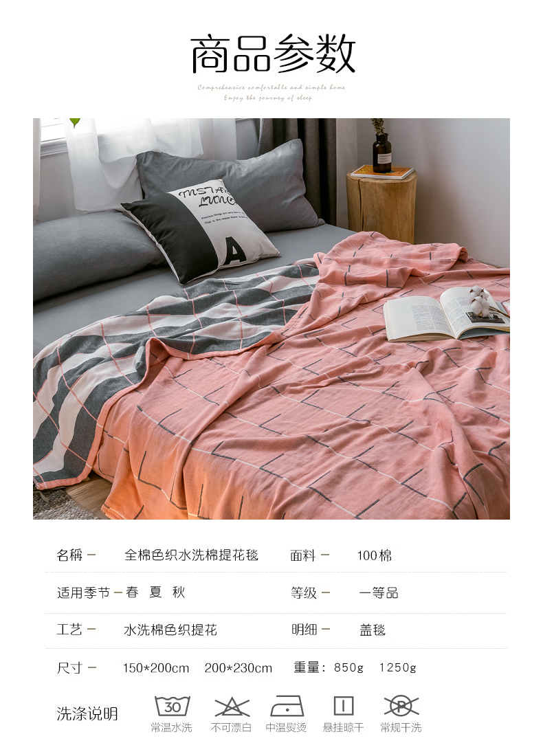 商品名称:朴尔家纺-毛巾被 2024新款三层水洗棉全棉纱布毛巾被 简约线条-粉