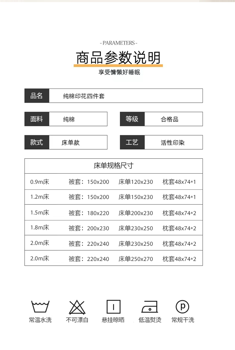 1.8m床单款四件套【被套200*230cm床单230*250cm】 | ¥105.00 |