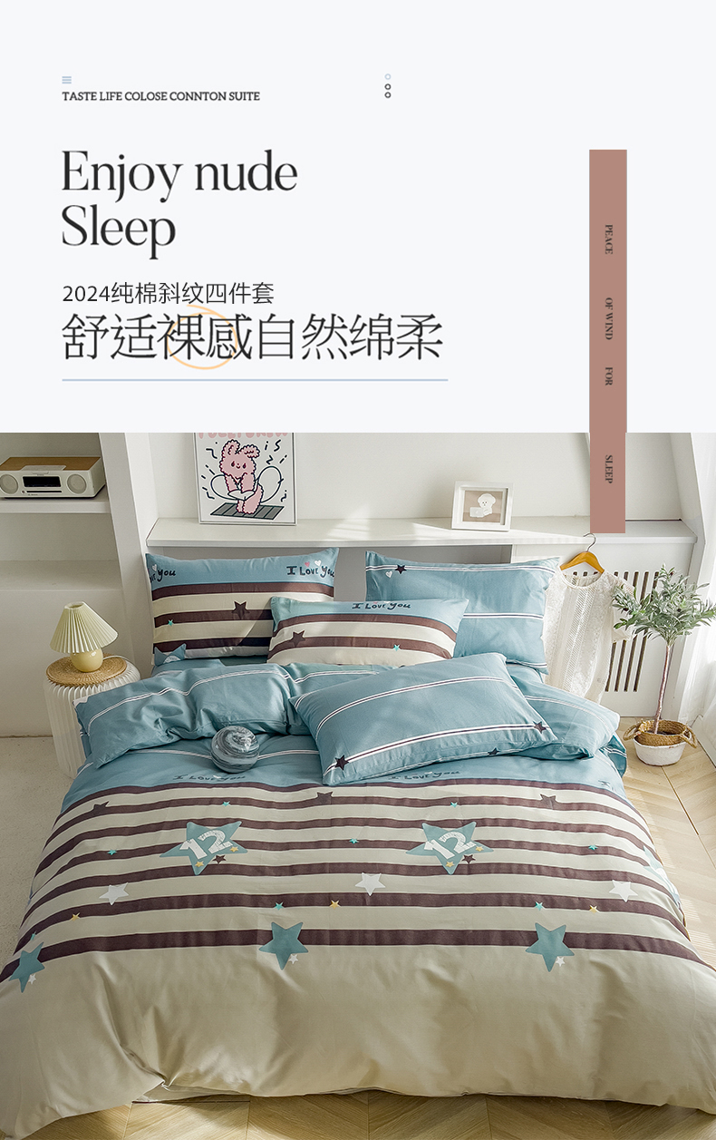 当前位置: 91家纺网 > 商品网购 > 床品套件 > 四件套 > 全棉活性四件套 > 金泰莱 2025新款全棉四件套纯棉四件套斜纹印花四件套 星愿
