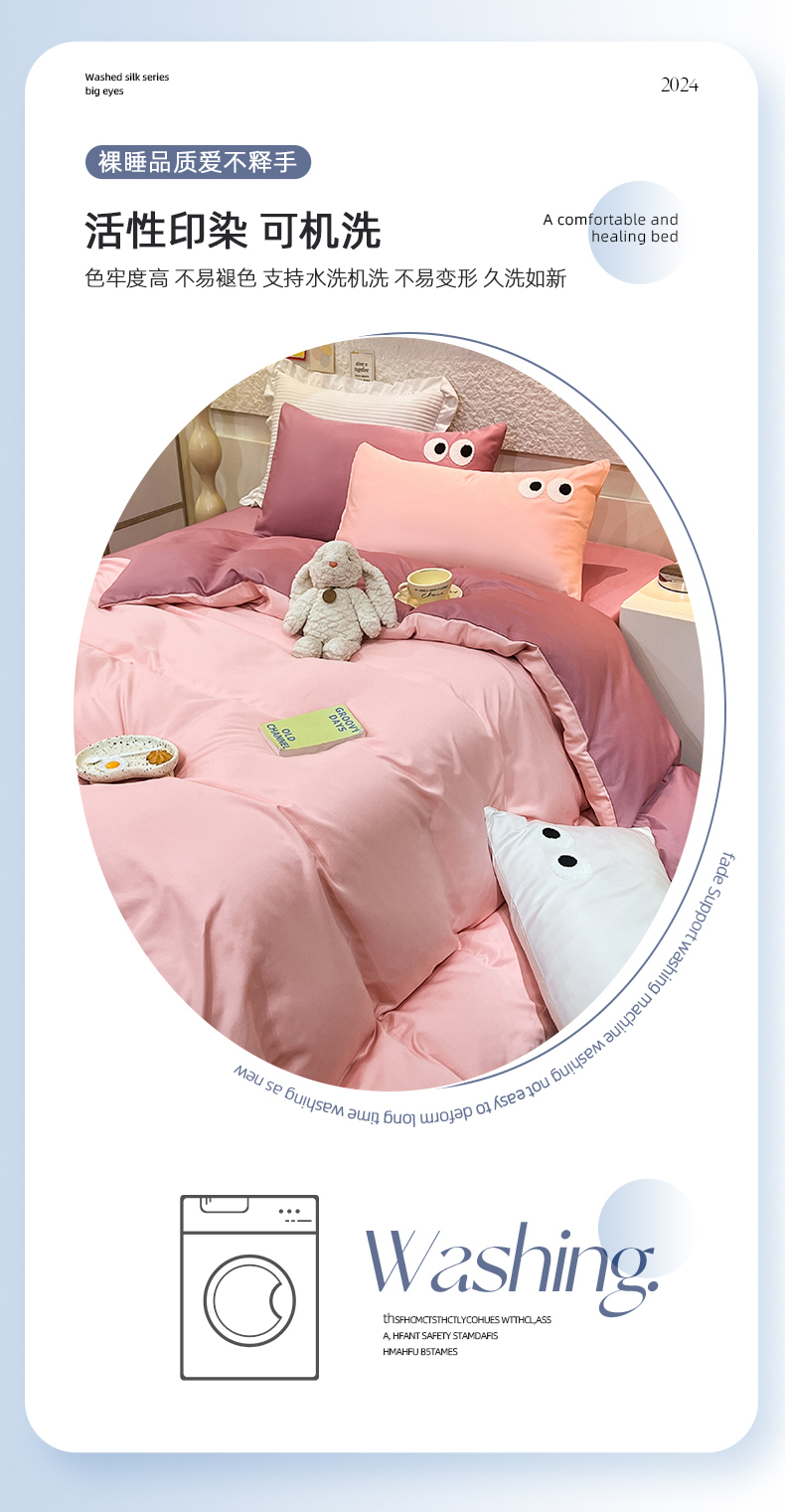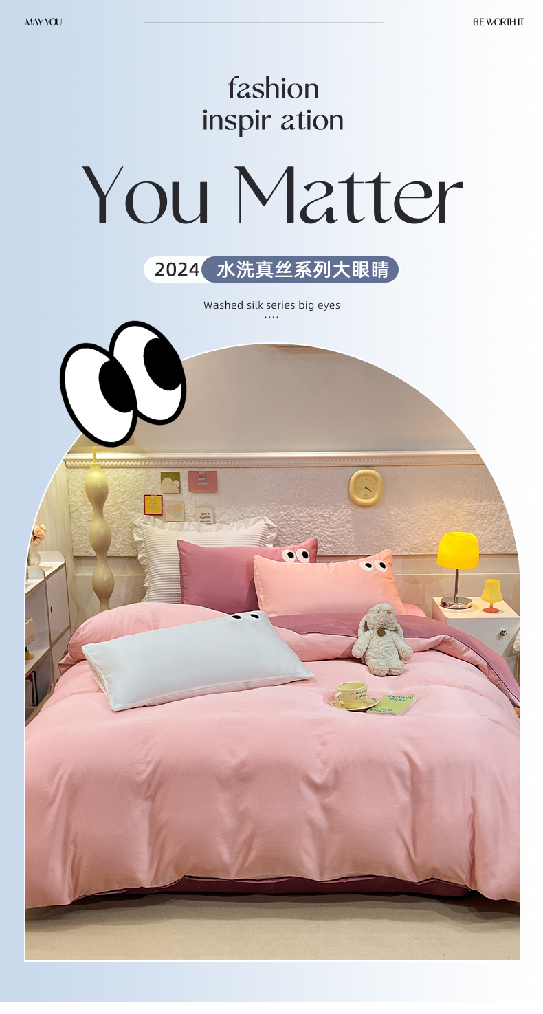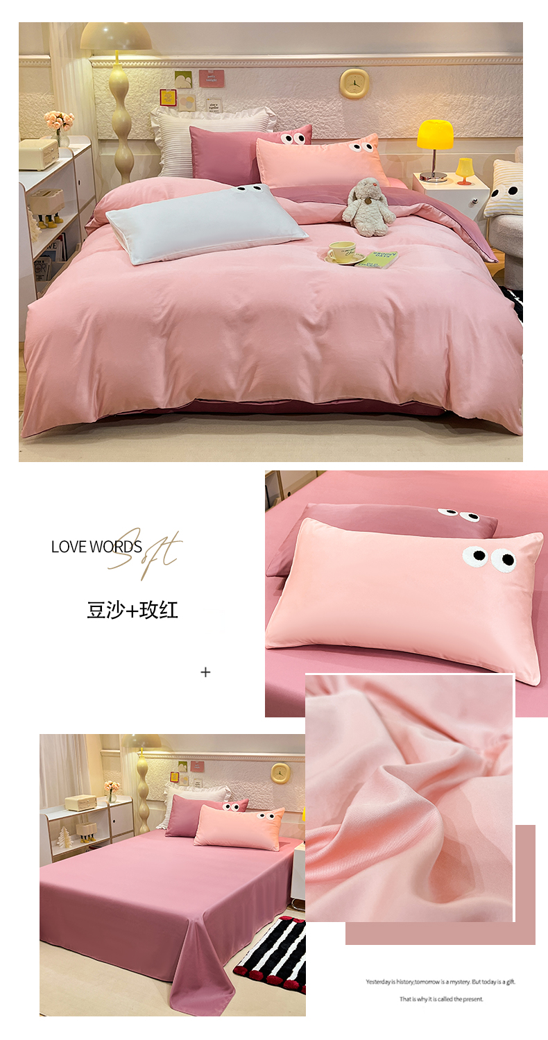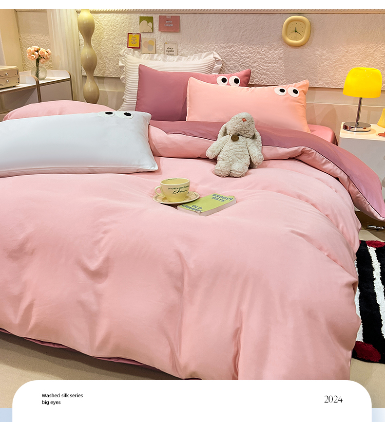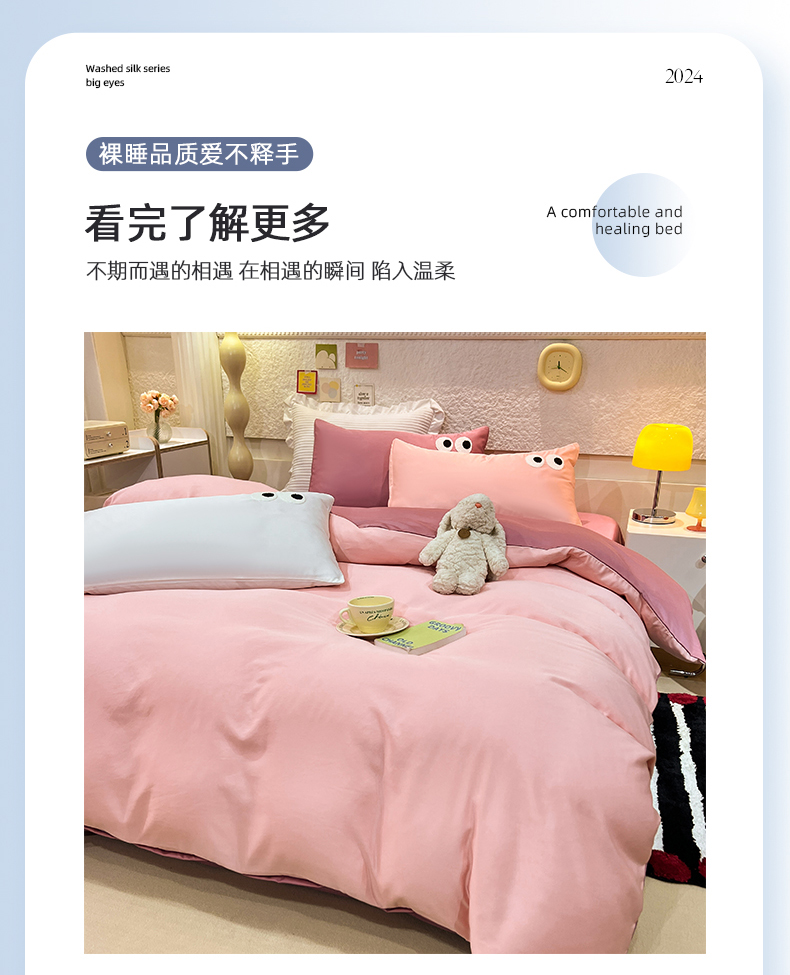 商品名称:艾米家居 2025新款水洗真丝大眼睛系列四件套 豆沙+玫红