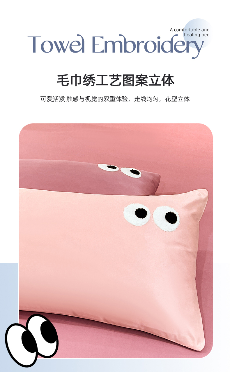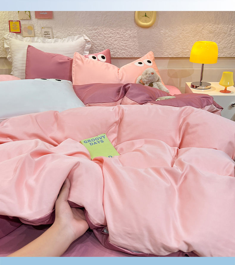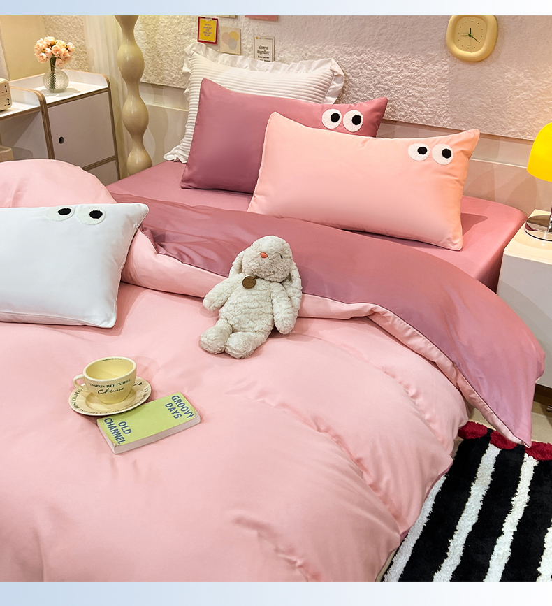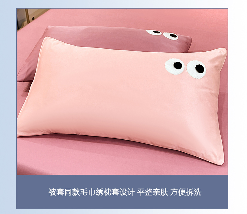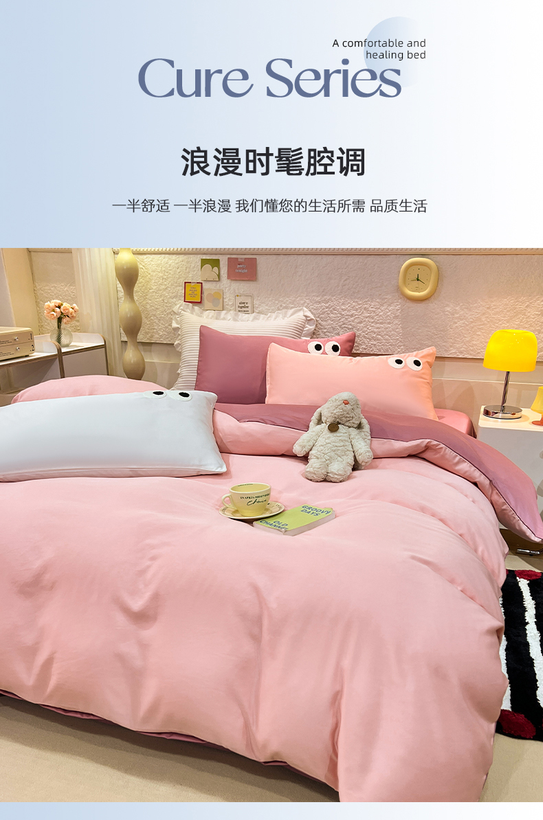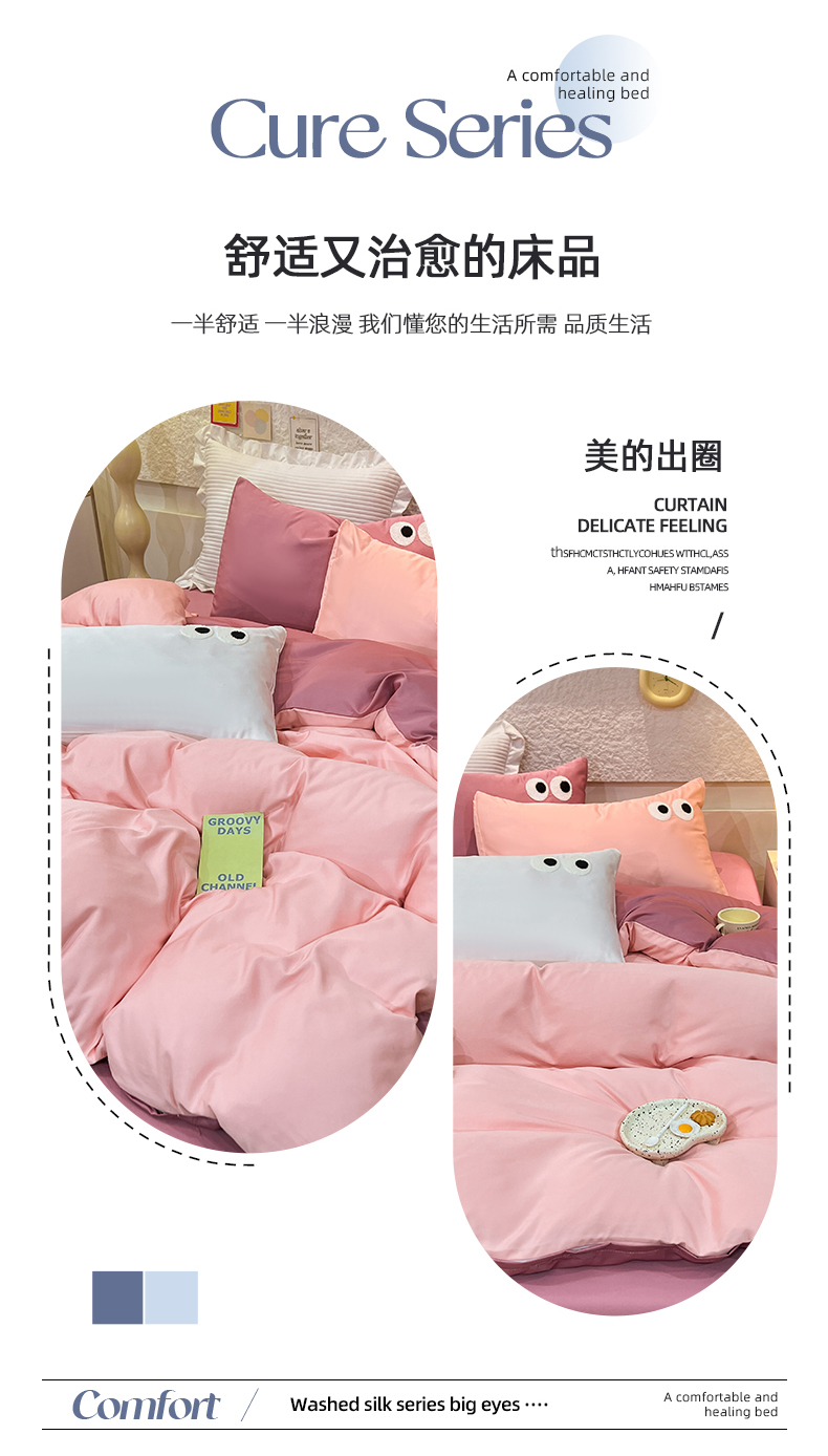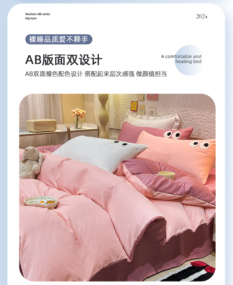 商品名称:艾米家居 2025新款水洗真丝大眼睛系列四件套 豆沙+玫红