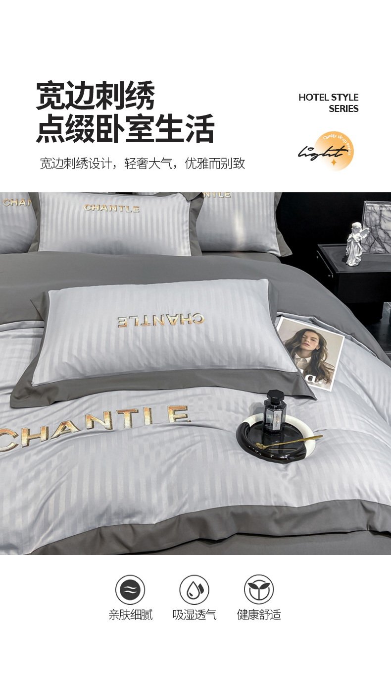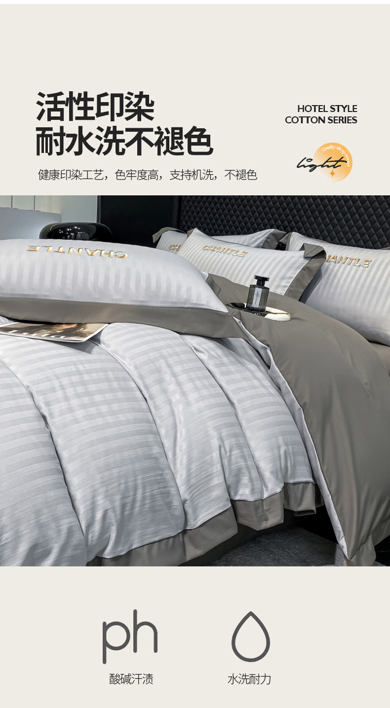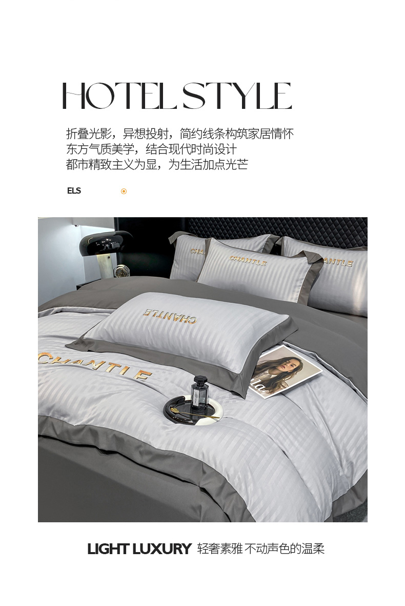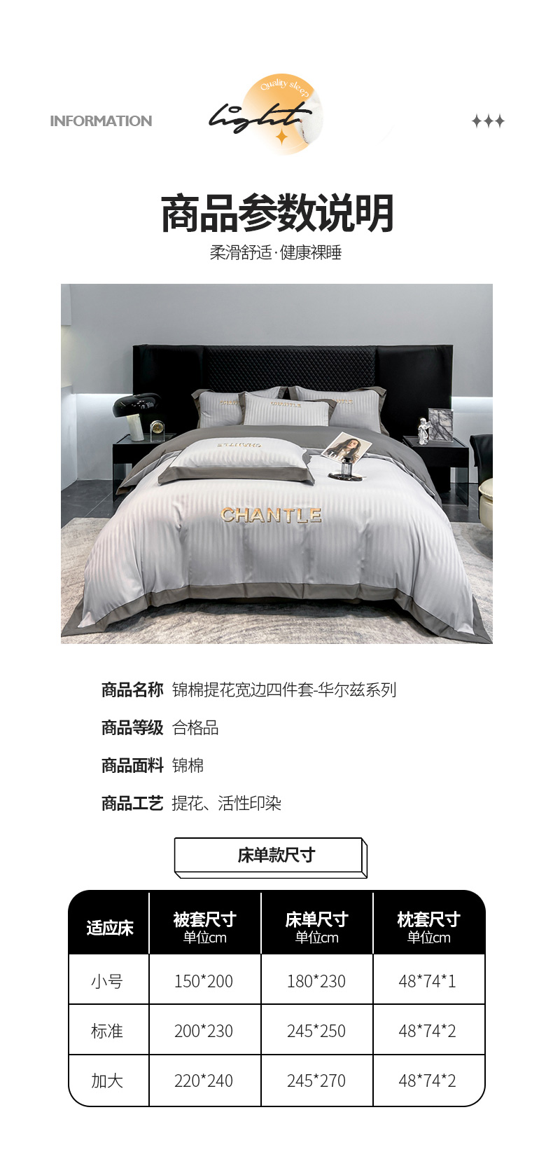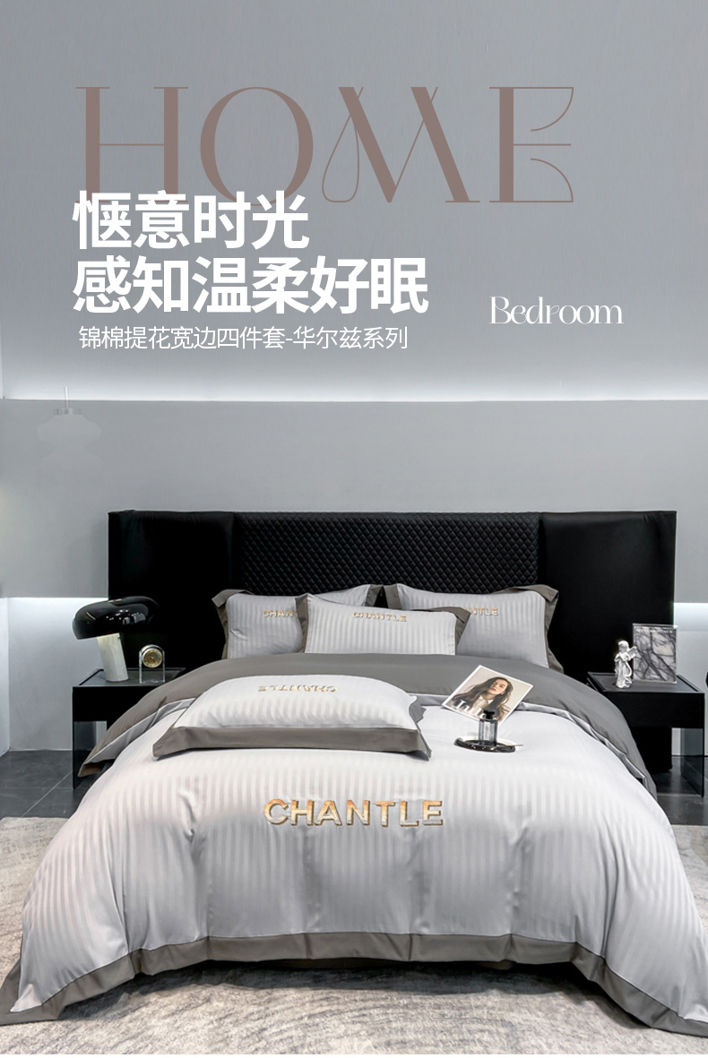 首尔家纺 2024新款锦棉提花宽边四件套-华尔兹系列 华尔兹-浅灰