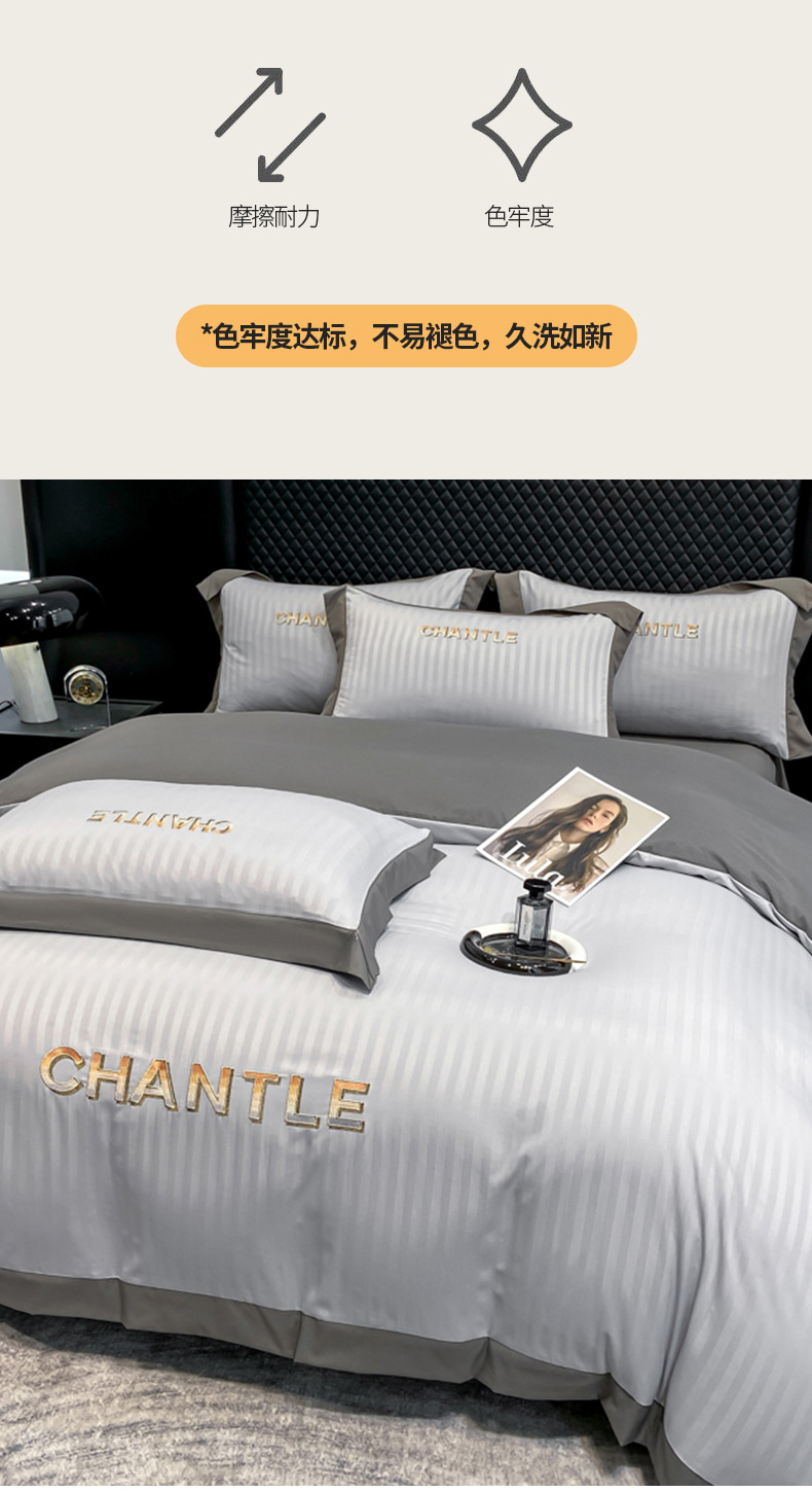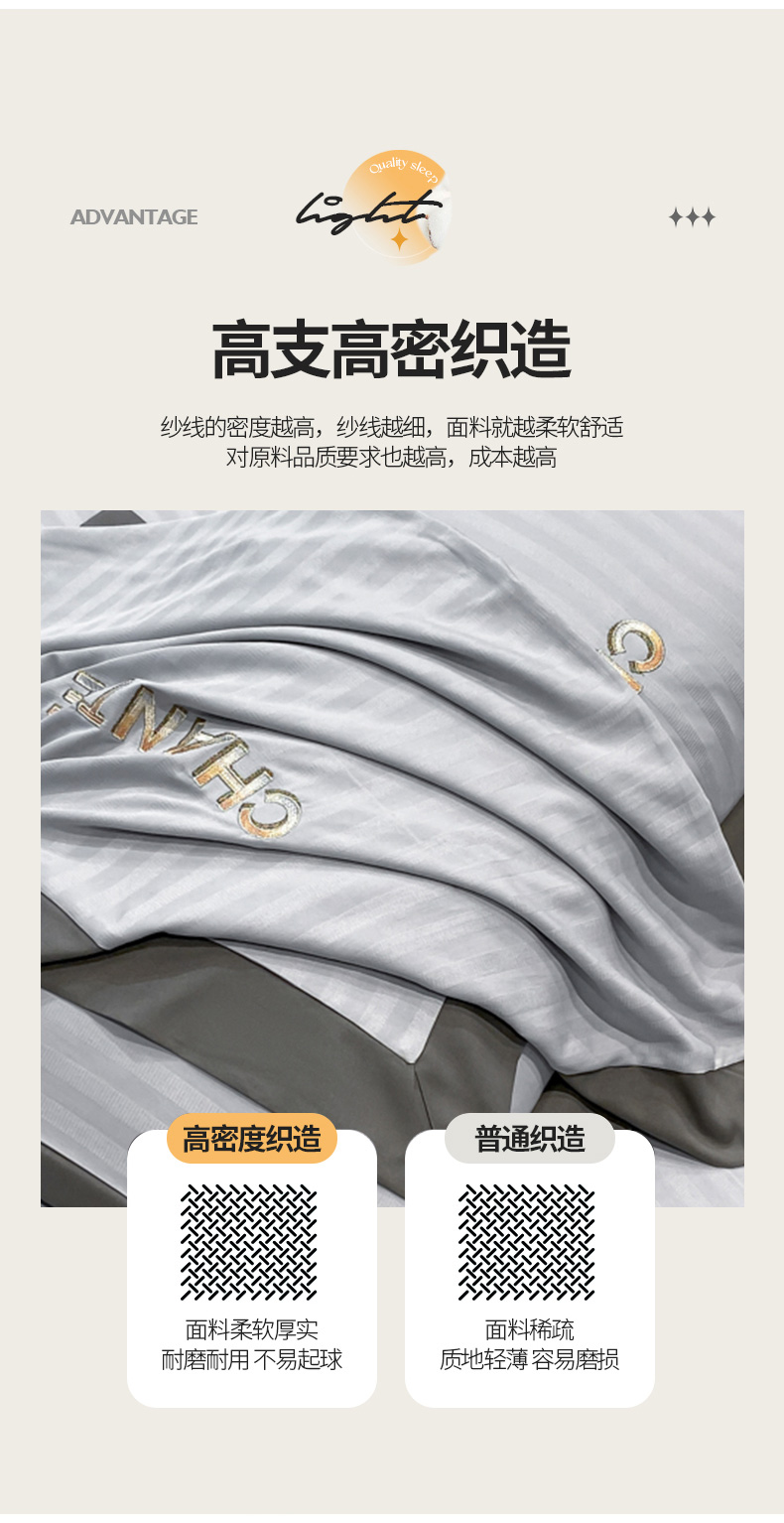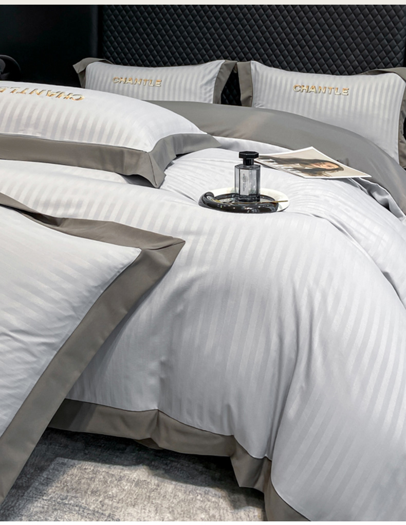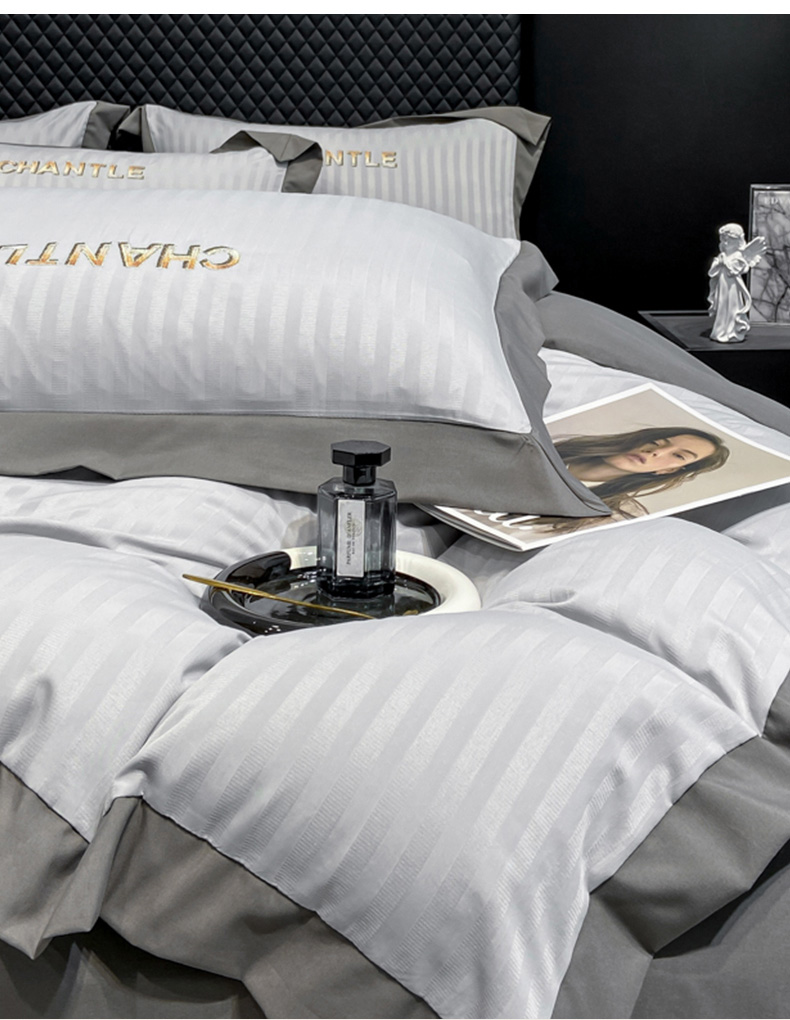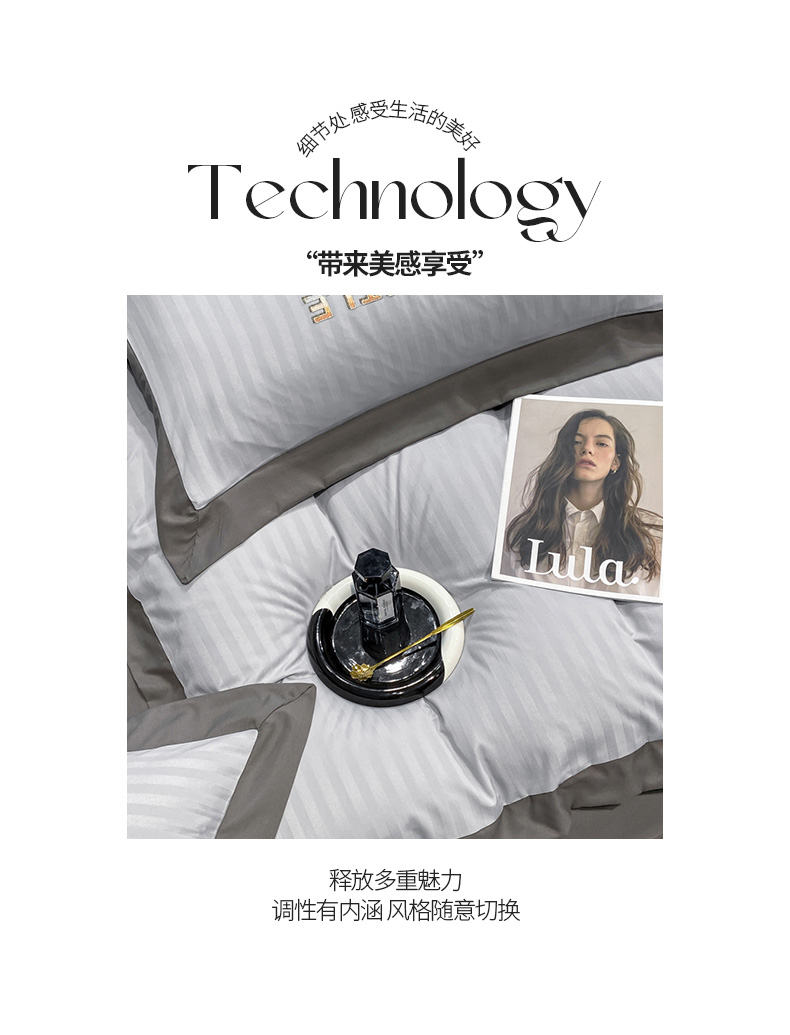 首尔家纺 2024新款锦棉提花宽边四件套-华尔兹系列 华尔兹-浅灰