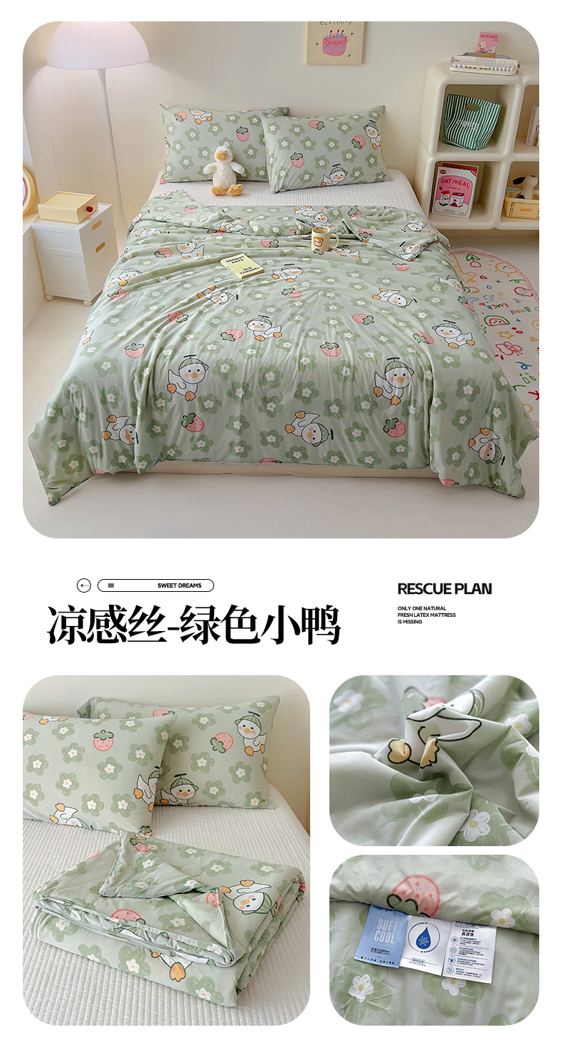 商品名称:木堇家居 2024新款A类凉感丝凉感冰淇淋大豆夏被 凉感丝-绿色小鸭