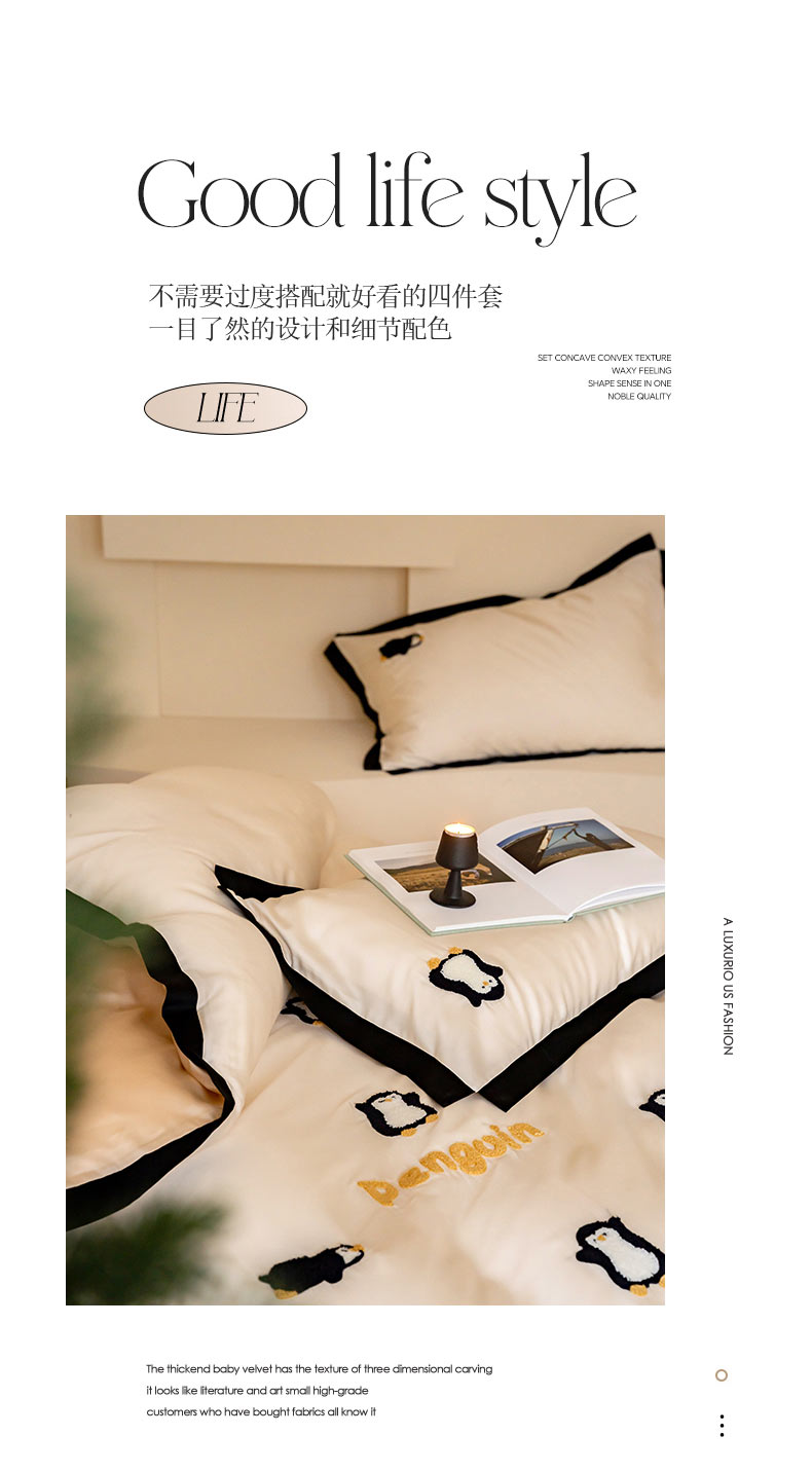 当前位置: 91家纺网 > 商品网购 > 床品套件 > 四件套 > 莱赛尔四件套 > FORTWO家纺原创设计(FOR TWO家纺) 2024新款天丝系列四件套 企鹅