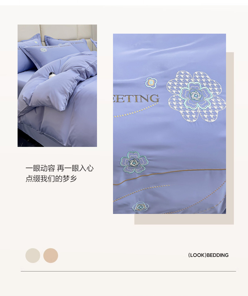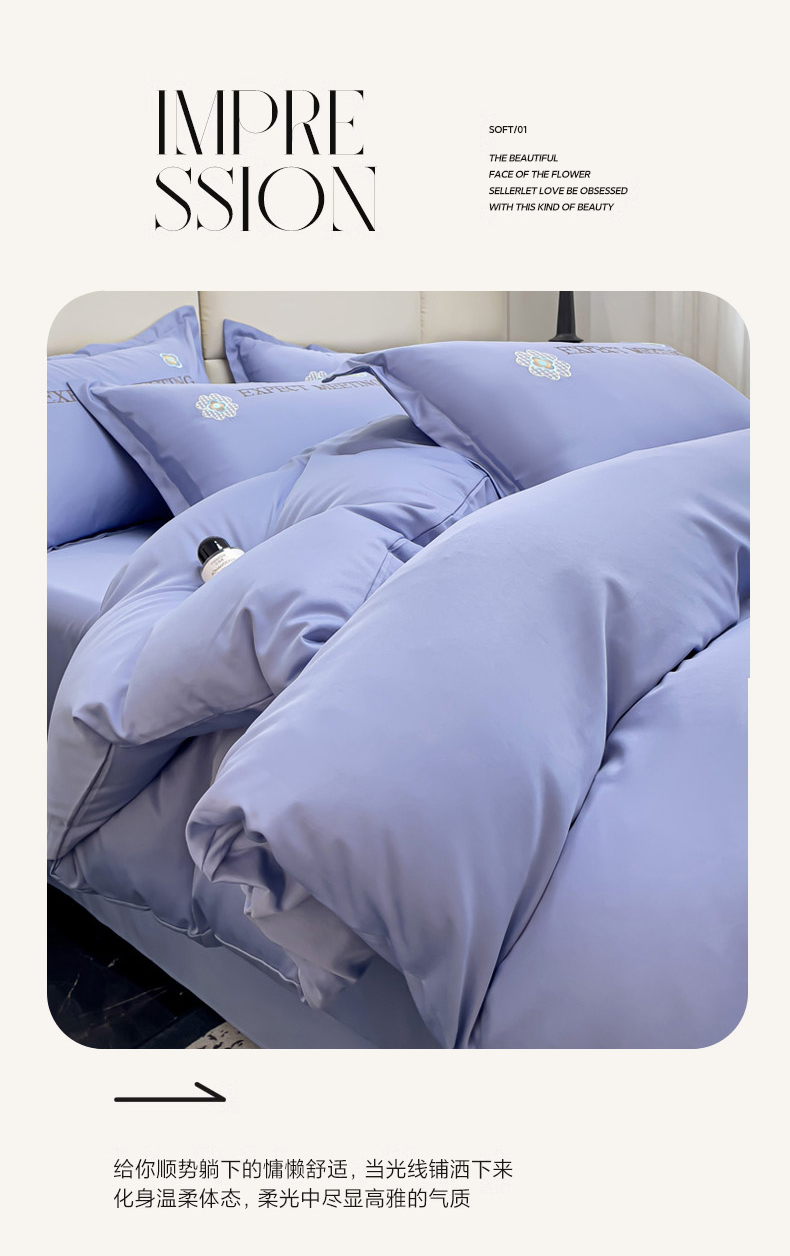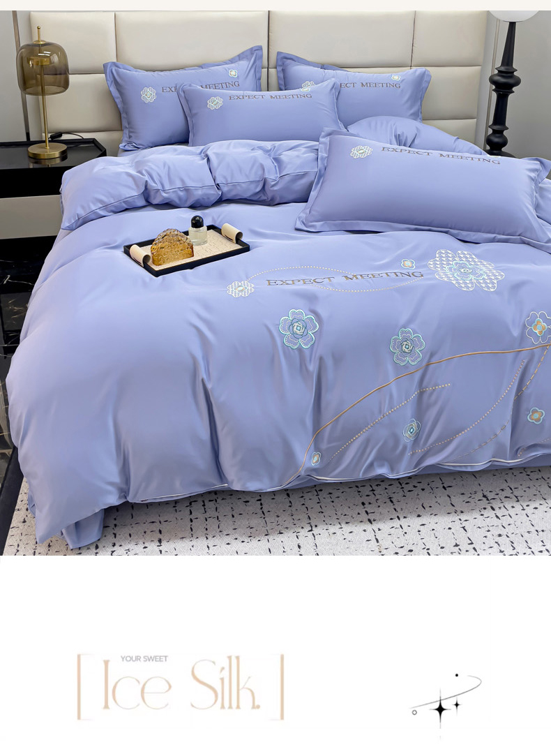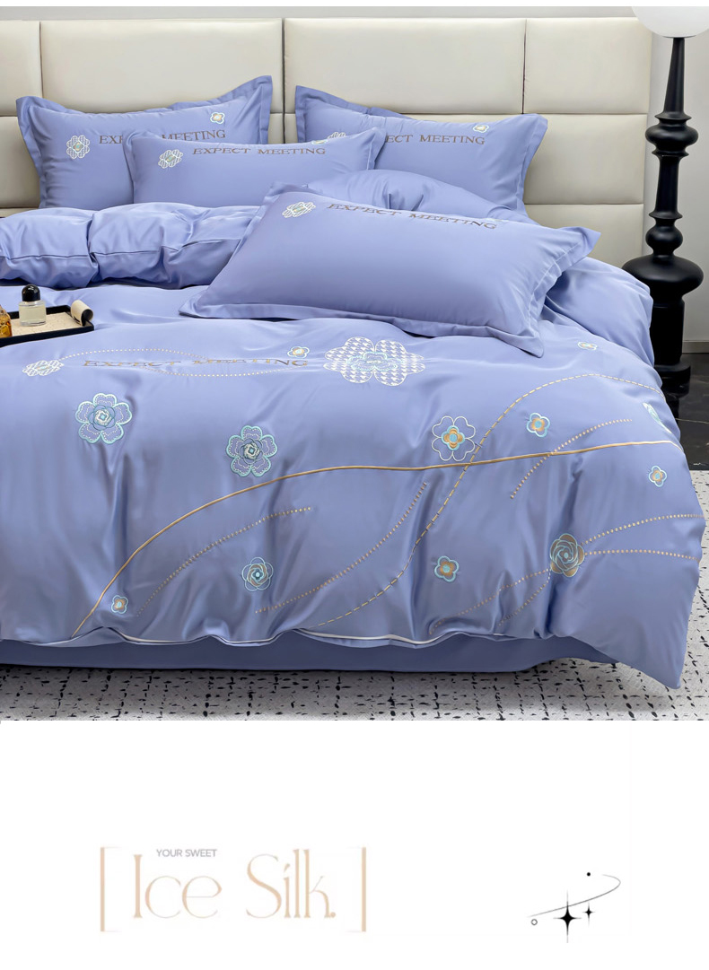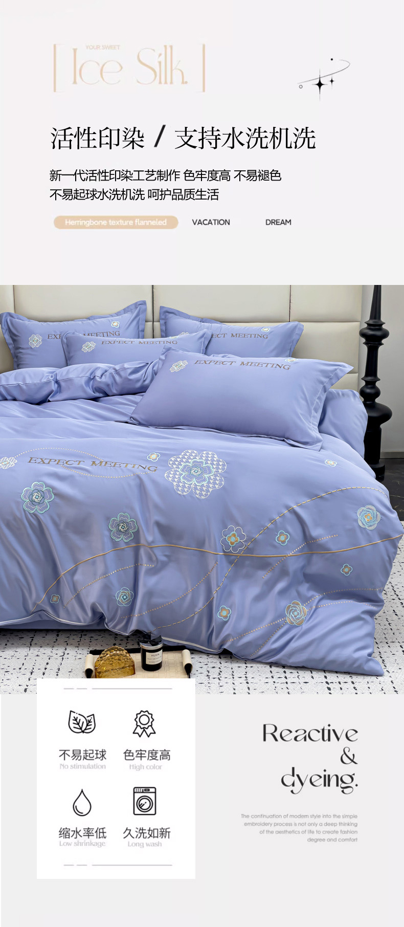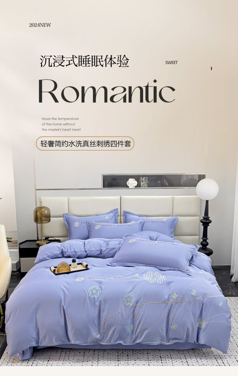恋佳居 2025新款水洗真丝刺绣四件套 花漾-蓝紫