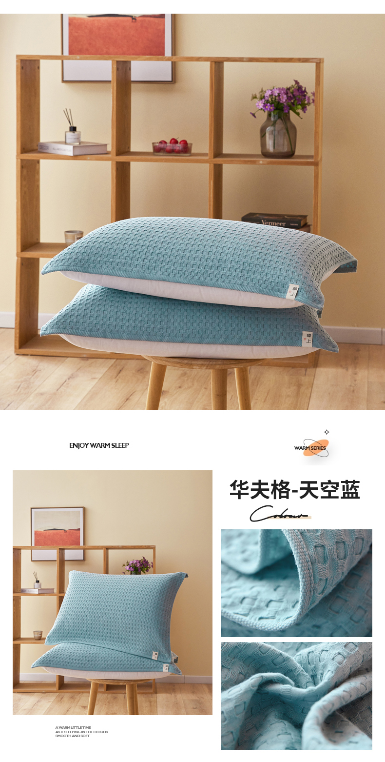美宜家家纺 2025新款A类全棉华夫格枕巾 华夫格-天空蓝52*75cm/对