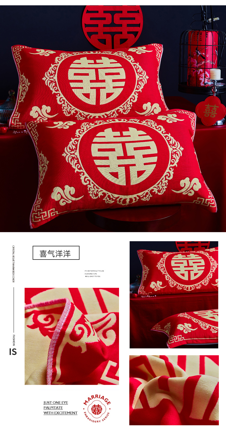 (总)美宜家 2025新款四层全棉纱布婚庆枕巾枕套枕头,百年好合,吉祥如意,喜上眉梢,喜气洋洋,喜结良缘,喜结连理,心心相印,欢欢喜喜,浪漫爱情,双喜临门,真爱永恒,花好月圆