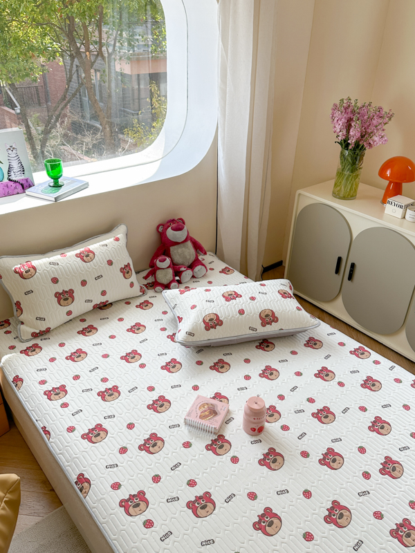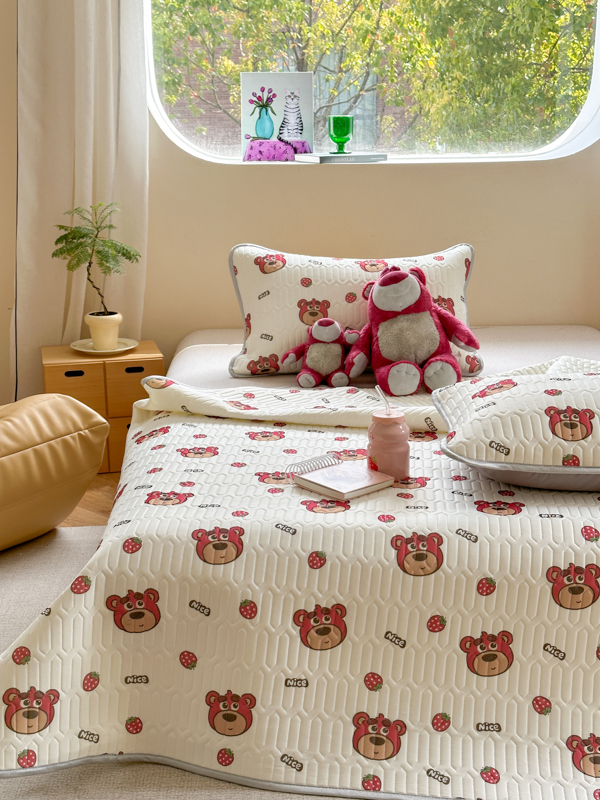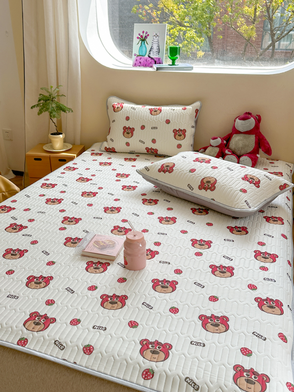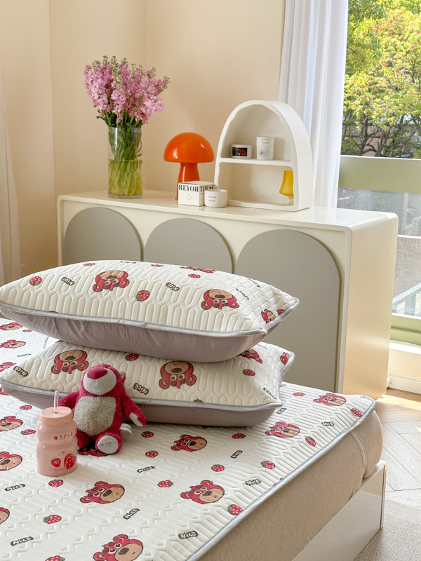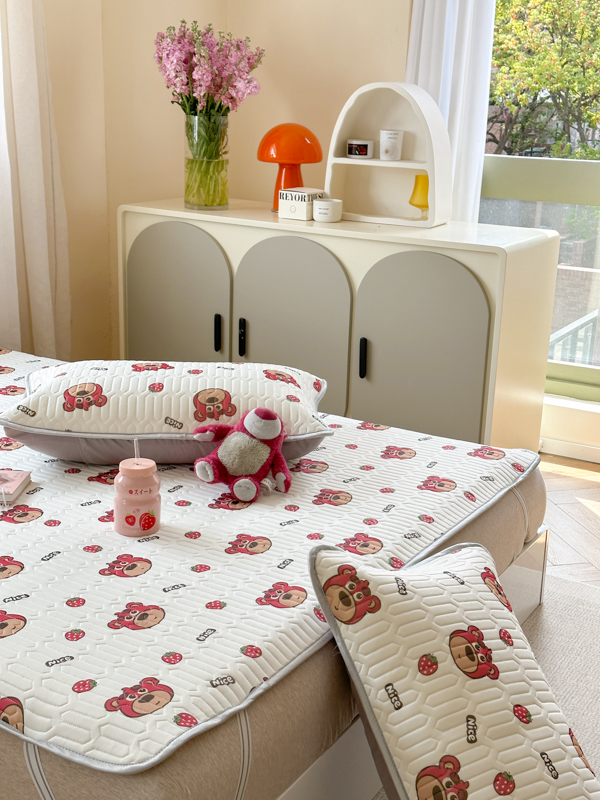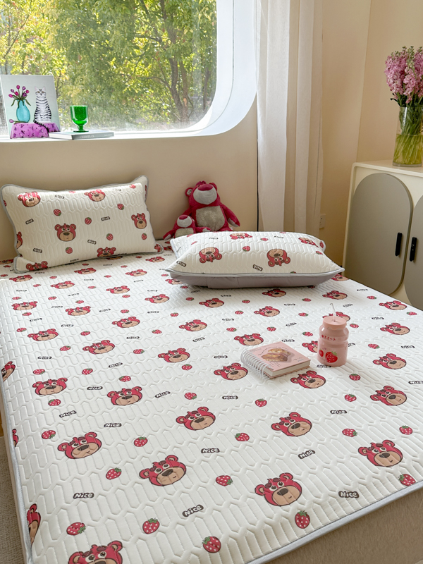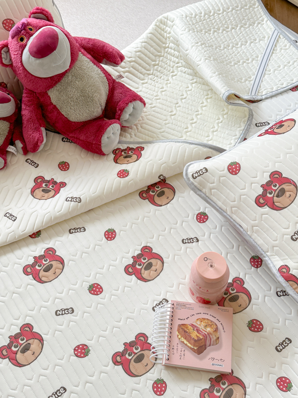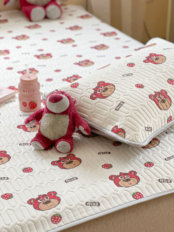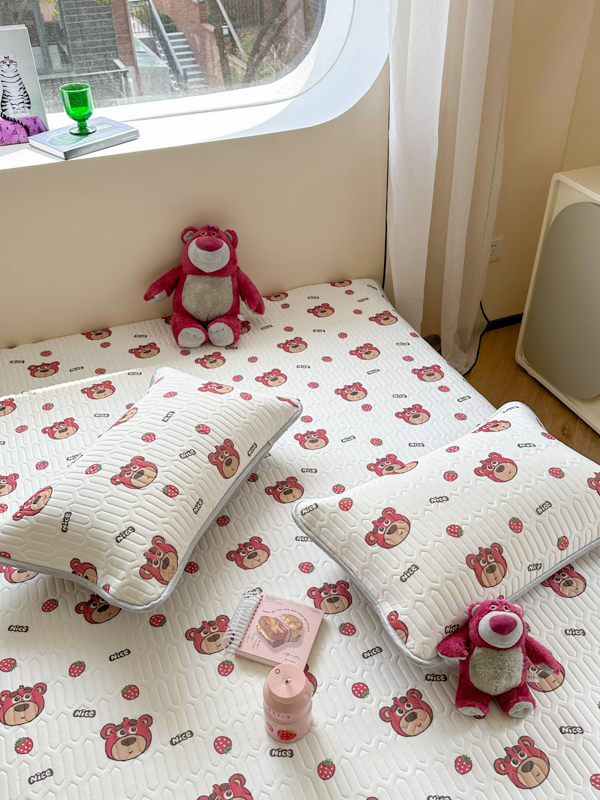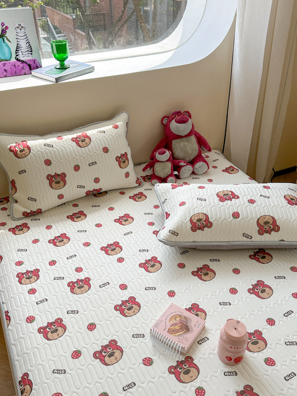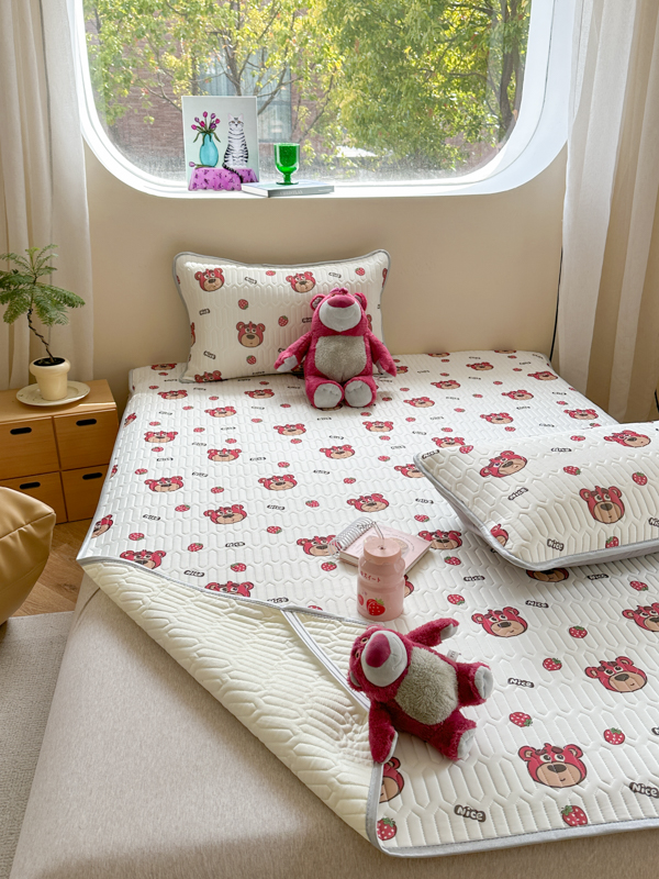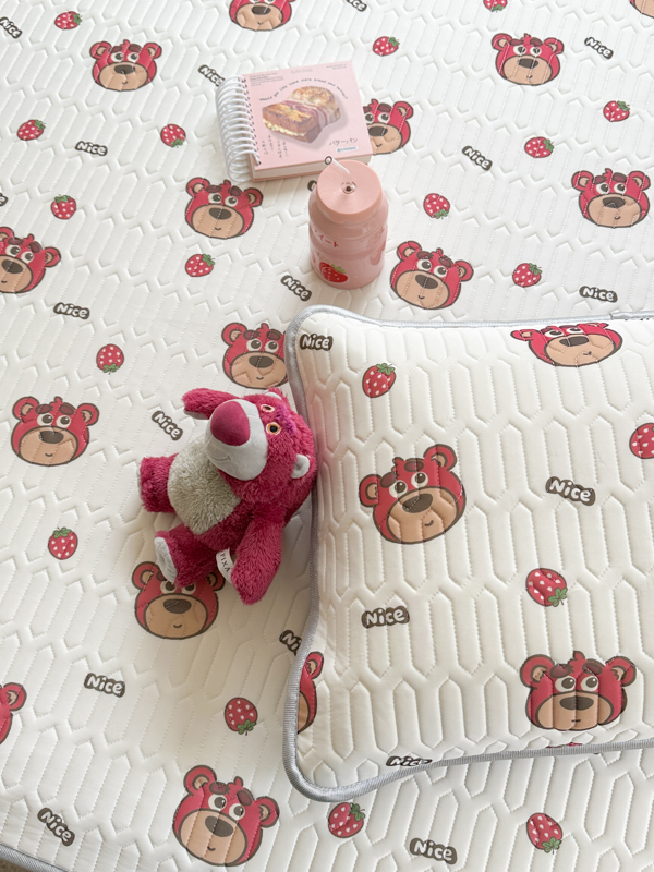 慕尚家纺 2025新款凉感丝印花乳胶凉席 草莓小熊