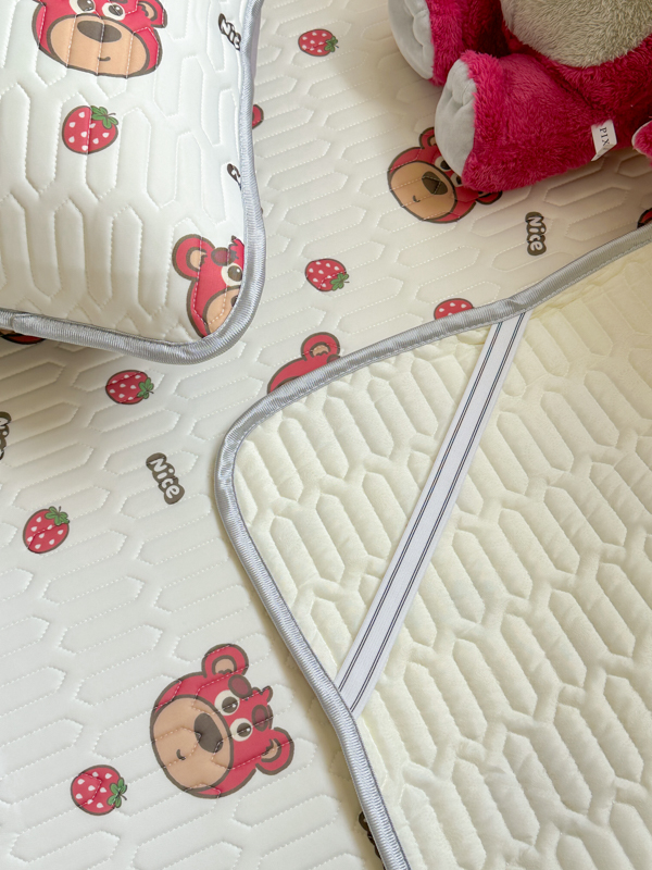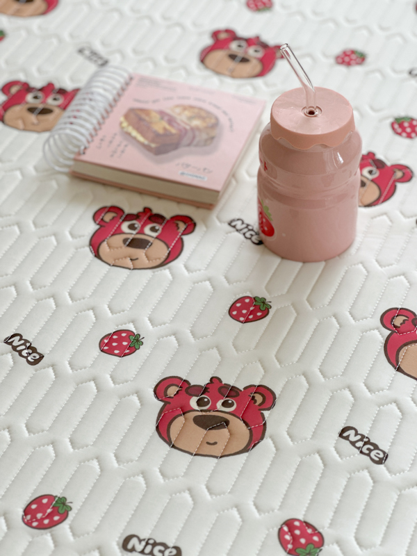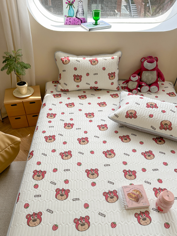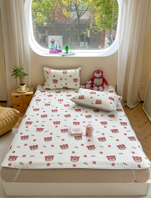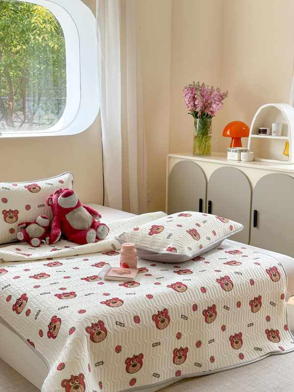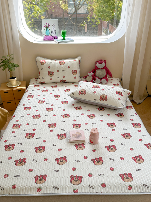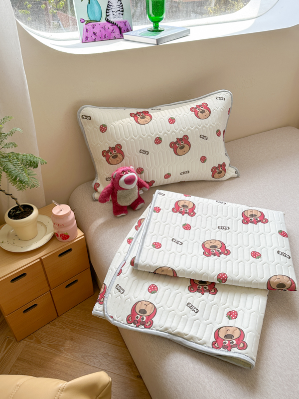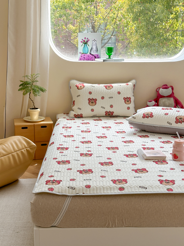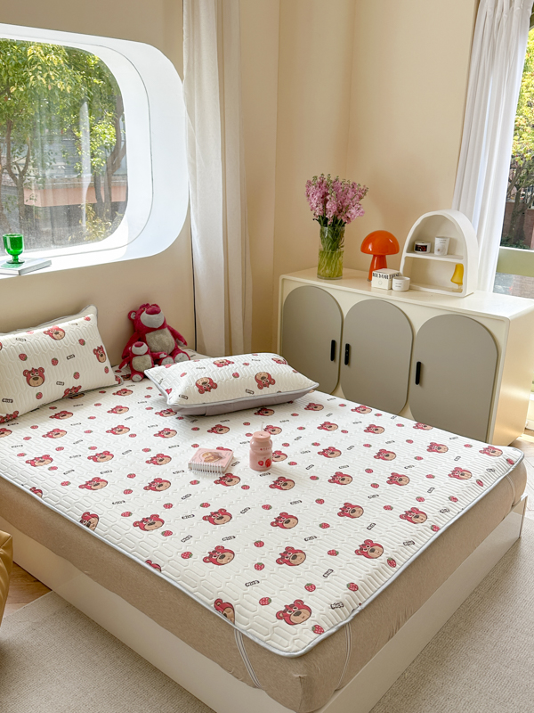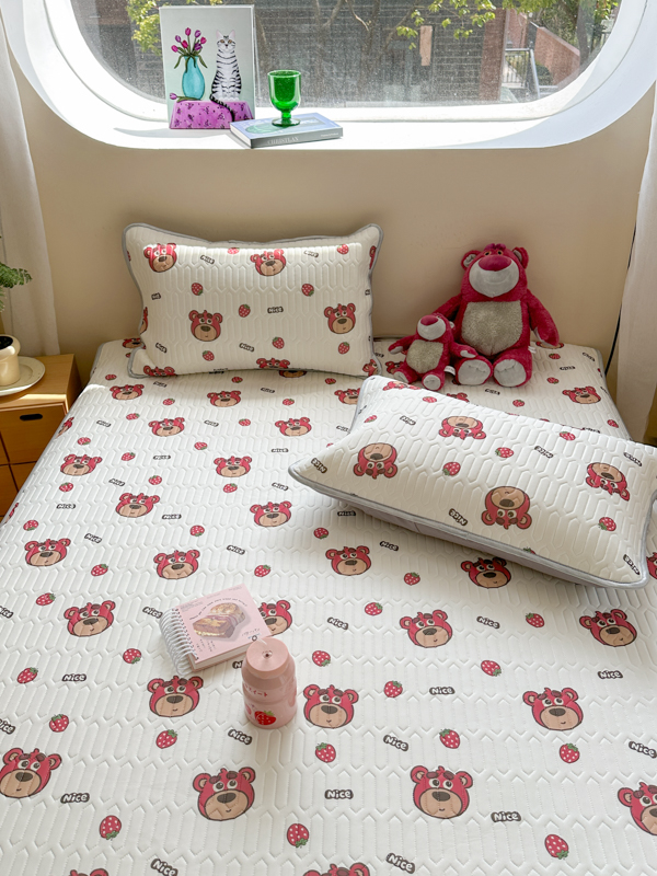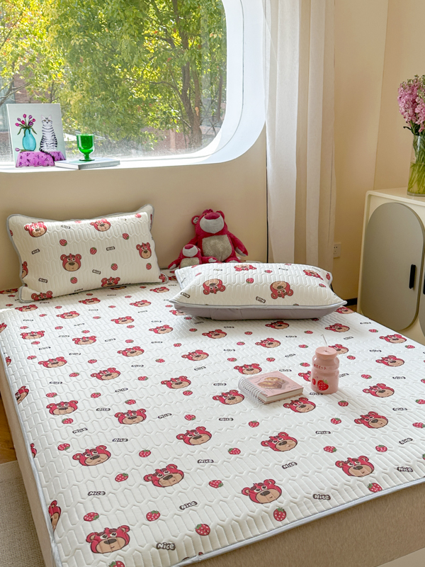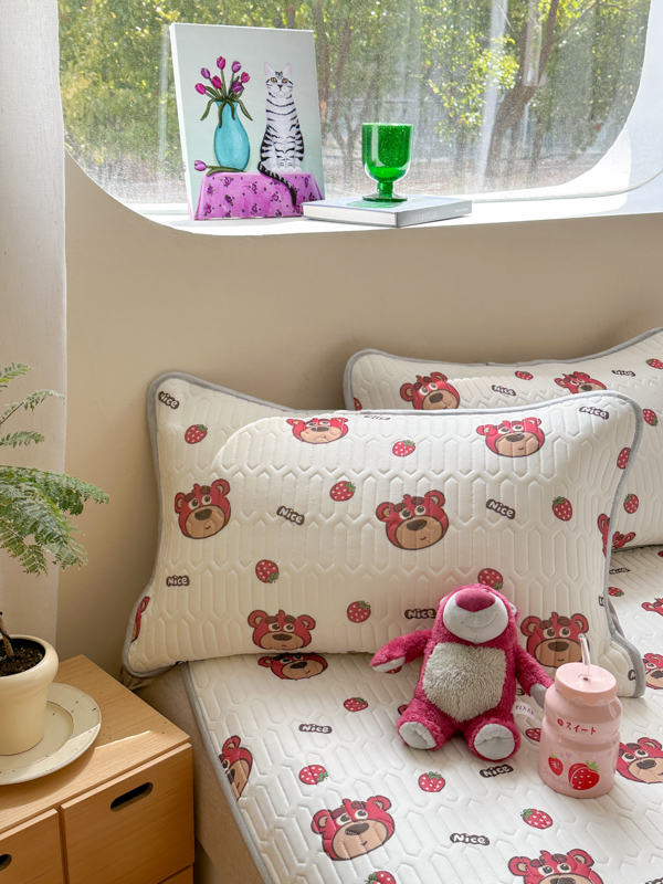 慕尚家纺 2025新款凉感丝印花乳胶凉席 草莓小熊