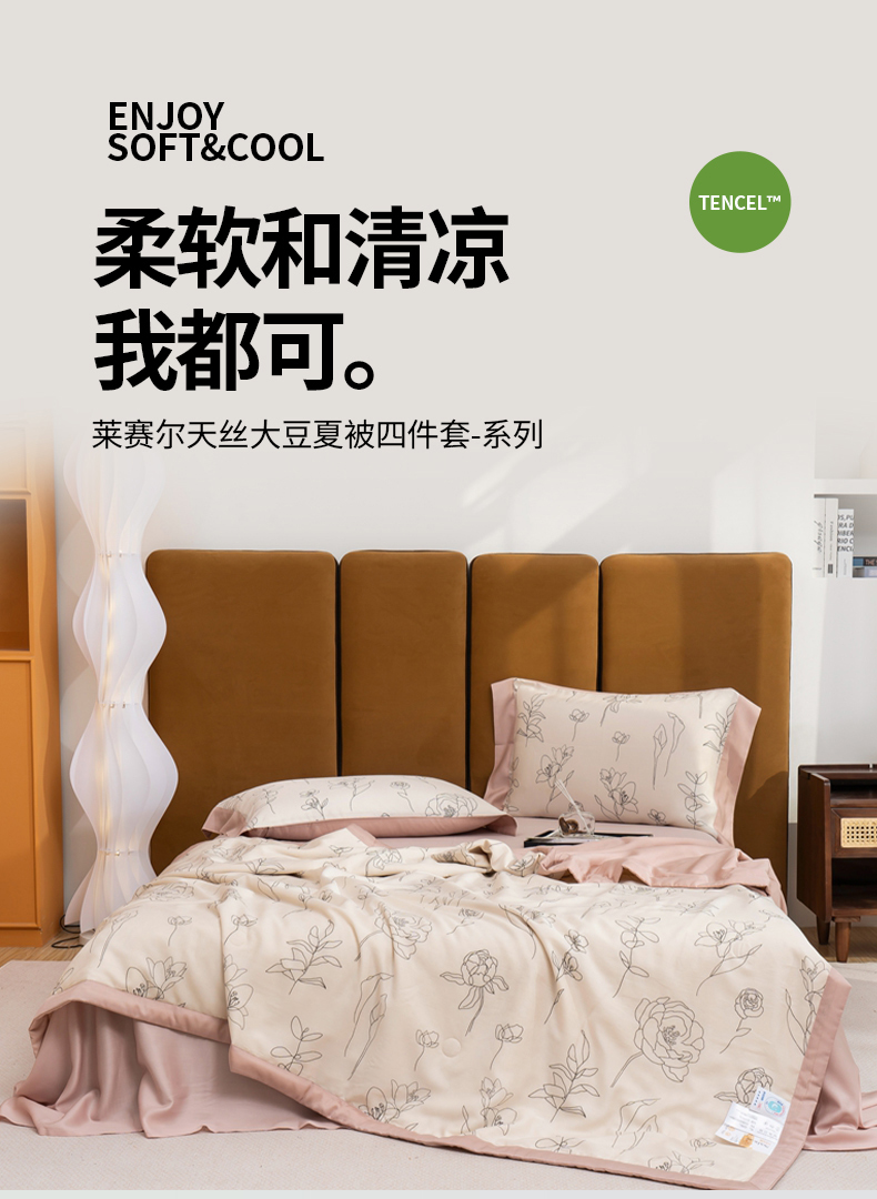 (总)黛舒家居 2024新款莱赛尔天丝大豆夏被四件套,艾恩,暗香,繁花,花恋,花魅,梦瑾,宛夏,未央,叶璃,夜曲,羽裳