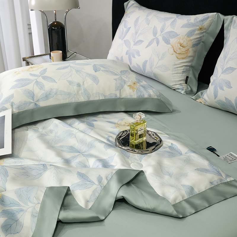 商品名称:时亿家居 2024新款兰精天丝印花夏被四件套 雾微