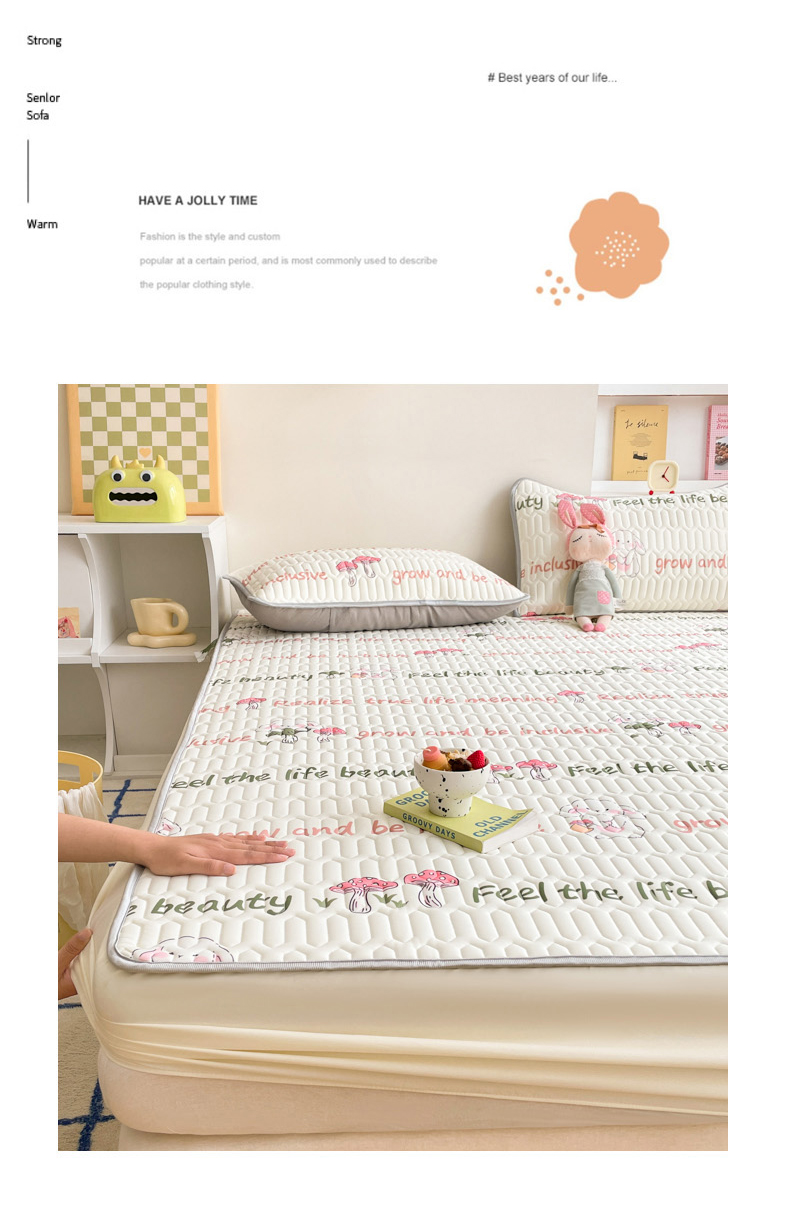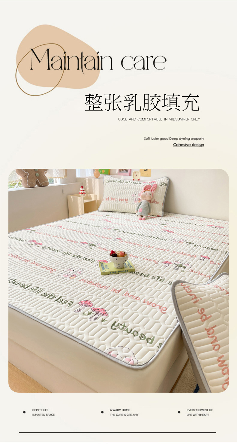 2024新款印花小清新床笠款乳胶凉席系列 彩色蘑菇