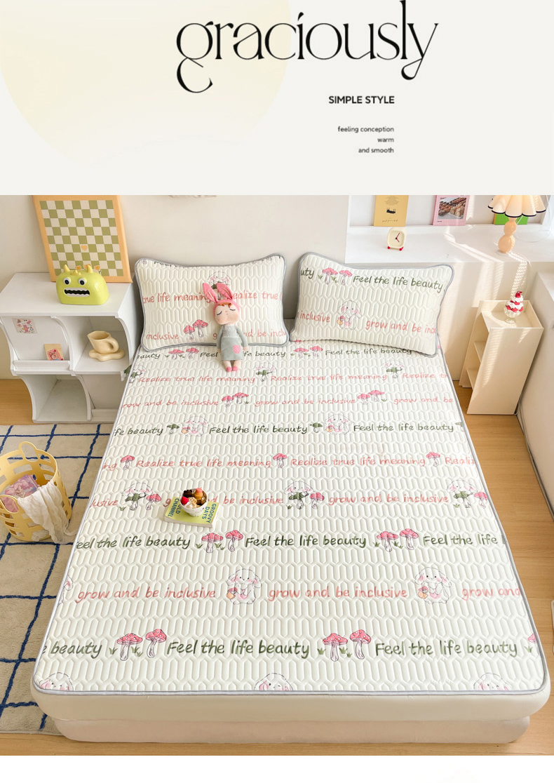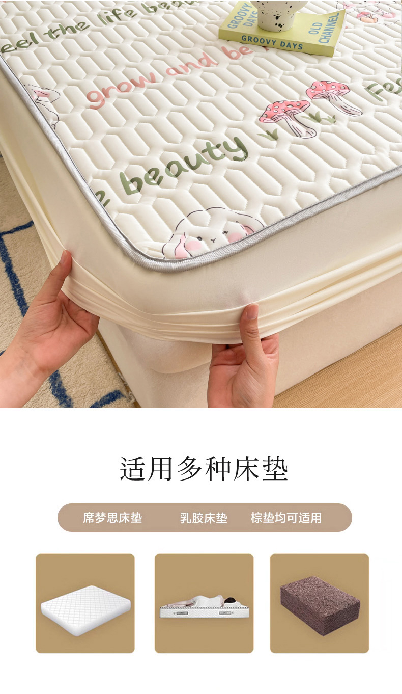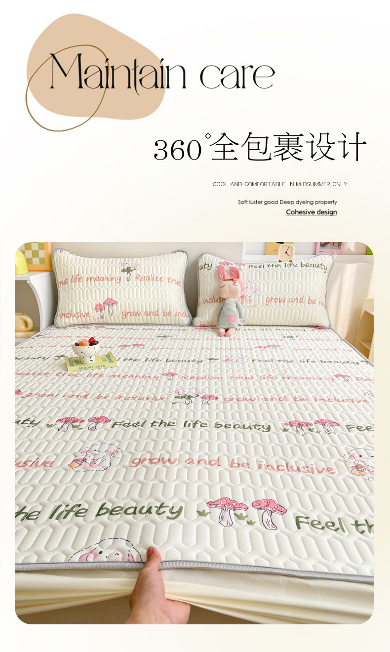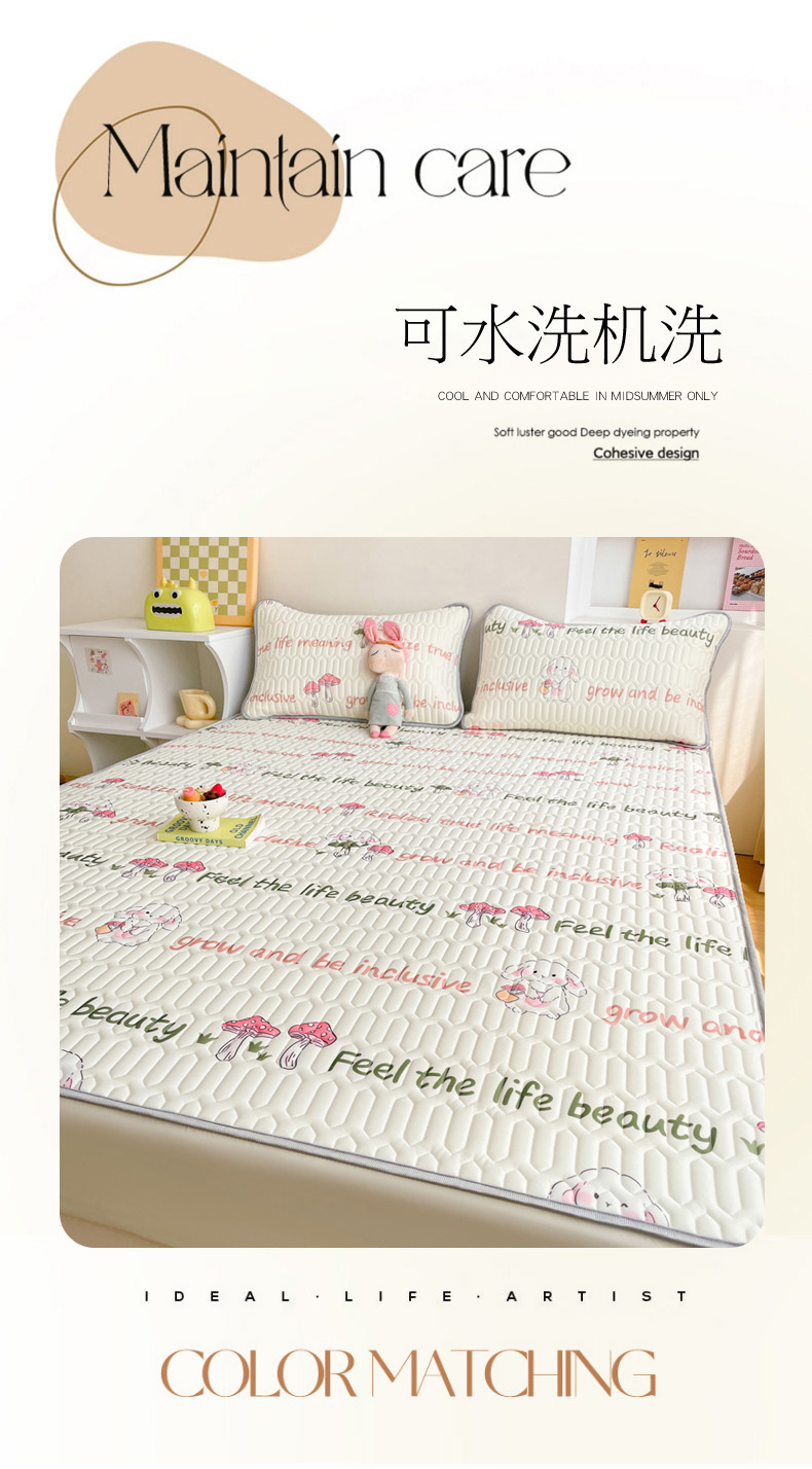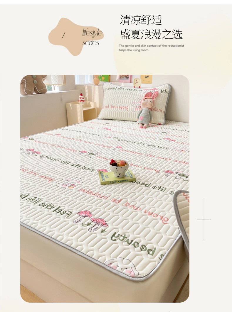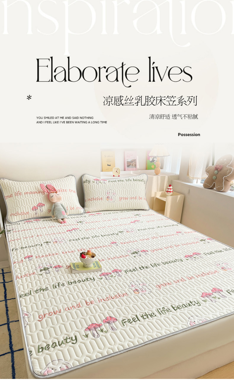 商品名称:2024新款印花小清新床笠款乳胶凉席系列 彩色蘑菇