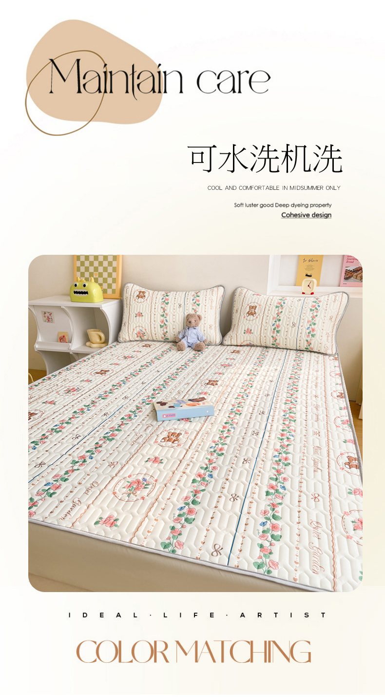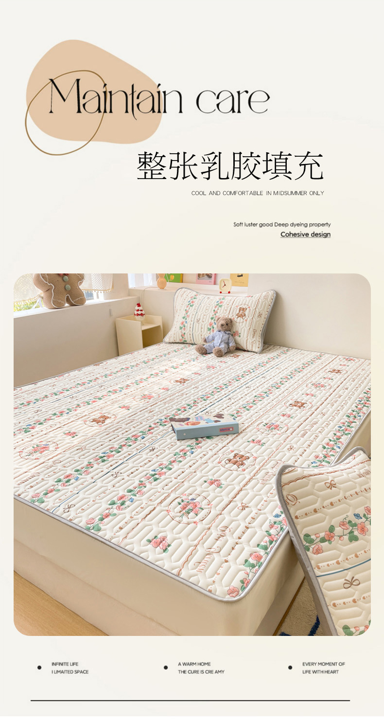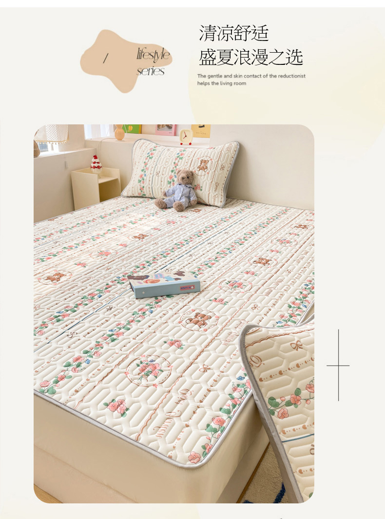 商品名称:2024新款印花小清新床笠款乳胶凉席系列 花环小熊