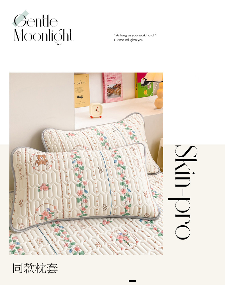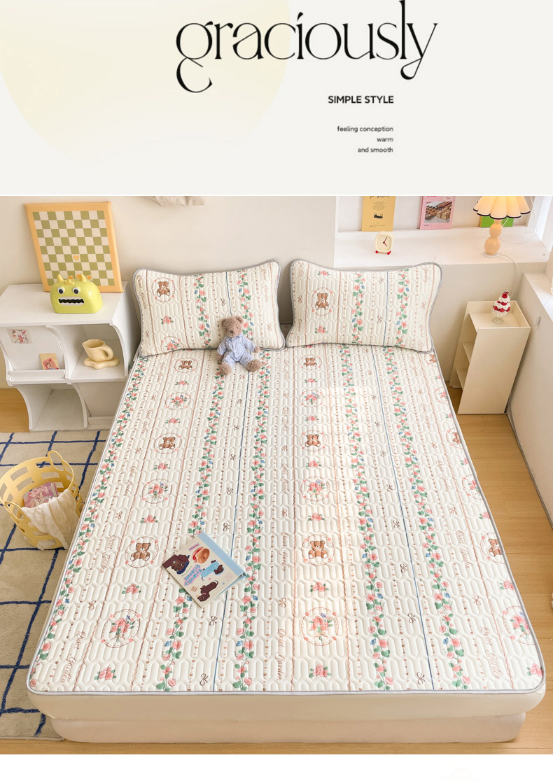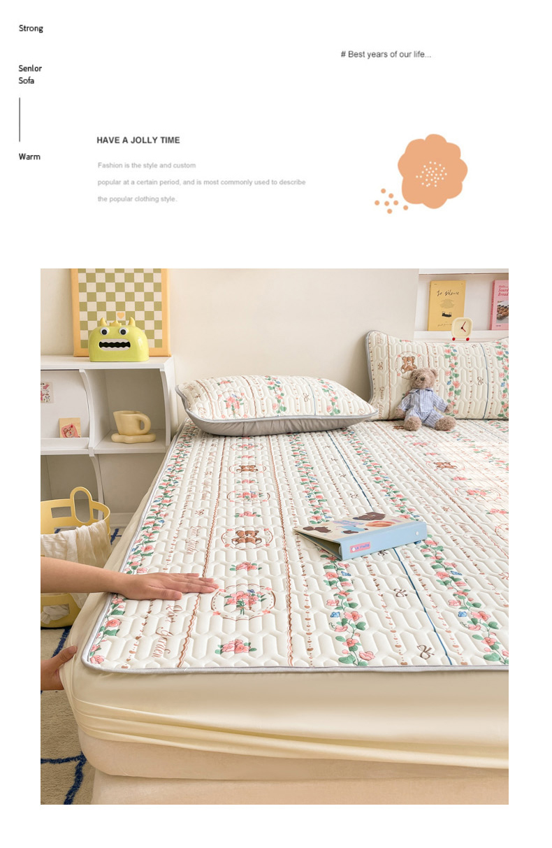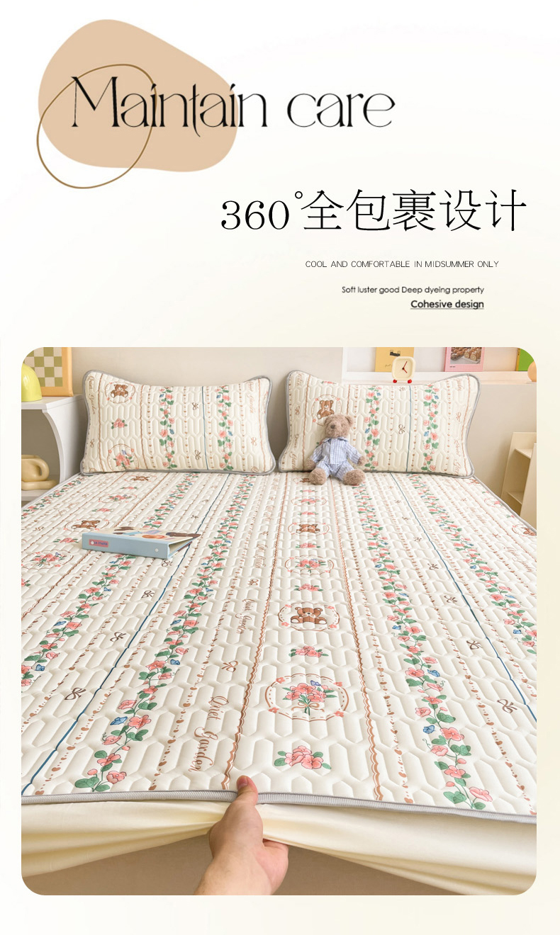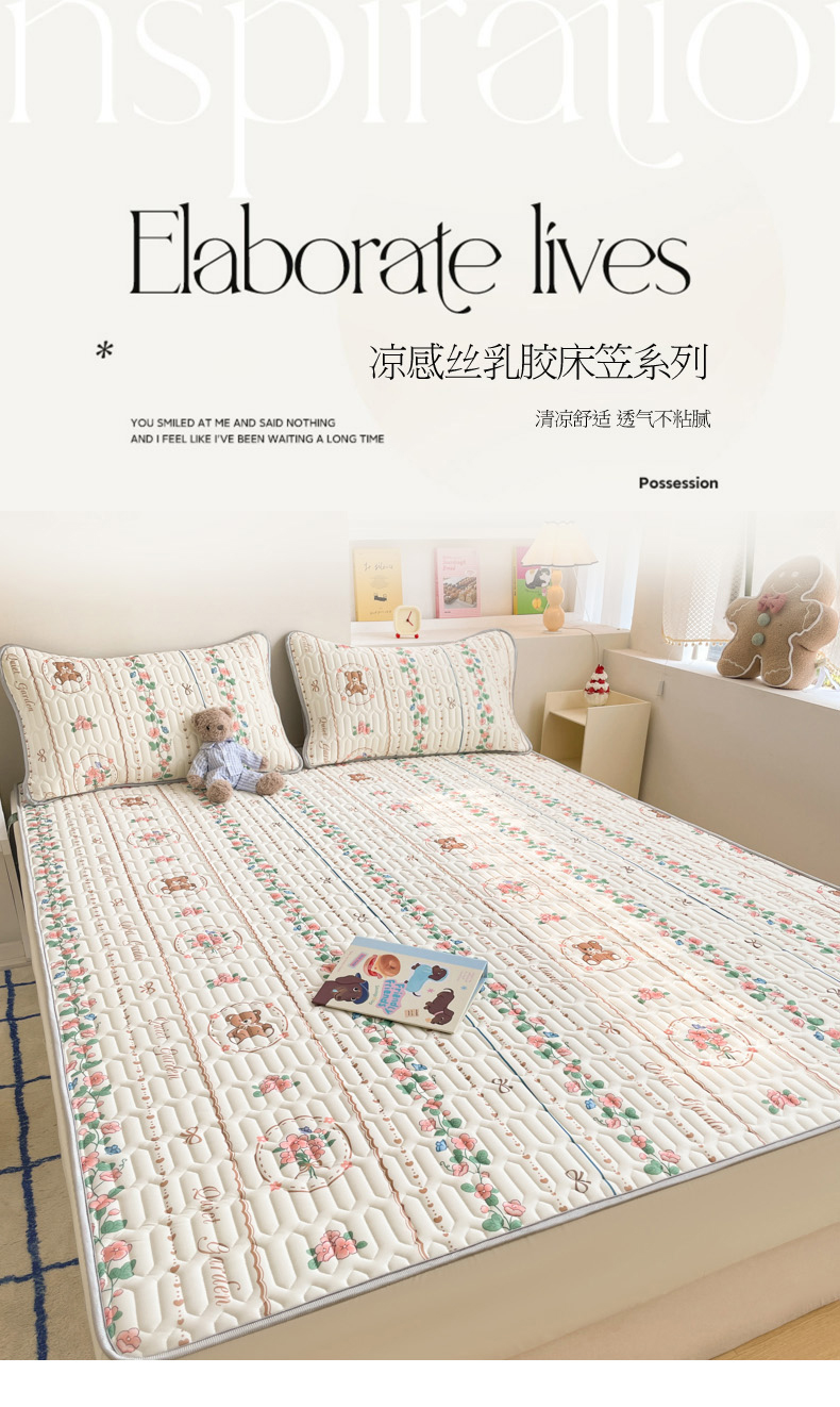 2024新款印花小清新床笠款乳胶凉席系列 花环小熊