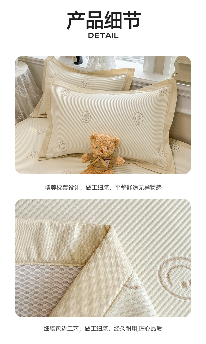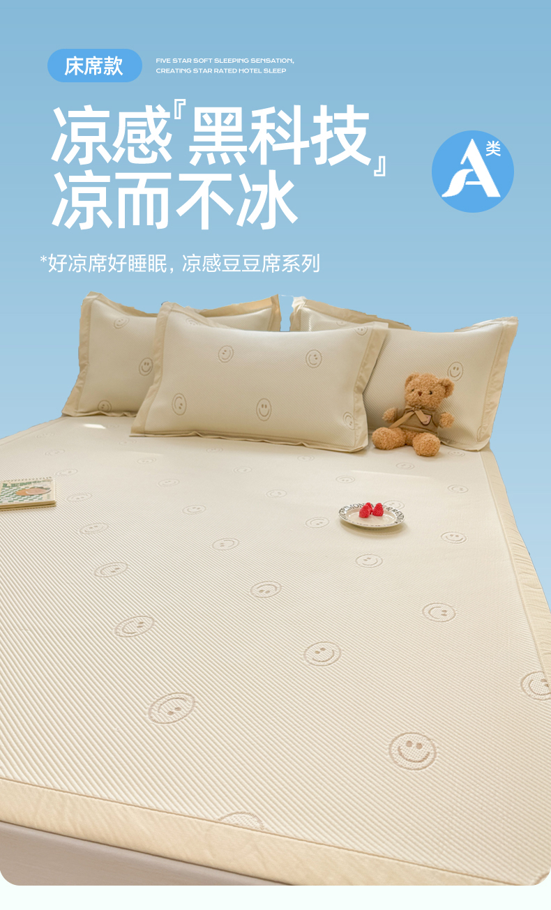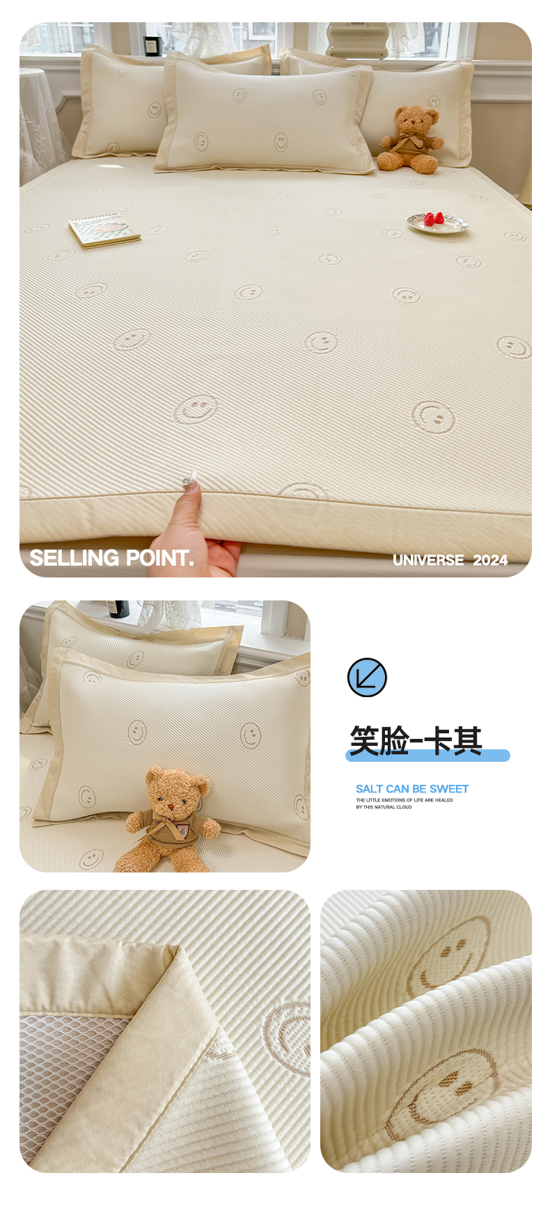 商品名称:全季家居 2024新款5A速冷PE小动物系列凉豆豆席 笑脸-卡其-床席款