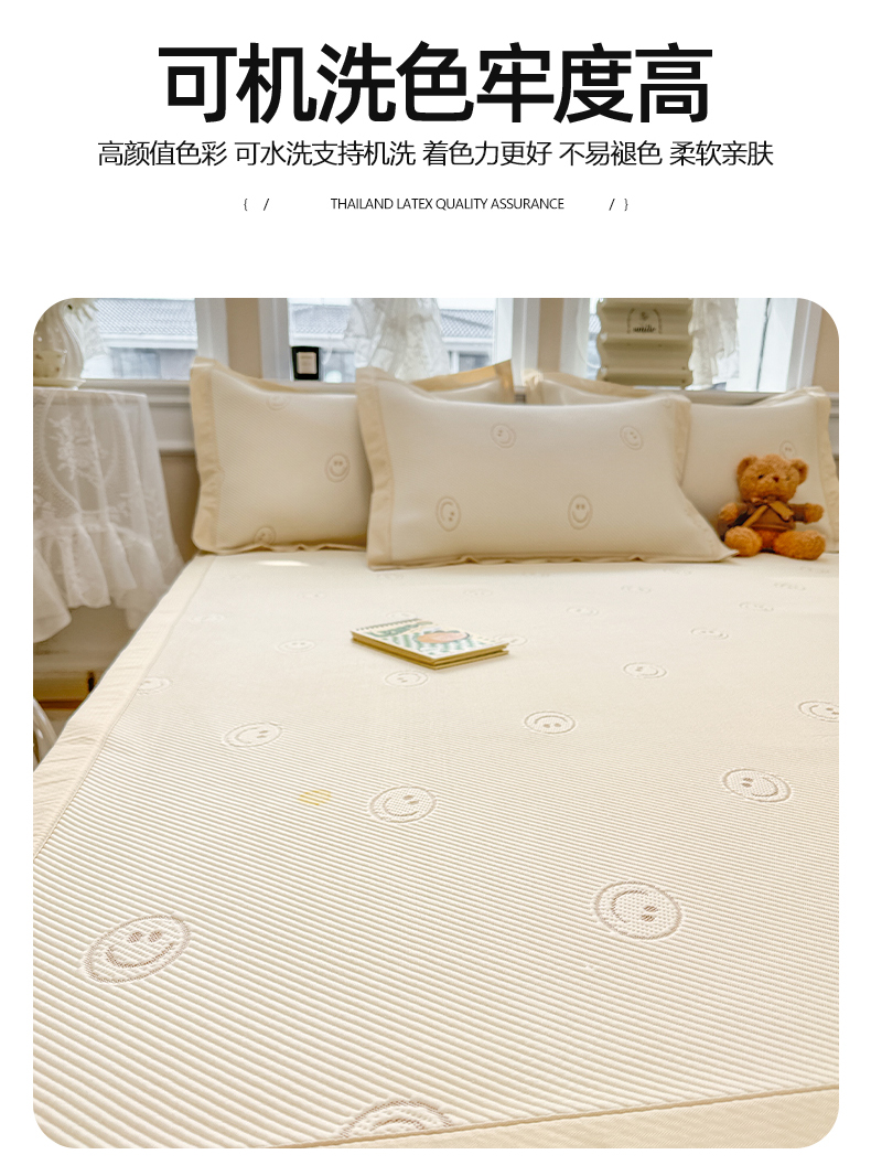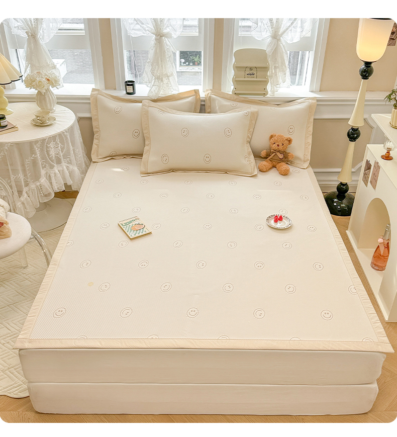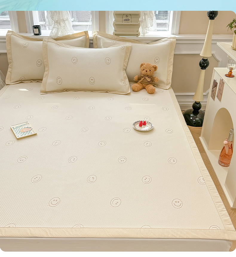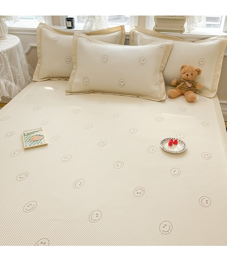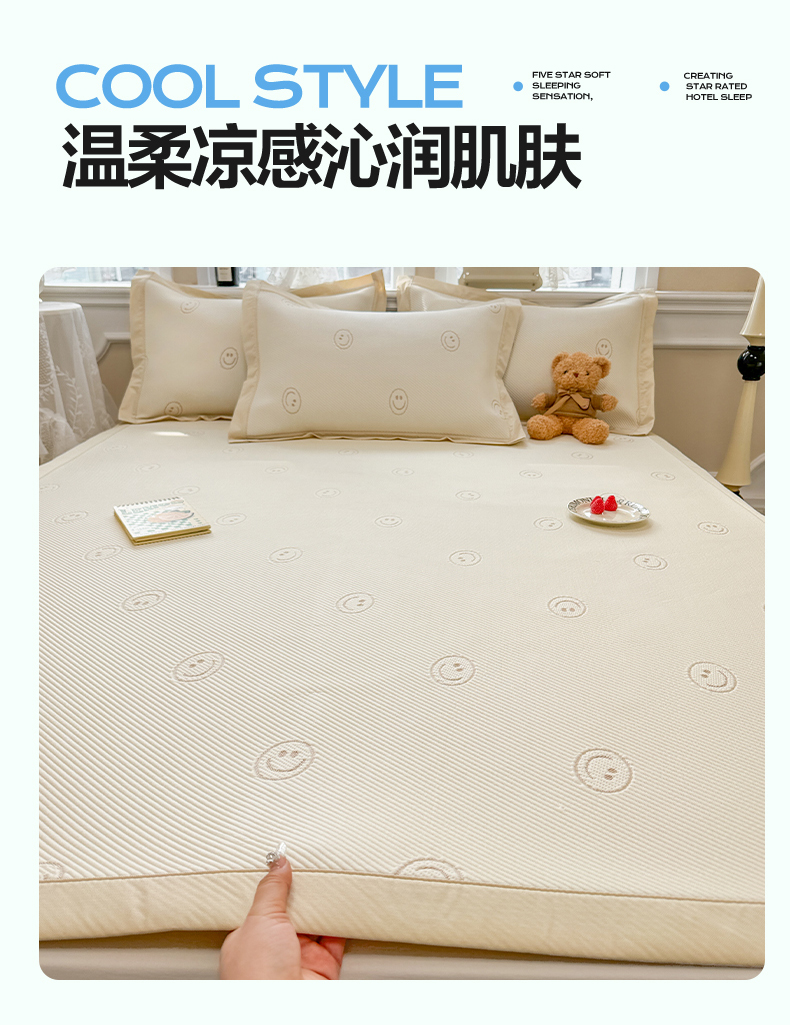 全季家居 2024新款5A速冷PE小动物系列凉豆豆席 笑脸-卡其-床席款