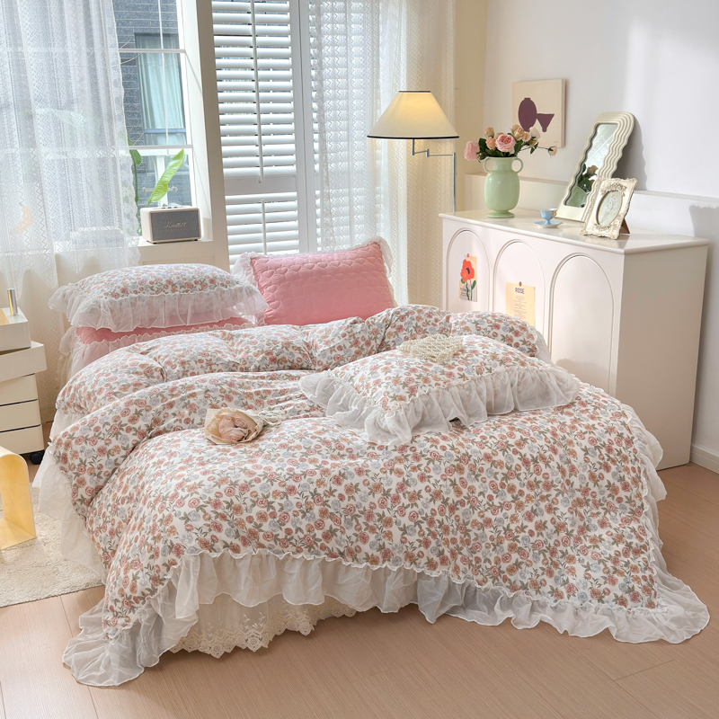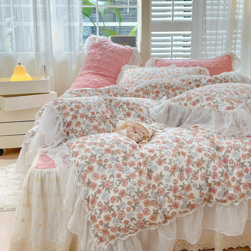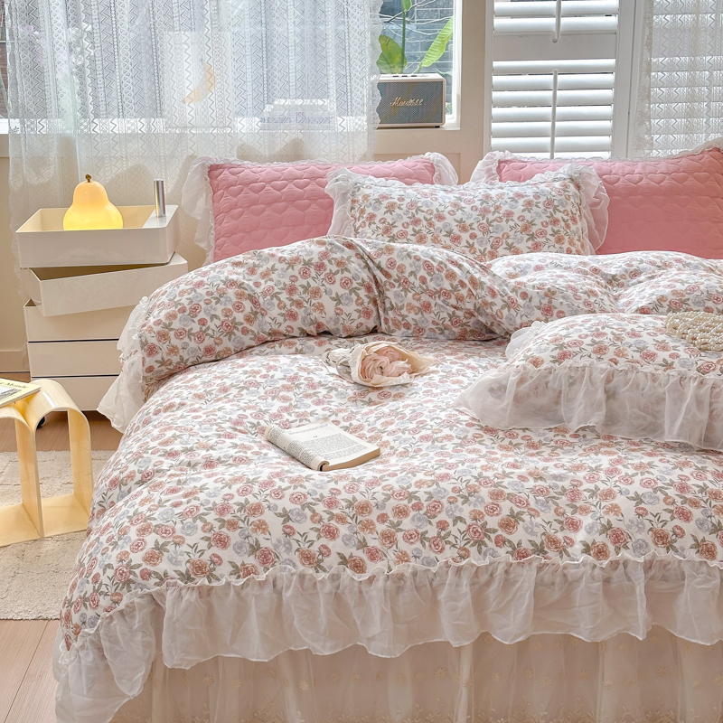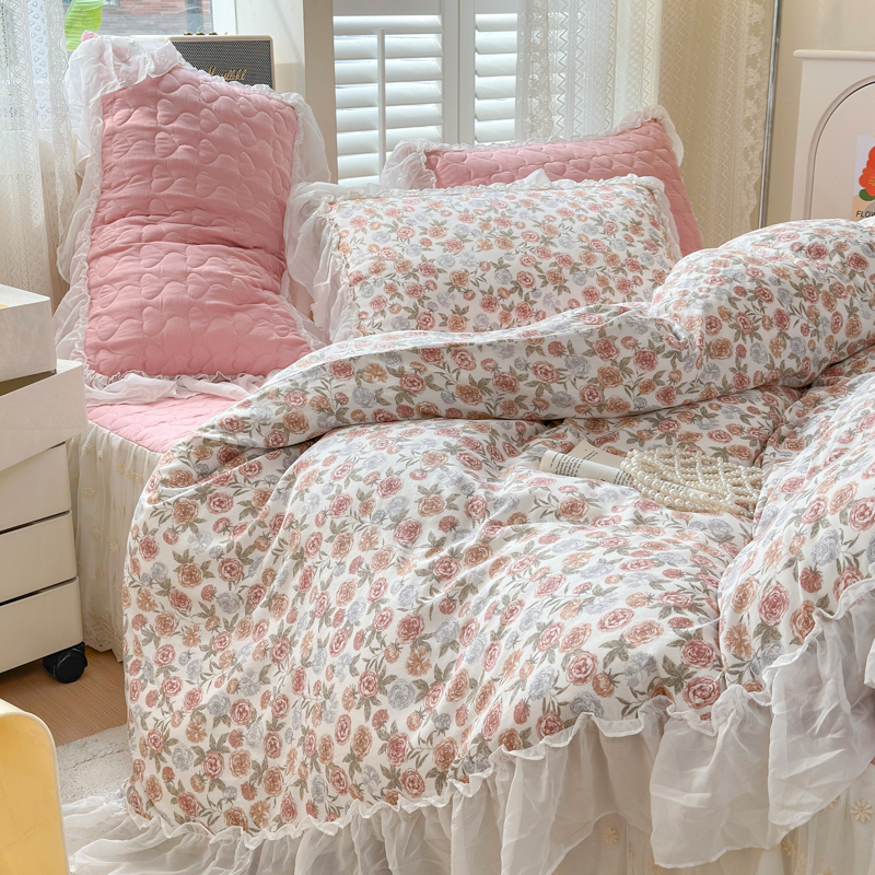 当前位置: 91家纺网 > 商品网购 > 床品套件 > 四件套 > 双层纱四件套 > (总)淑女公社 2024春夏新款竹棉双层纱床裙款四件套-玫瑰庄园