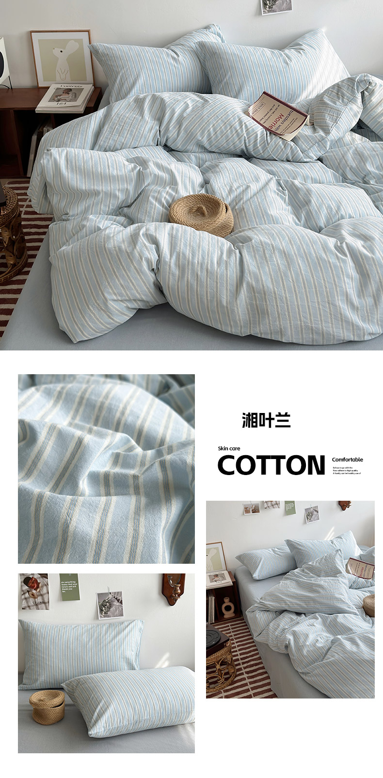 商品名称:水洗的故事 2024新款无印良品水洗棉四件套 湘叶兰