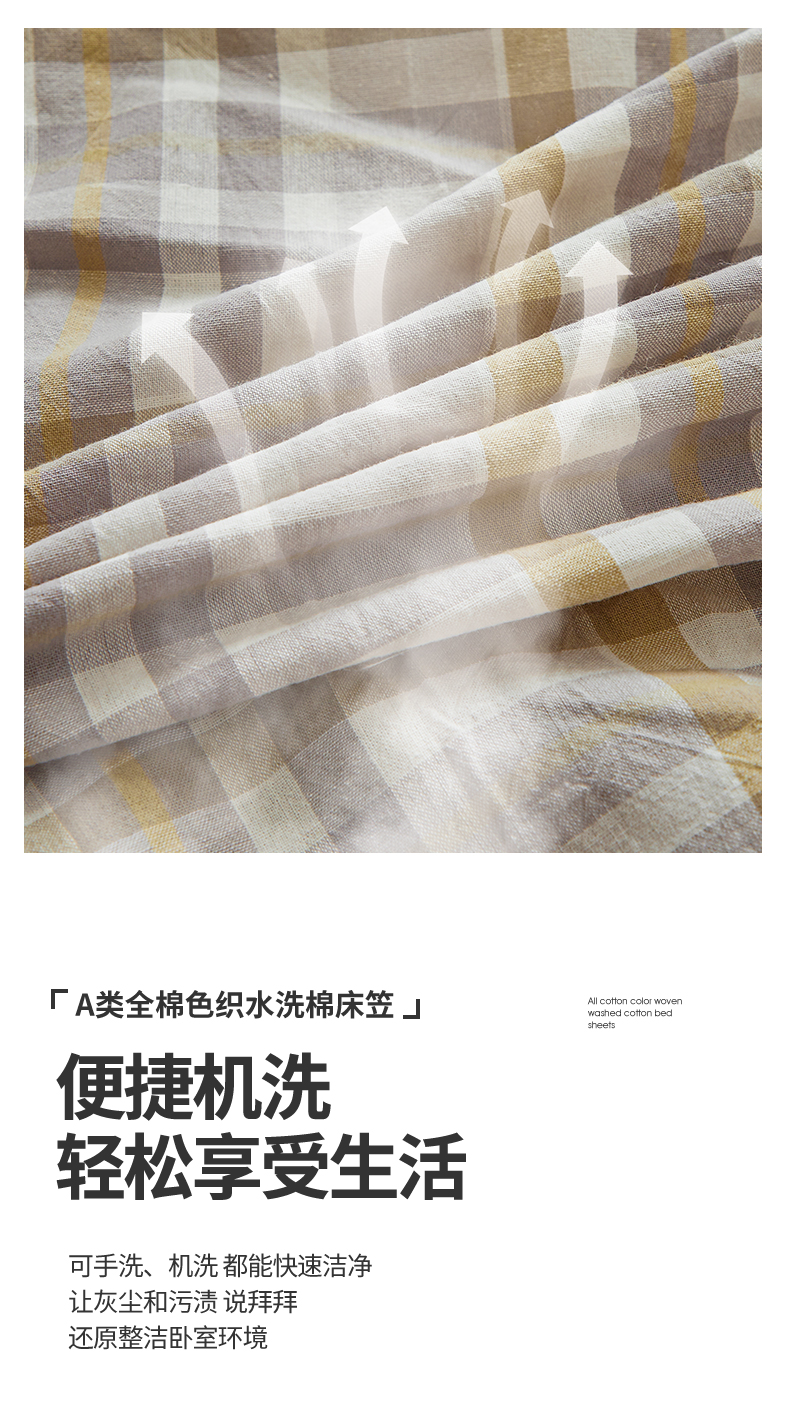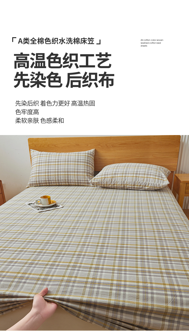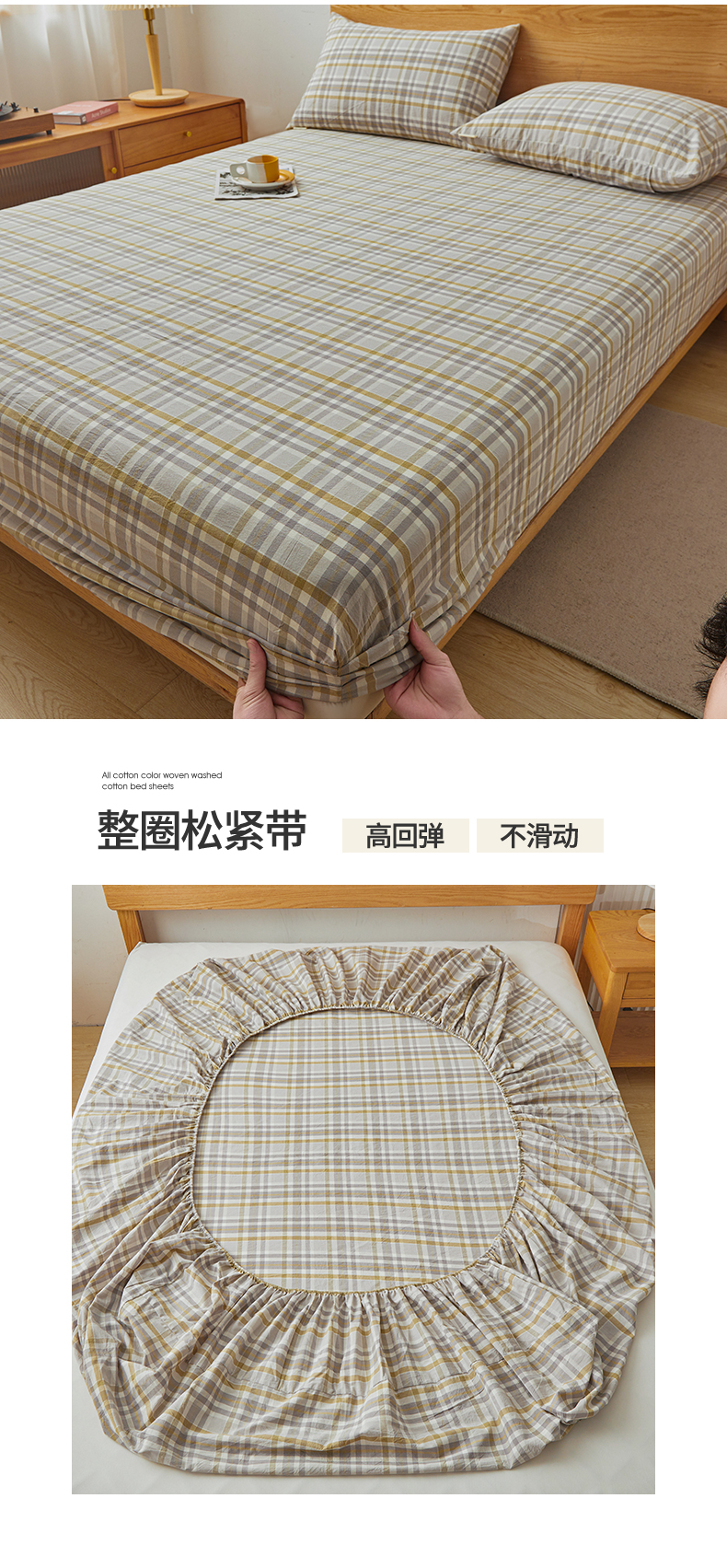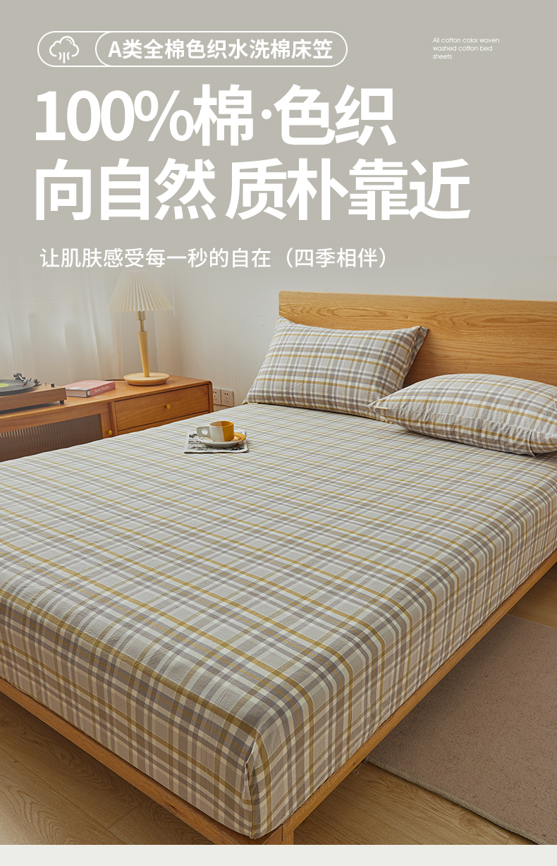 • 91家纺网 家纺一手货源 找家纺 居眠 2024新款全棉色织单纯水洗棉无印 床笠 明古 灰