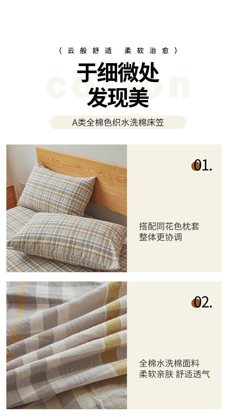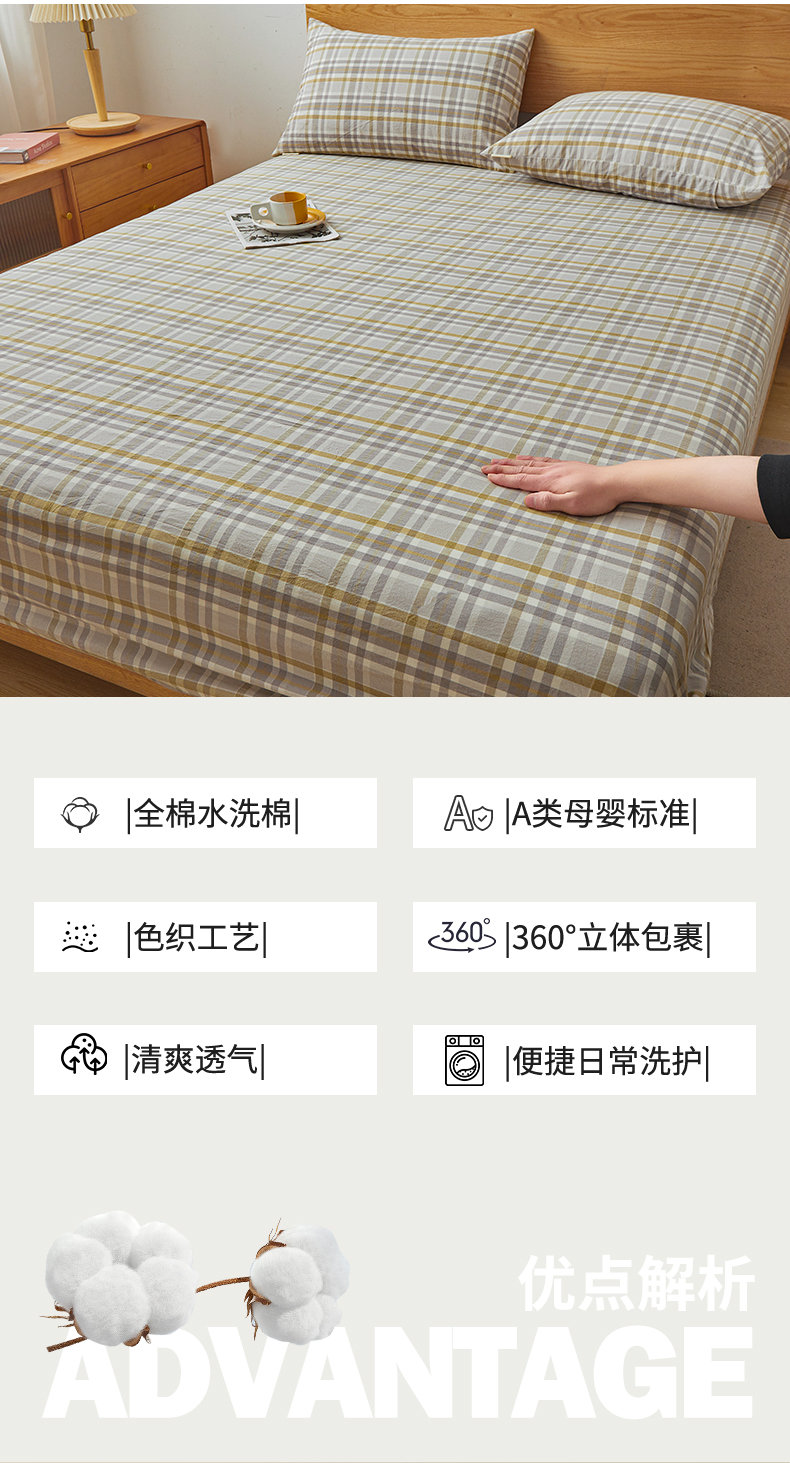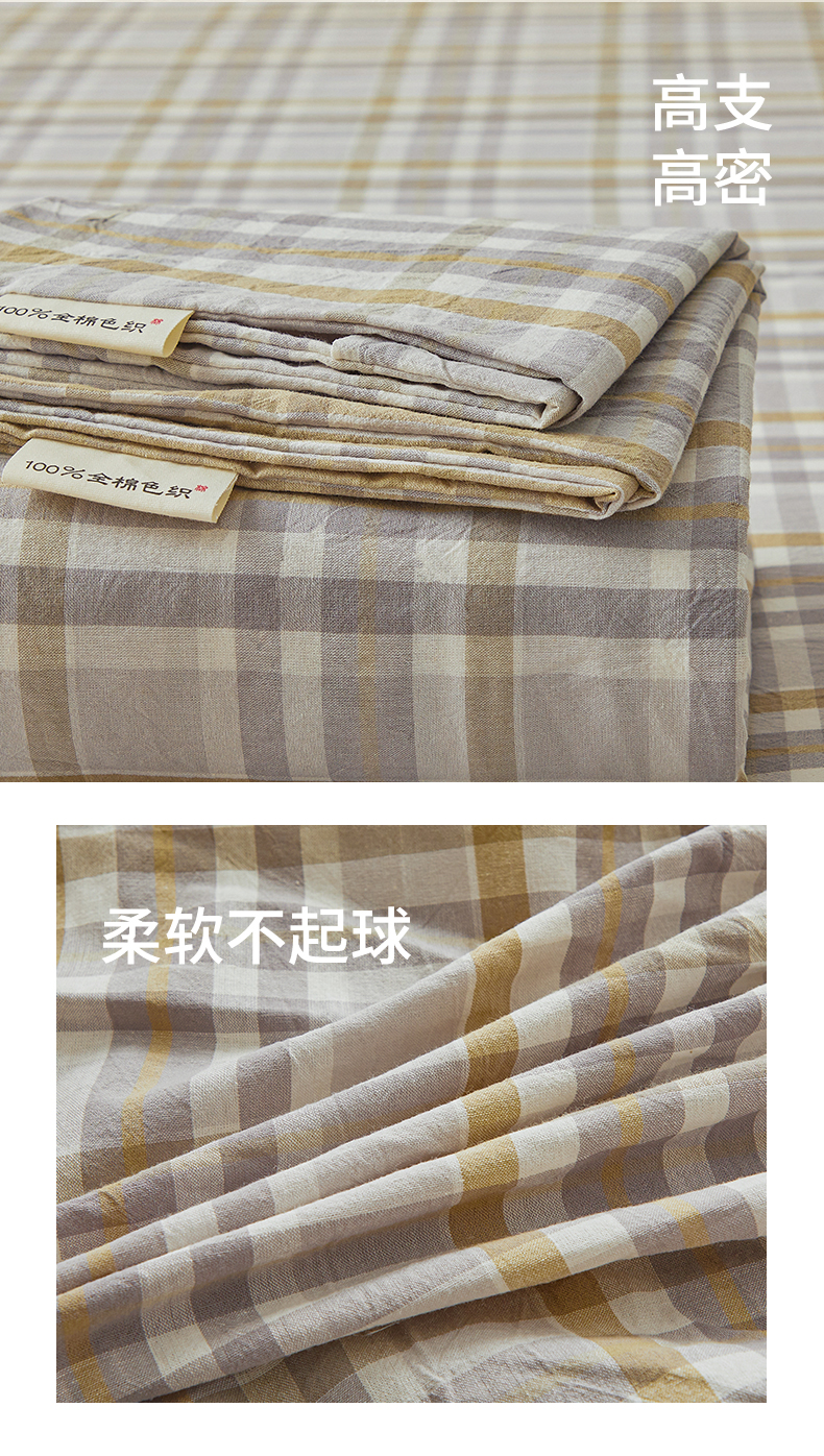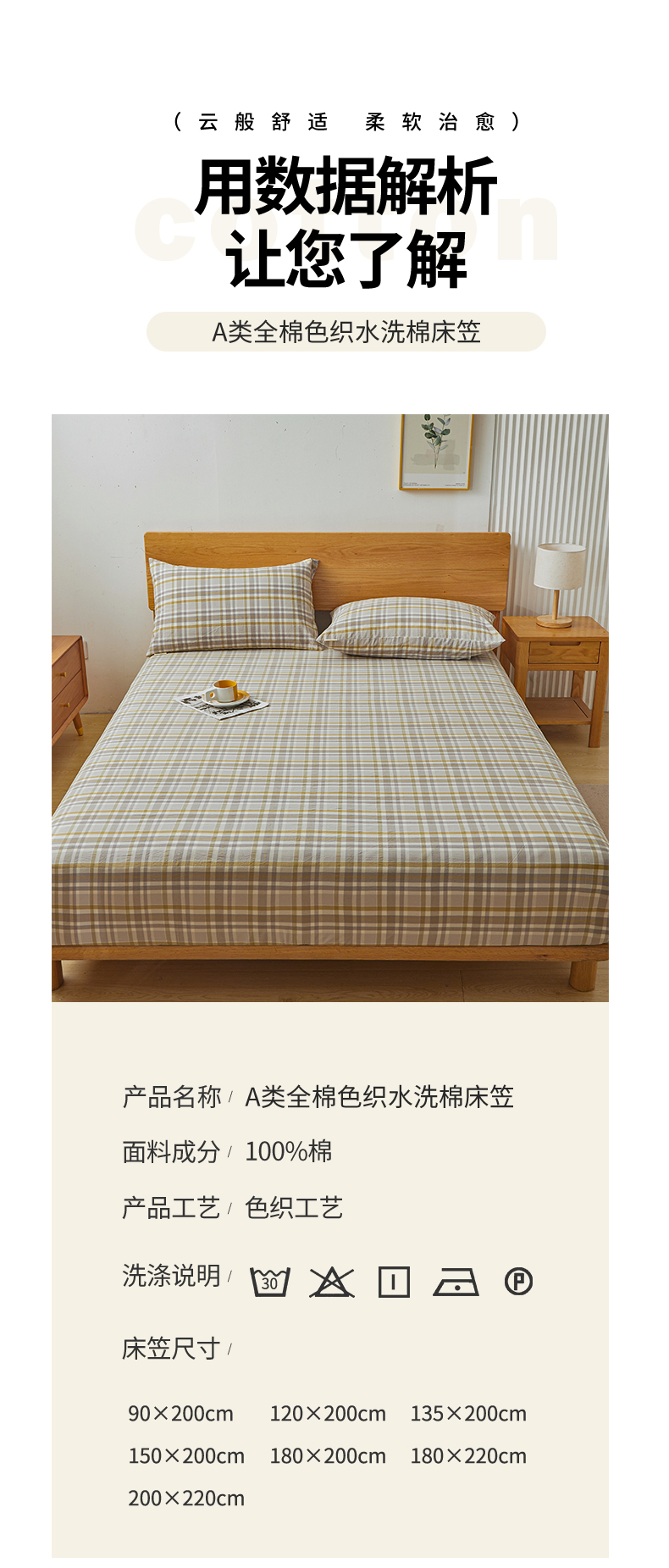 • 91家纺网 家纺一手货源 找家纺 居眠 2024新款全棉色织单纯水洗棉无印 床笠 明古 灰