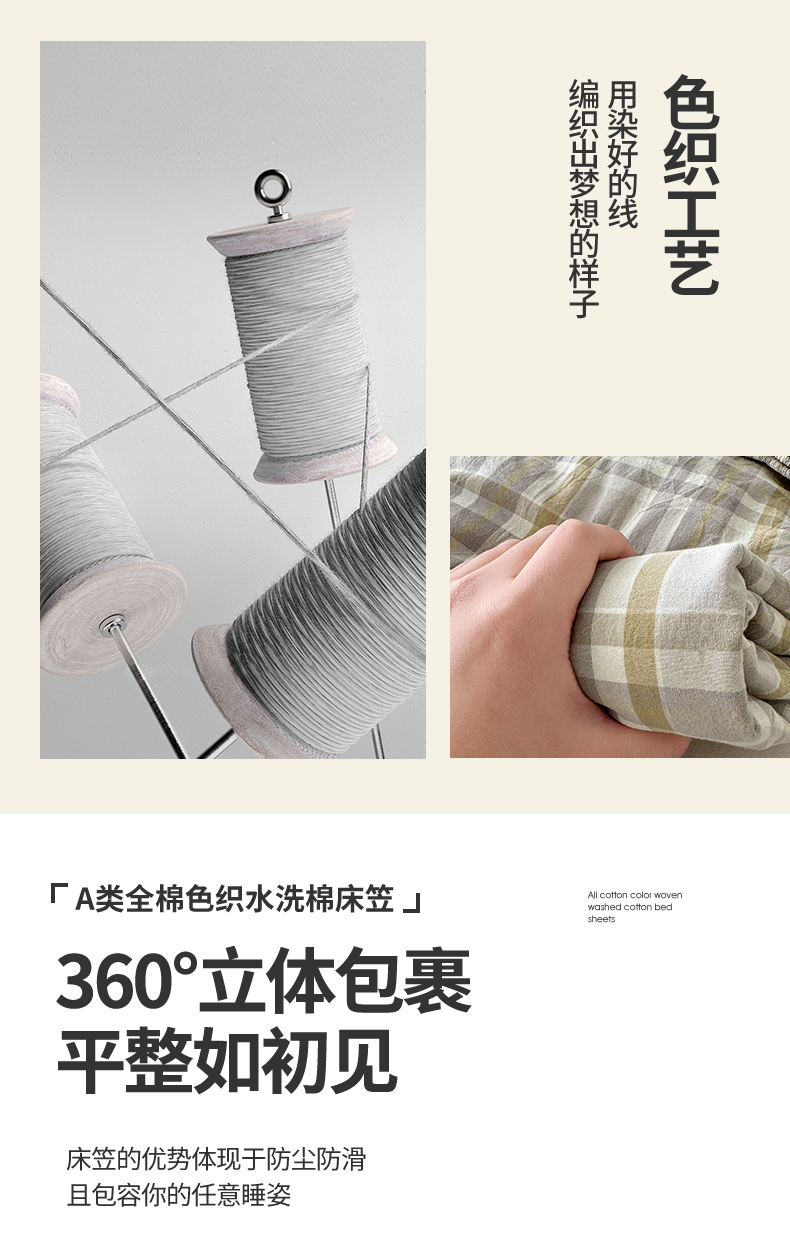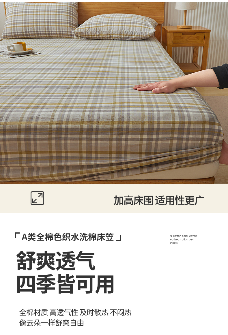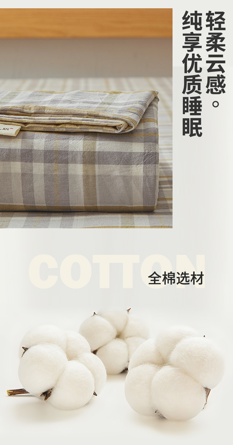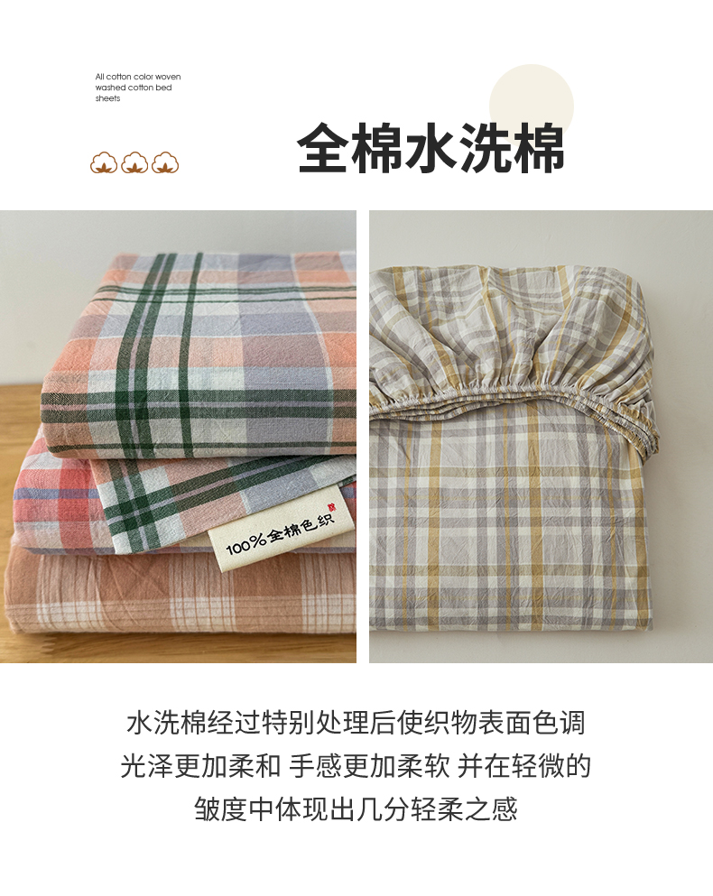 • 91家纺网 家纺一手货源 找家纺 居眠 2024新款全棉色织单纯水洗棉无印 床笠 明古 灰