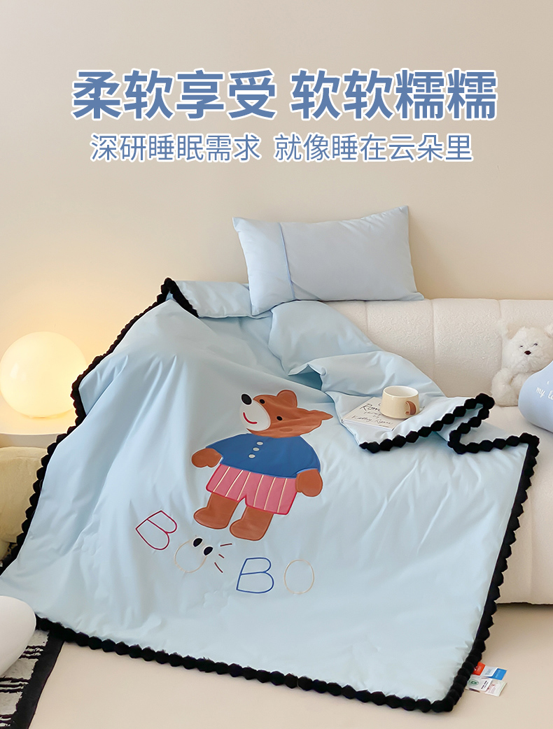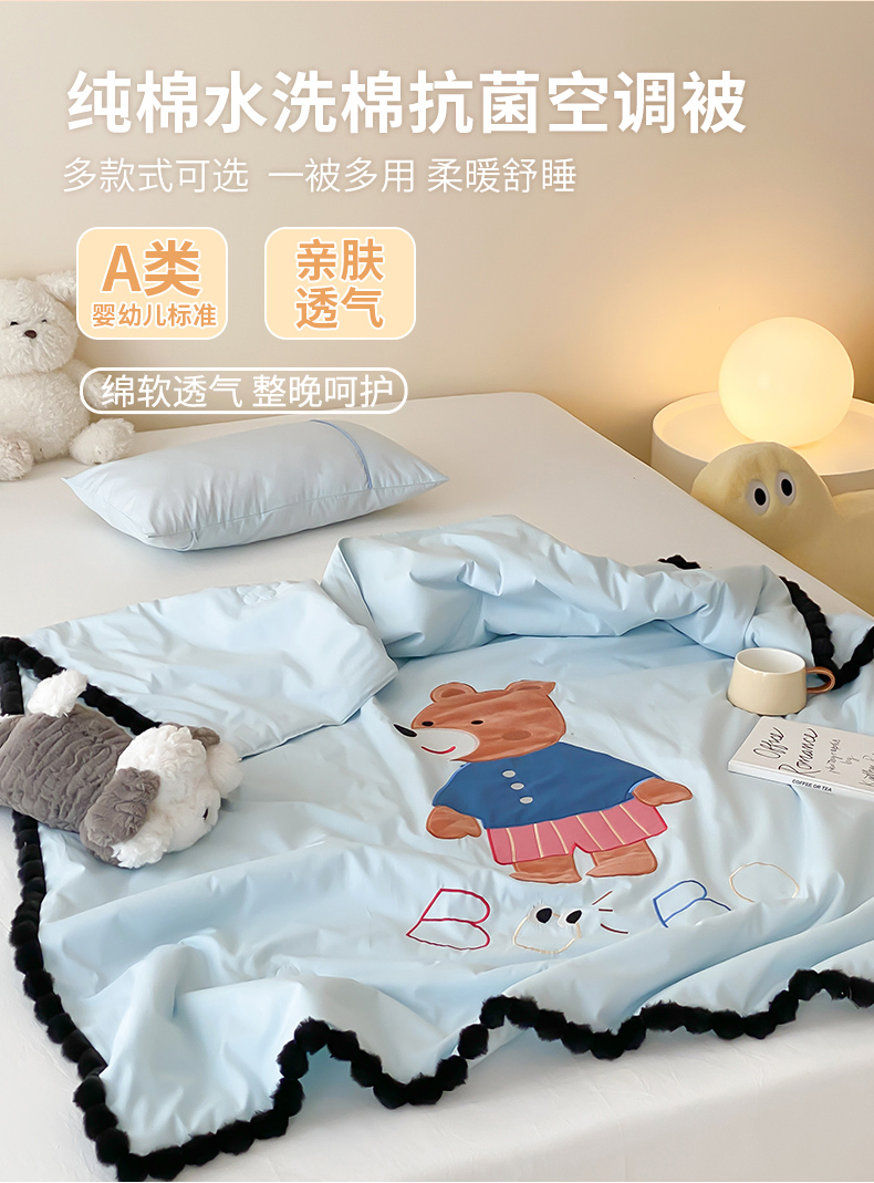 喜多兔儿童家纺 2024新品全棉水洗棉夏被空调被小安馨被子 蓝色小熊崽