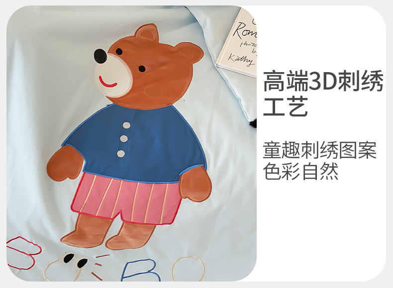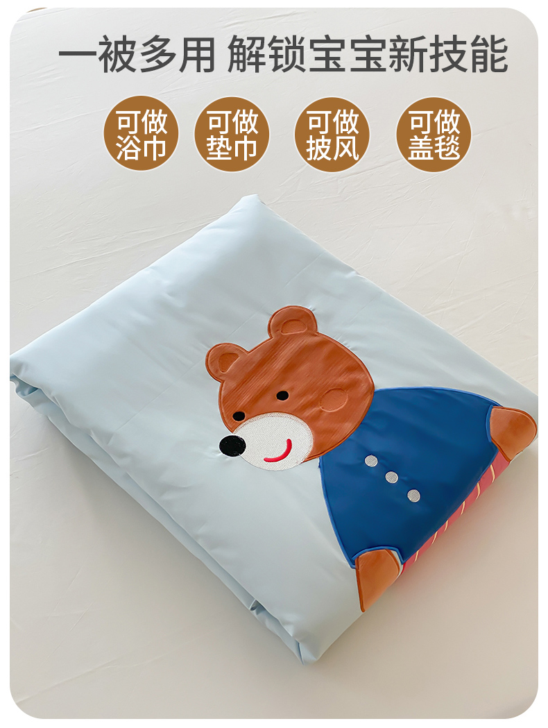 (总)喜多兔儿童家纺 2025春夏新款小软萌贴布绣纱布被,粉色软萌小兔,卡其色软萌小熊,蓝色软萌小象,绿色软萌恐龙,组合图仅供展示