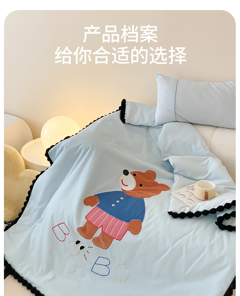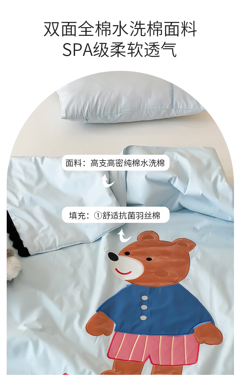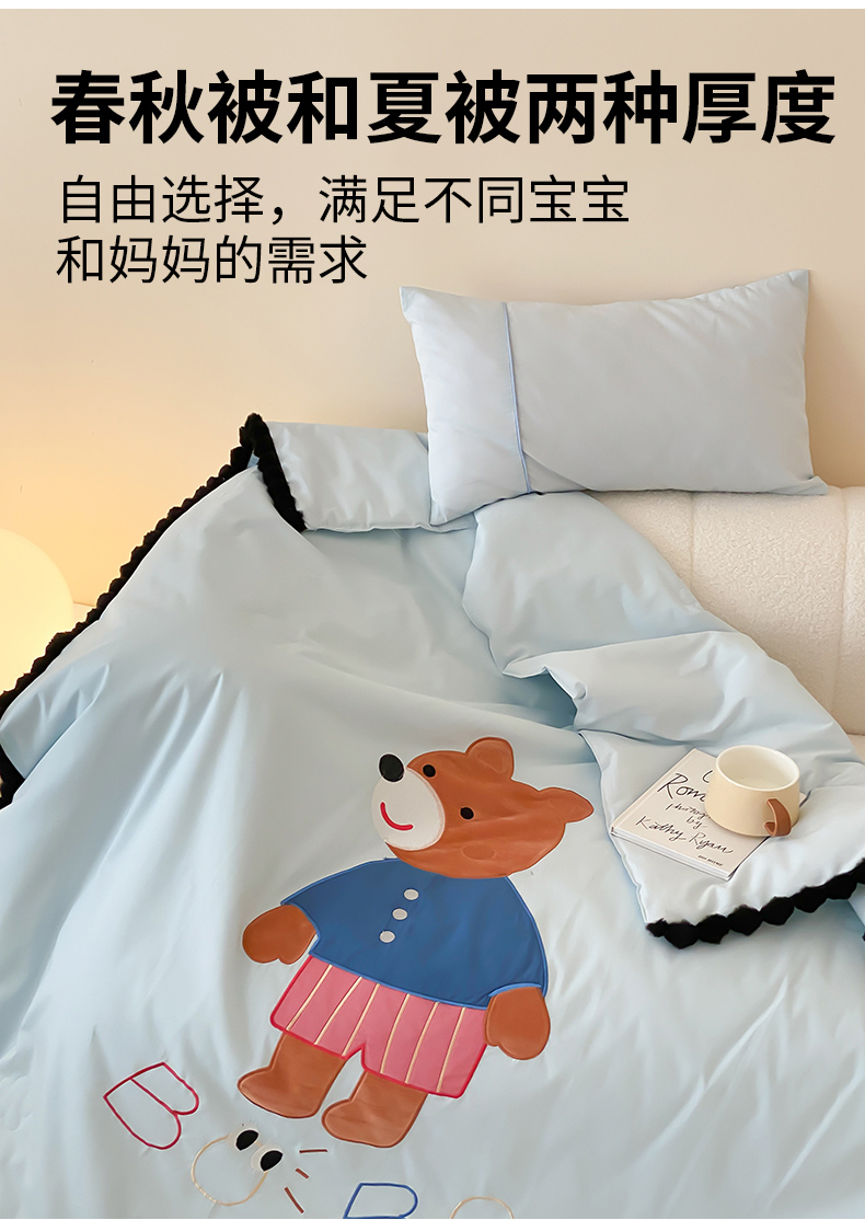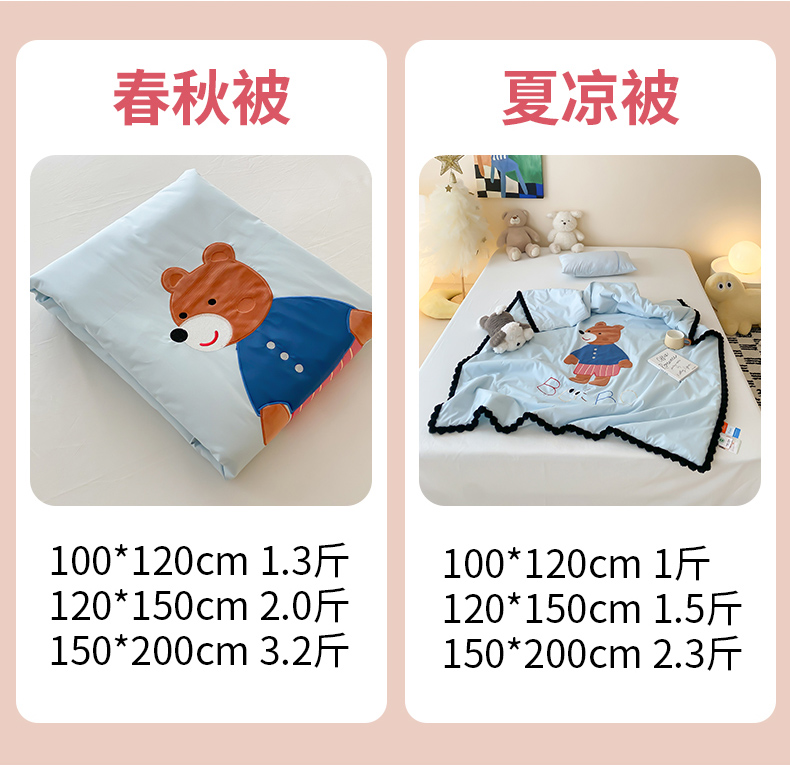 商品名称:喜多兔儿童家纺 2024新品全棉水洗棉夏被空调被小安馨被子 蓝色小熊崽