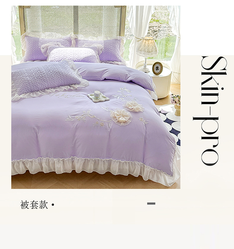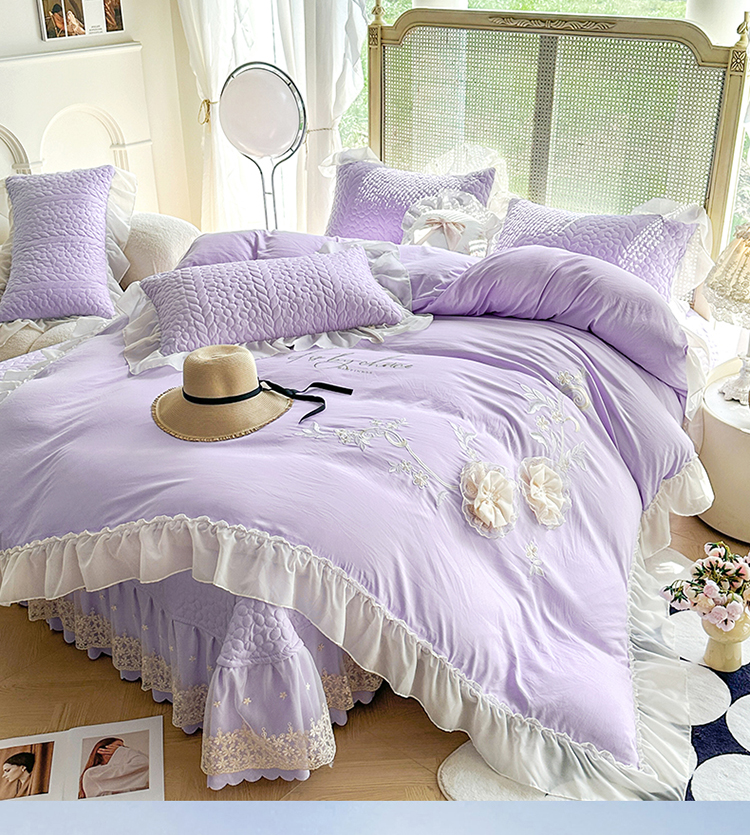 (总)漫布云 2025新款230g高克重韩版立体盘花牛奶蚕丝绒绣花四件套床裙款被套-洛丽塔系列,洛丽塔-嫩黄 ,洛丽塔-香芋紫 , 洛丽塔-珍珠粉,洛丽塔-婴儿蓝