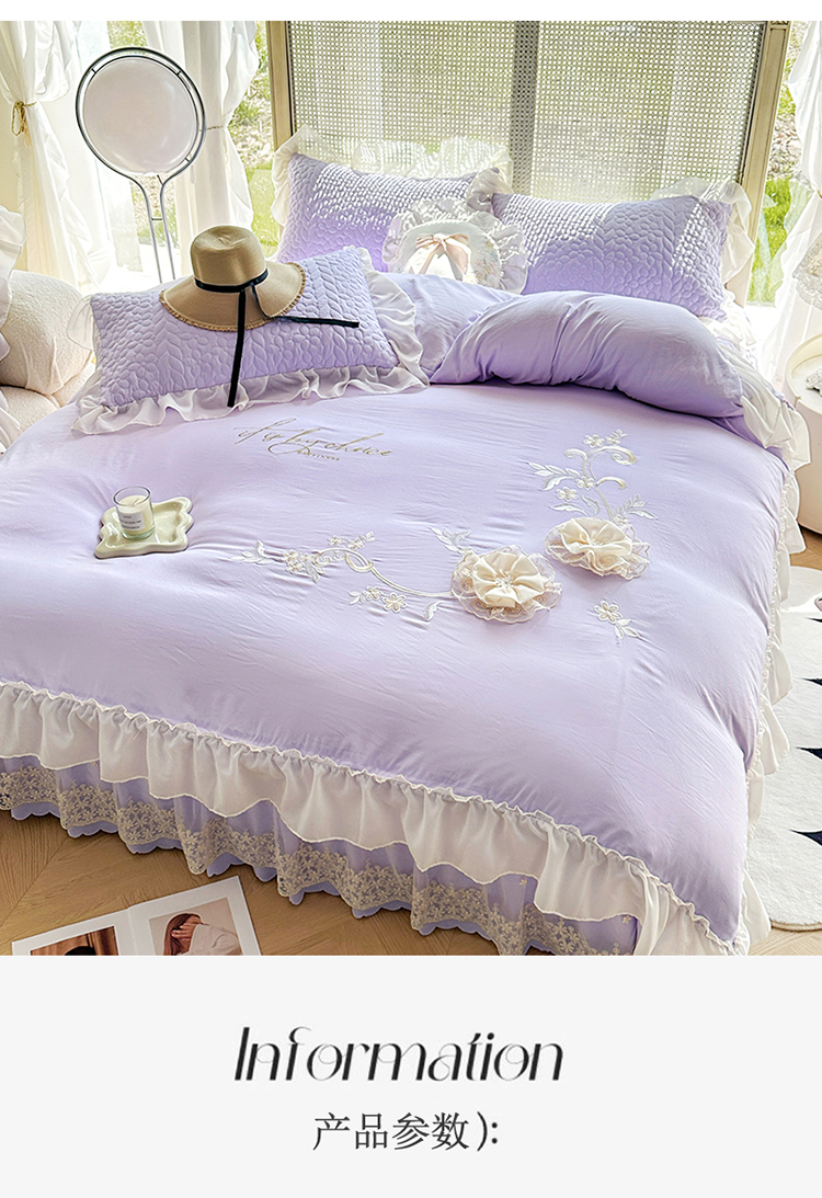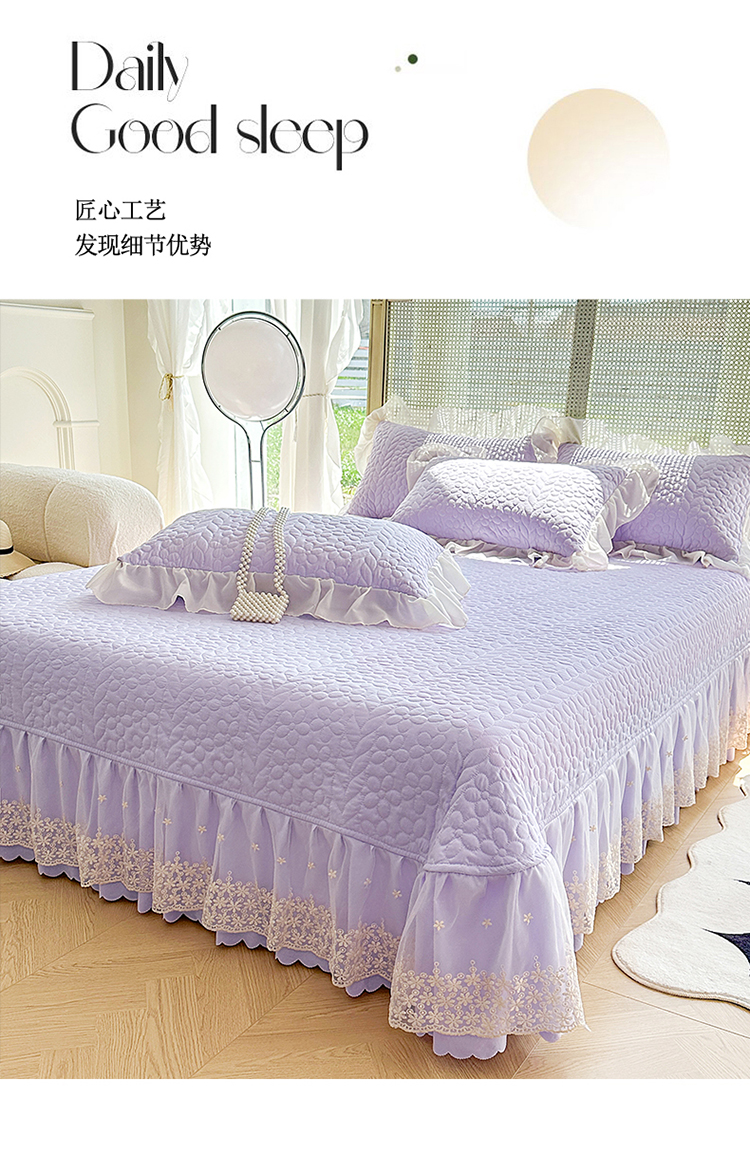 商品名称:漫布云2025韩版法式公主风水洗棉立体花绣花床盖款四件套蕾丝床盖款三件套