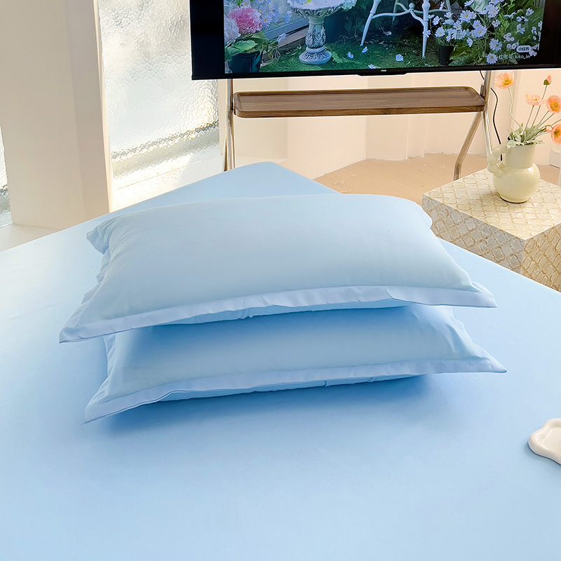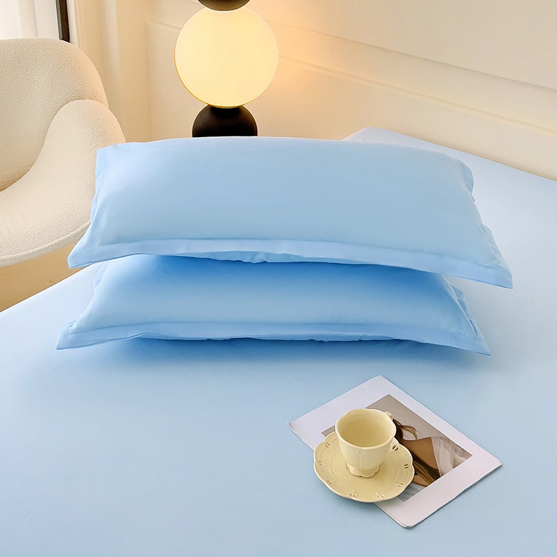 楠沐家纺 2025年新款芦荟棉柔软亲肤纯色枕套 天蓝