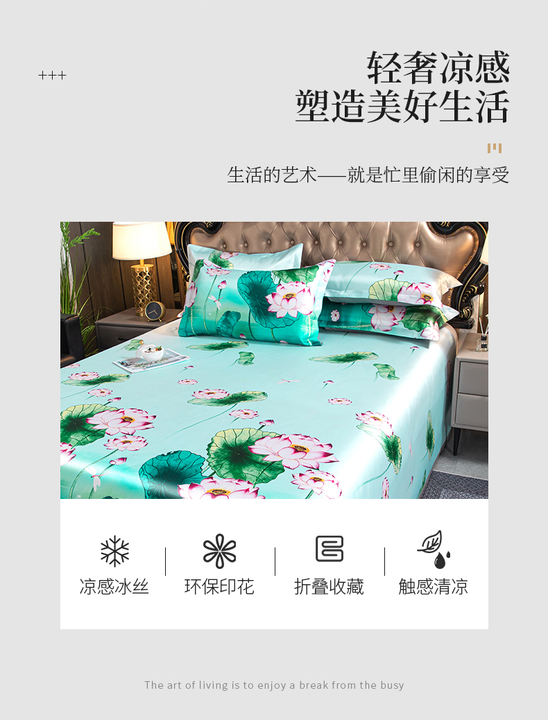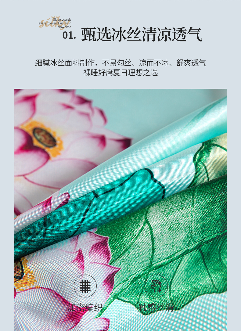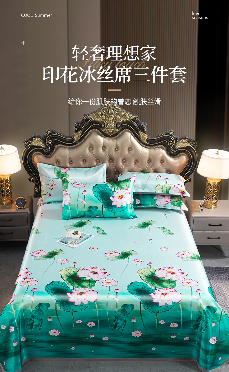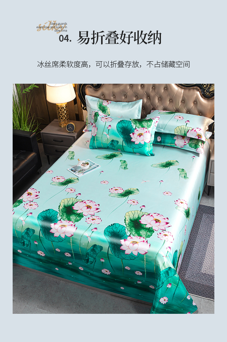 商品名称:梵克保罗 2024新款印花冰丝凉席套件-系列一 荷塘月色