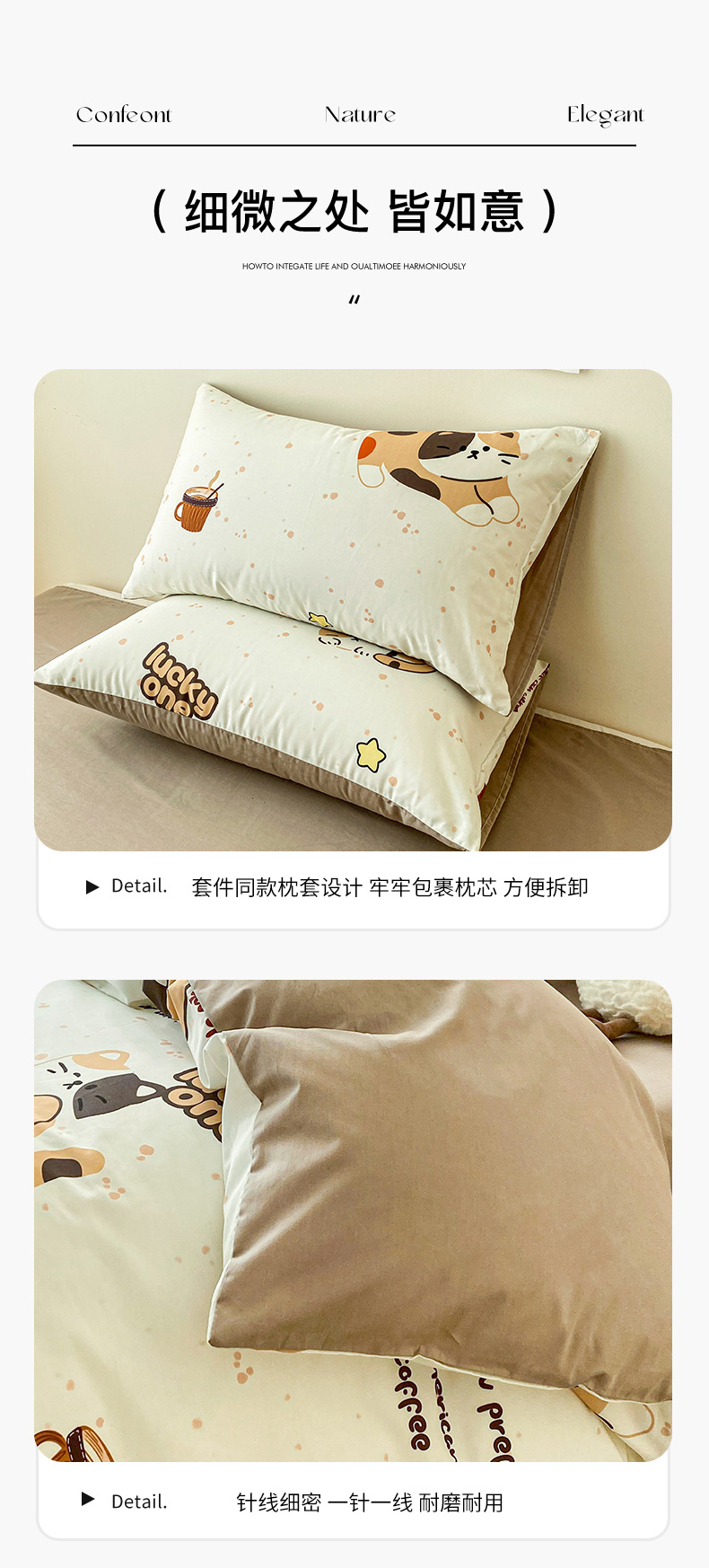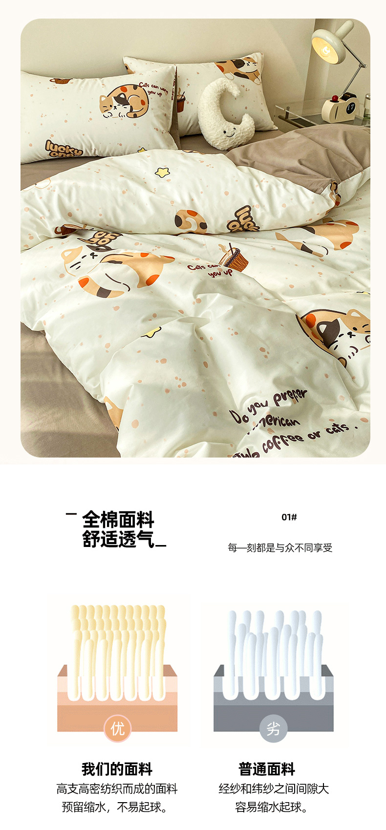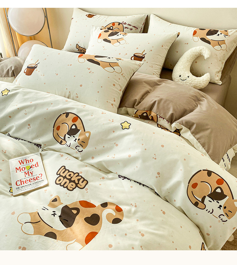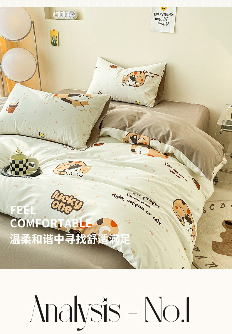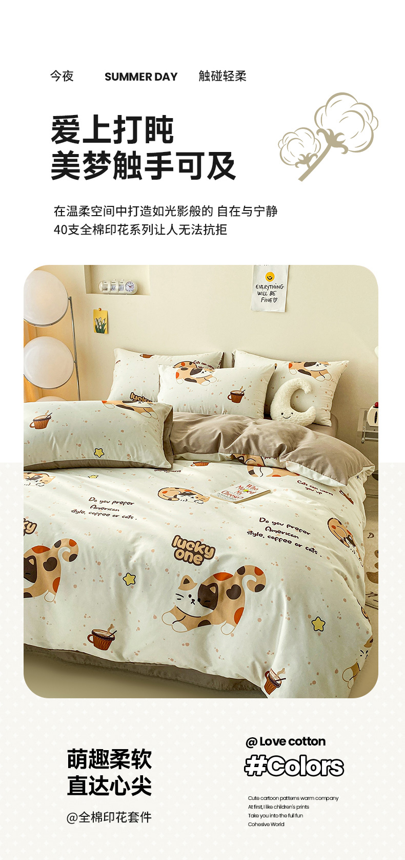恋人优选 2024新款40支全棉卡通数码印花四件套 咖啡猫