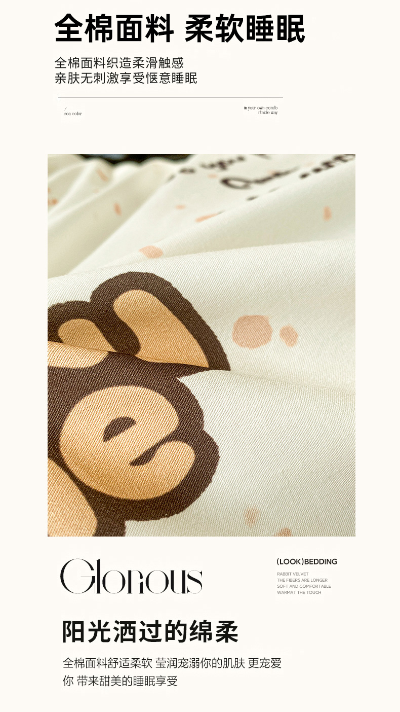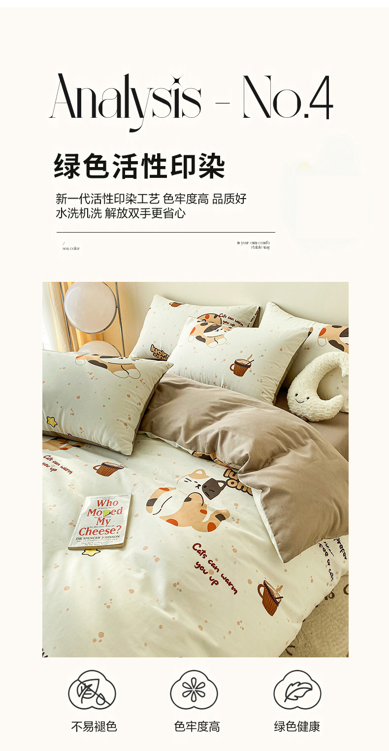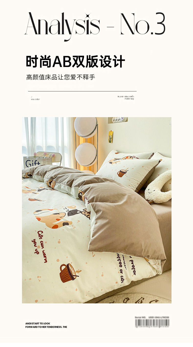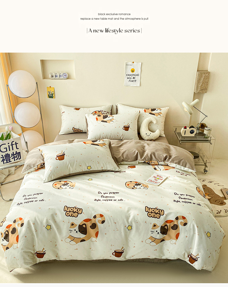 恋人优选 2024新款40支全棉卡通数码印花四件套 咖啡猫