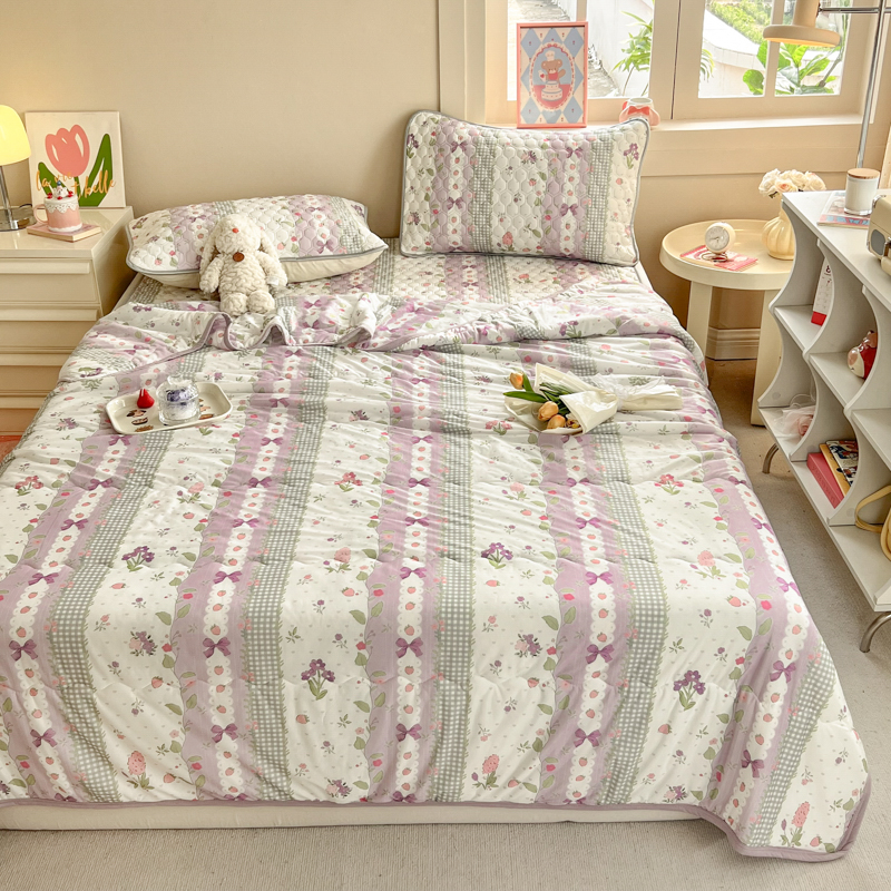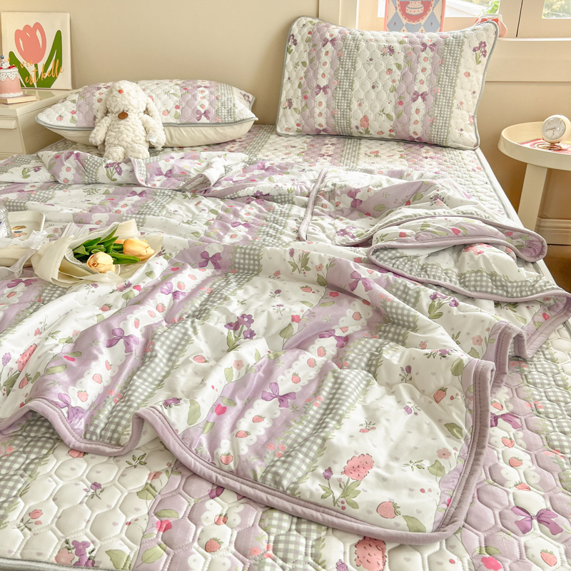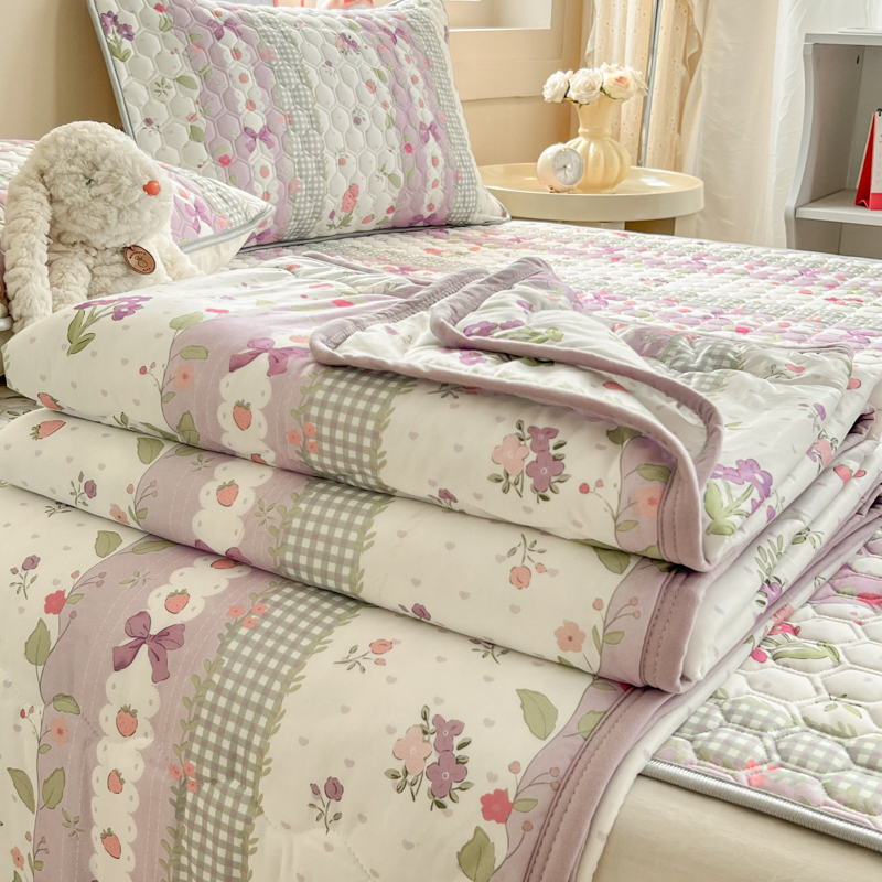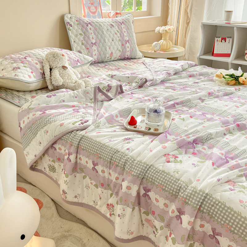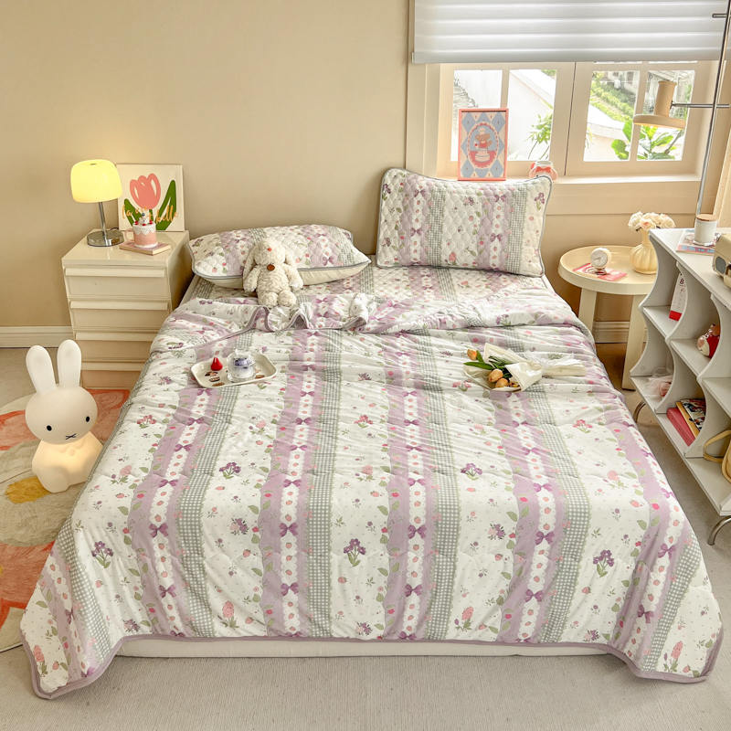 当前位置: 91家纺网 > 商品网购 > 被子 > 普通夏被 > 简宜家居(朝初家纺) 2025新款凉感丝夏被席四件套紫藤花花