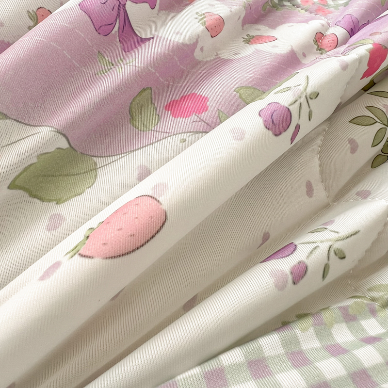 (总)简宜家居(朝初家纺) 2026新款全棉绗缝花边床盖四件套,幸福小兔,暖菊花兔,牵藤兔,素条花-粉,素条花-蓝,兔与花笺