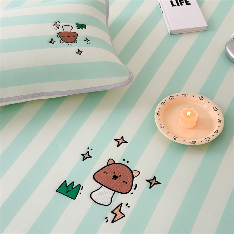珺柔家纺 2024新款A类刺绣冰柔丝软凉席 小蘑菇