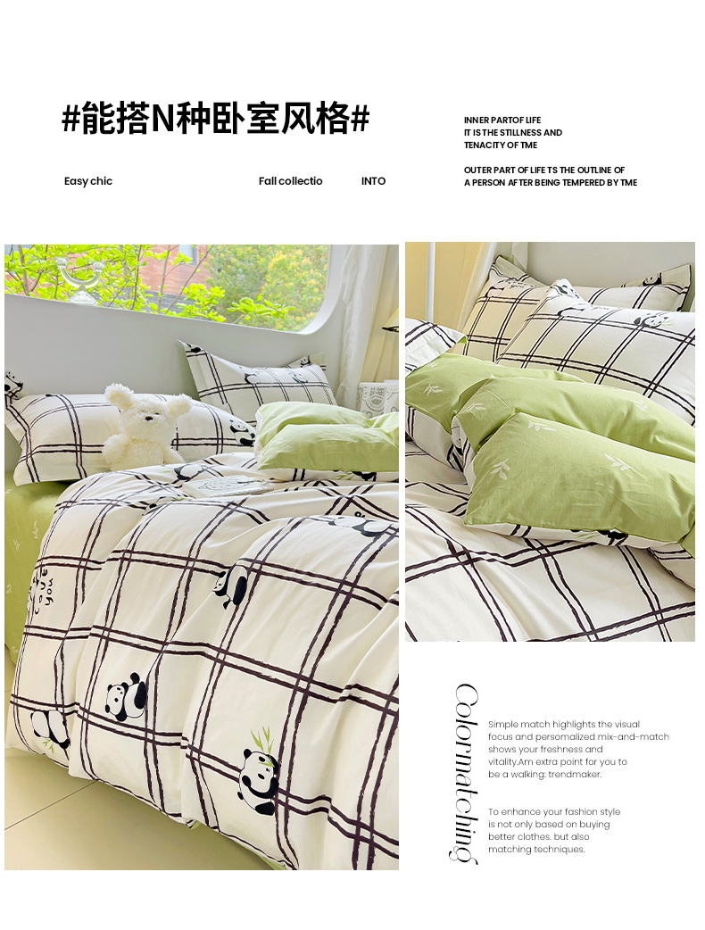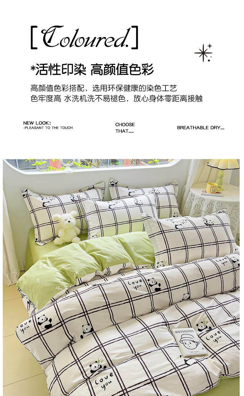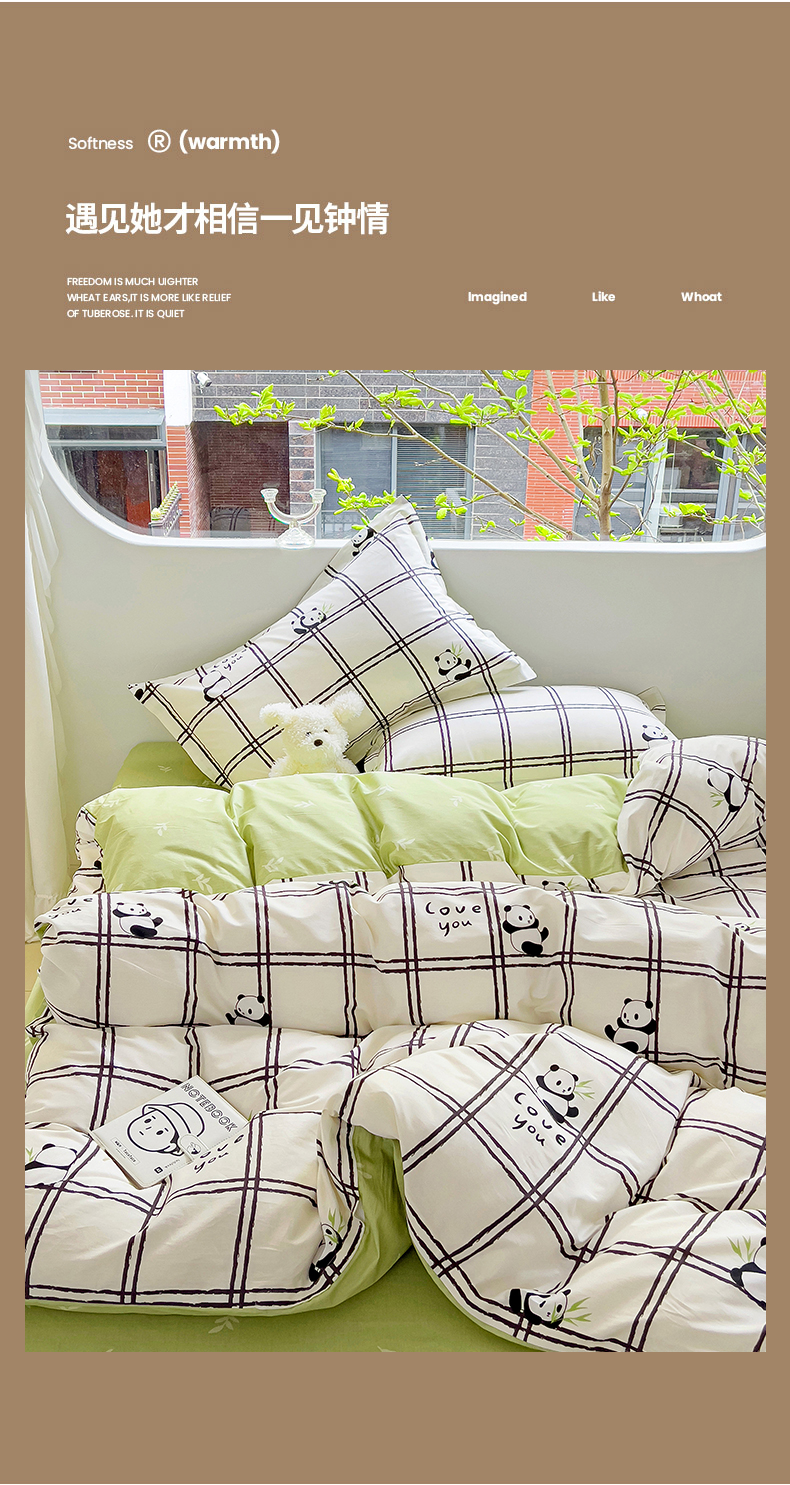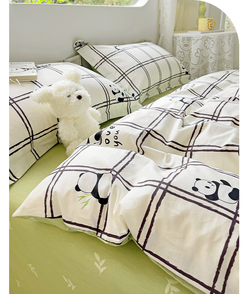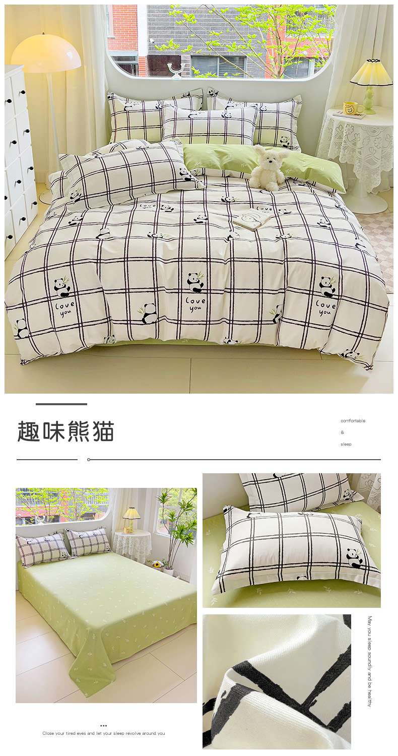 商品名称:暖芯优选 204新款直播爆款全棉-ins印花系列四件套纯棉三件套床单床笠 趣味熊猫