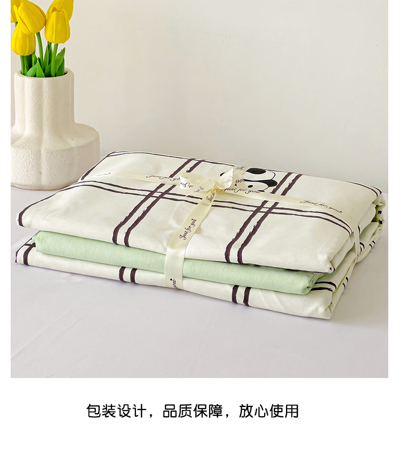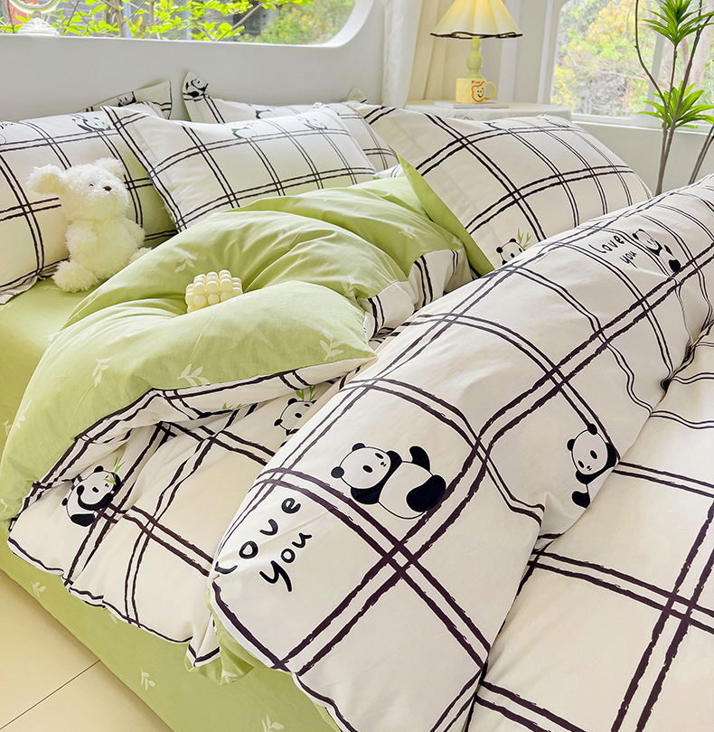 暖芯优选 204新款直播爆款全棉-ins印花系列四件套纯棉三件套床单床笠 趣味熊猫