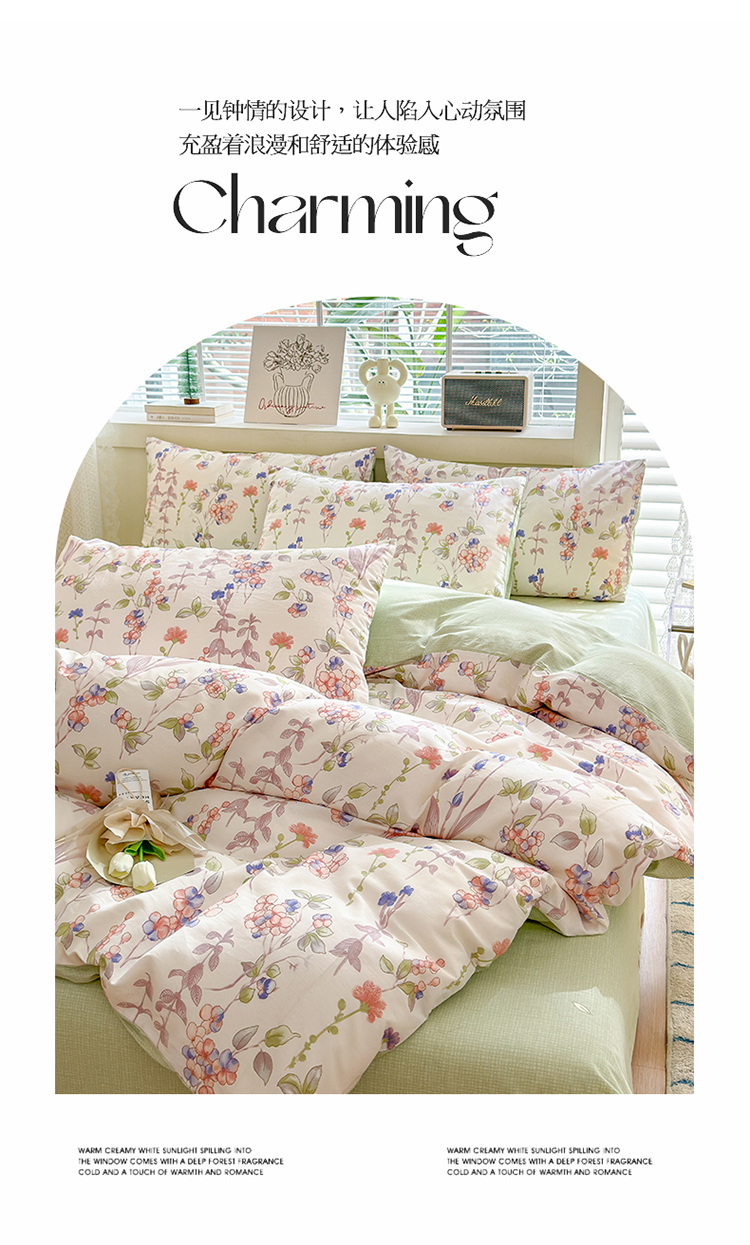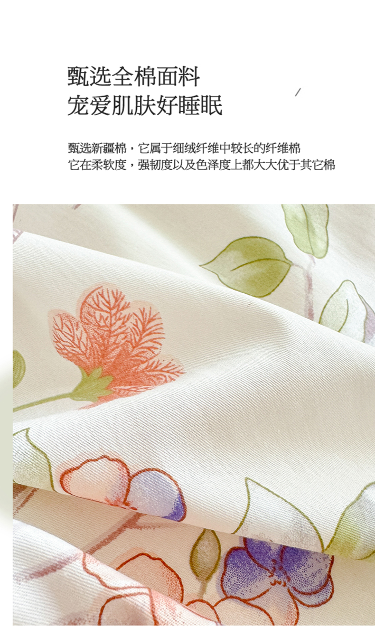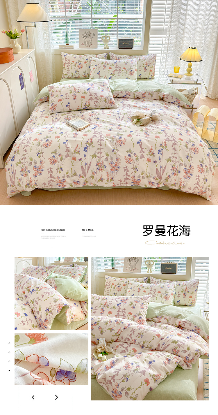 当前位置: 91家纺网 > 商品网购 > 床品套件 > 四件套 > 全棉普通四件套 > 清雅福 2024新款全棉13372小清新四件套和单品系列第四季 罗曼花海