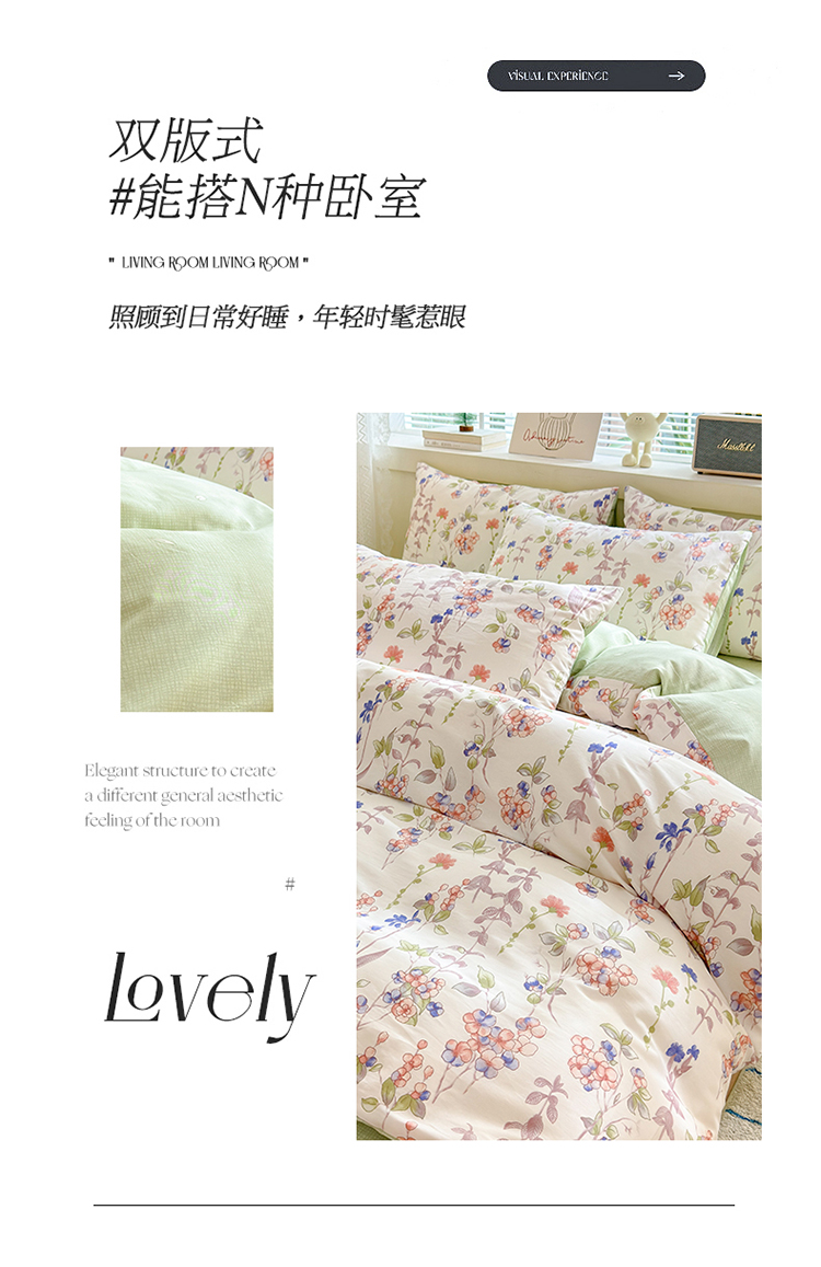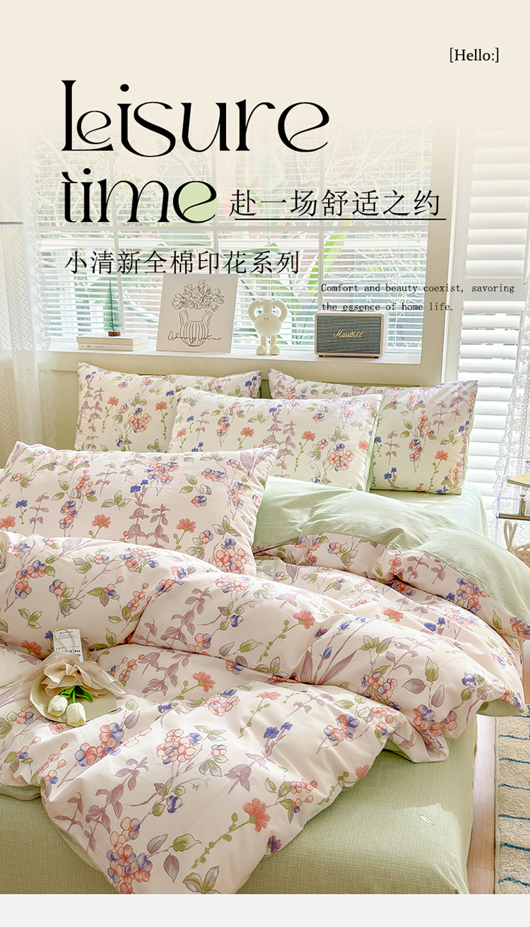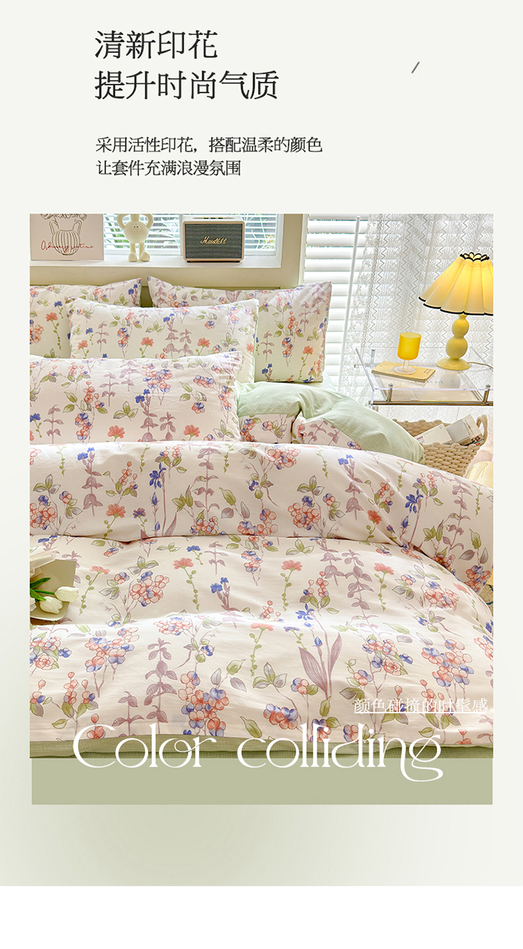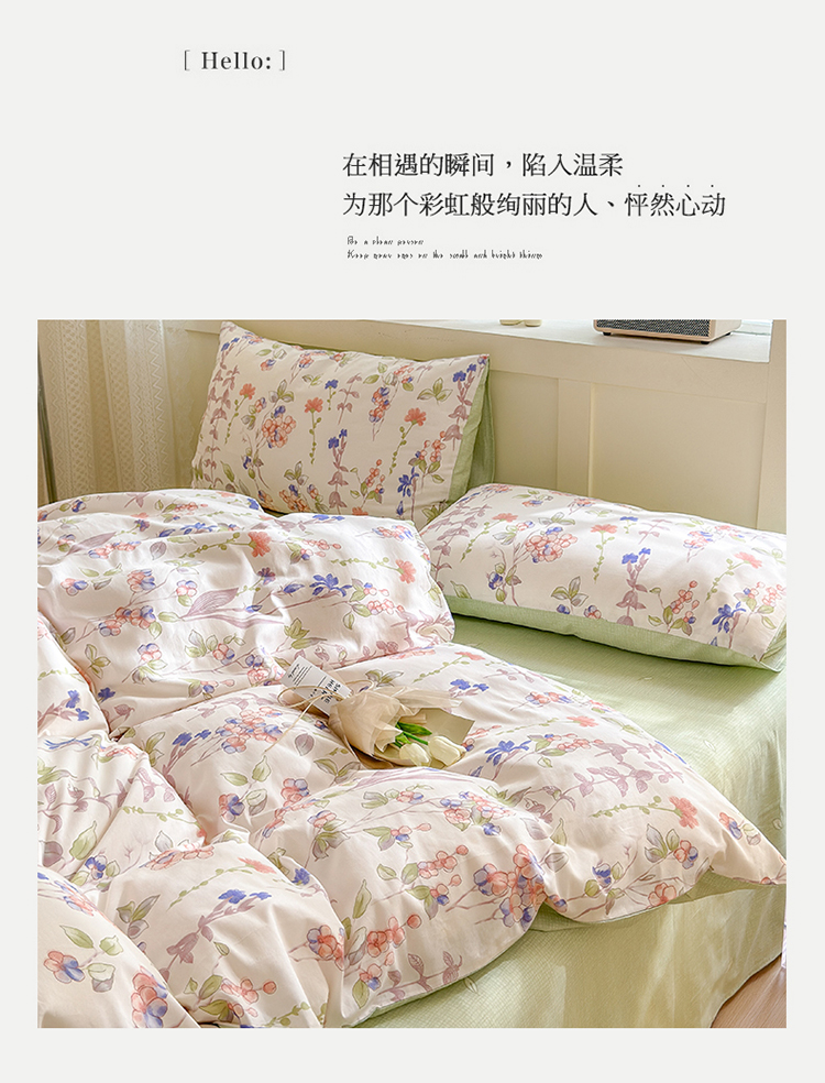 当前位置: 91家纺网 > 商品网购 > 床品套件 > 四件套 > 全棉普通四件套 > 清雅福 2024新款全棉13372小清新四件套和单品系列第四季 罗曼花海