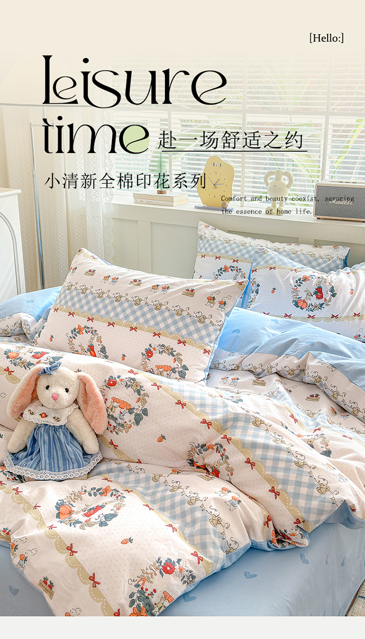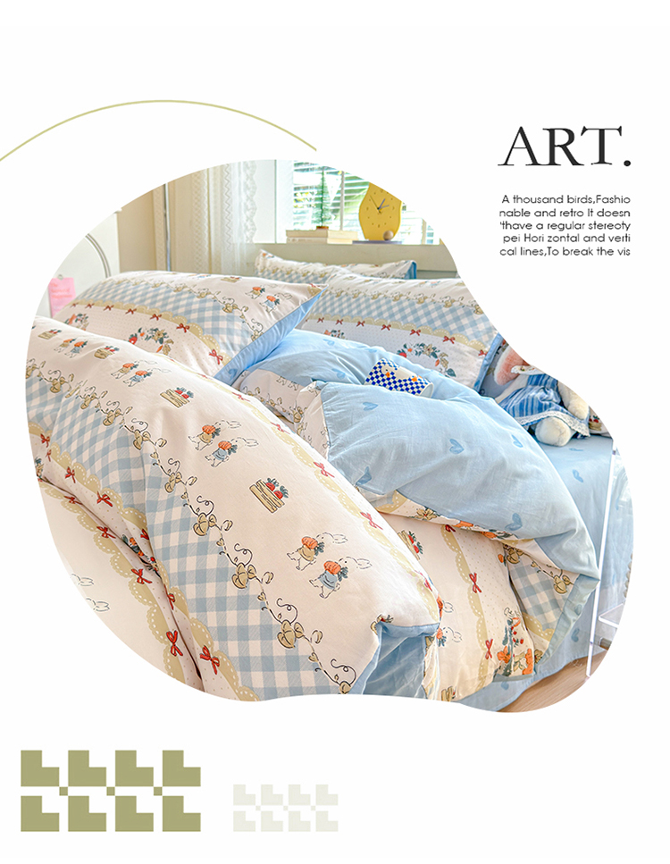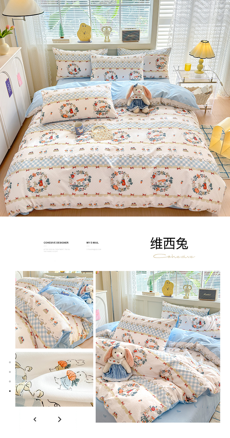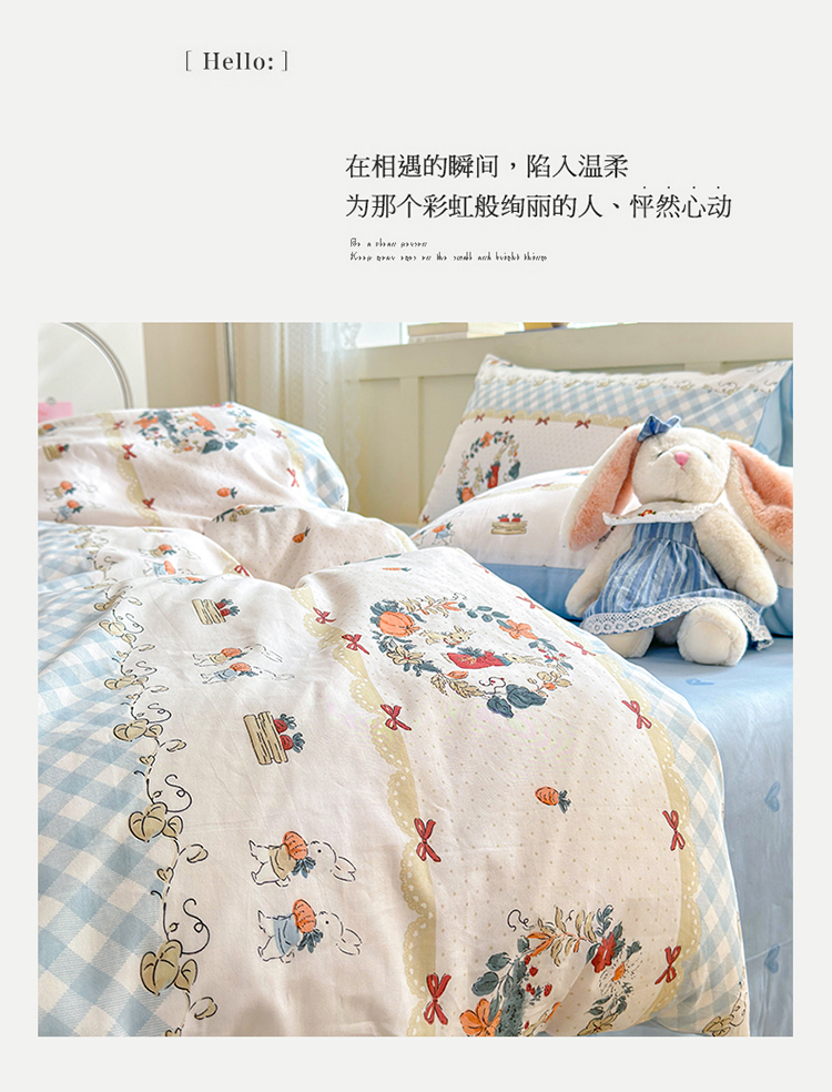 当前位置: 91家纺网 > 商品网购 > 床品套件 > 四件套 > 全棉普通四件套 > 清雅福 2024新款全棉13372小清新四件套和单品系列第四季 维西兔