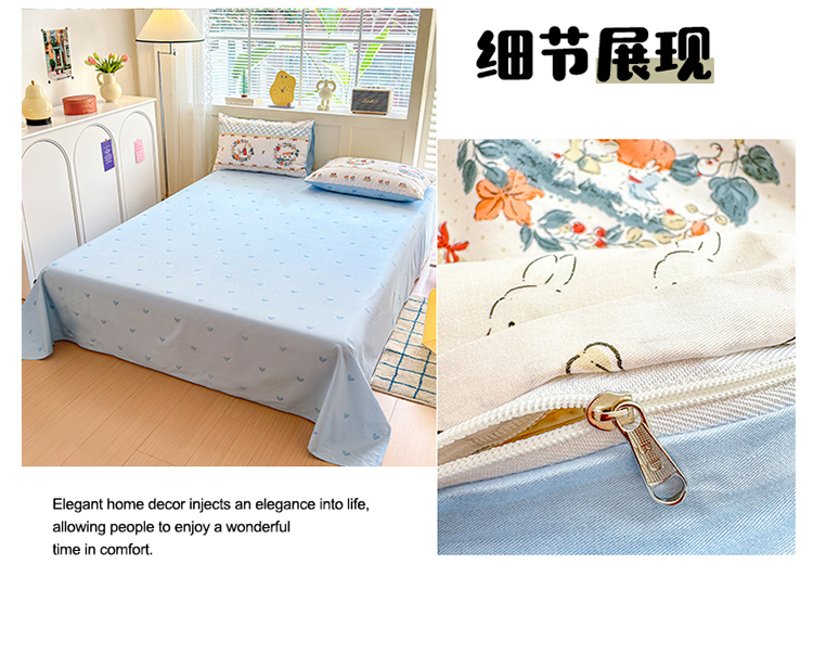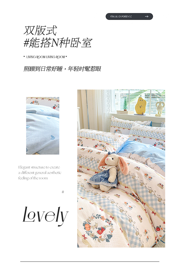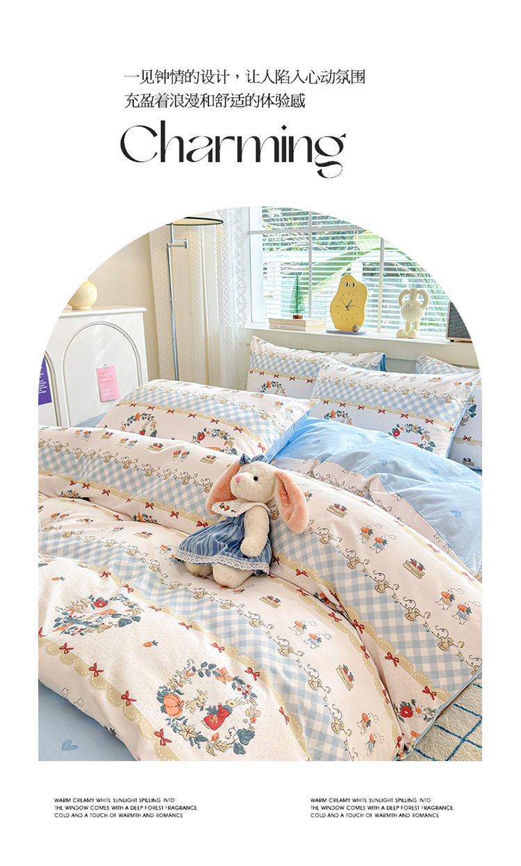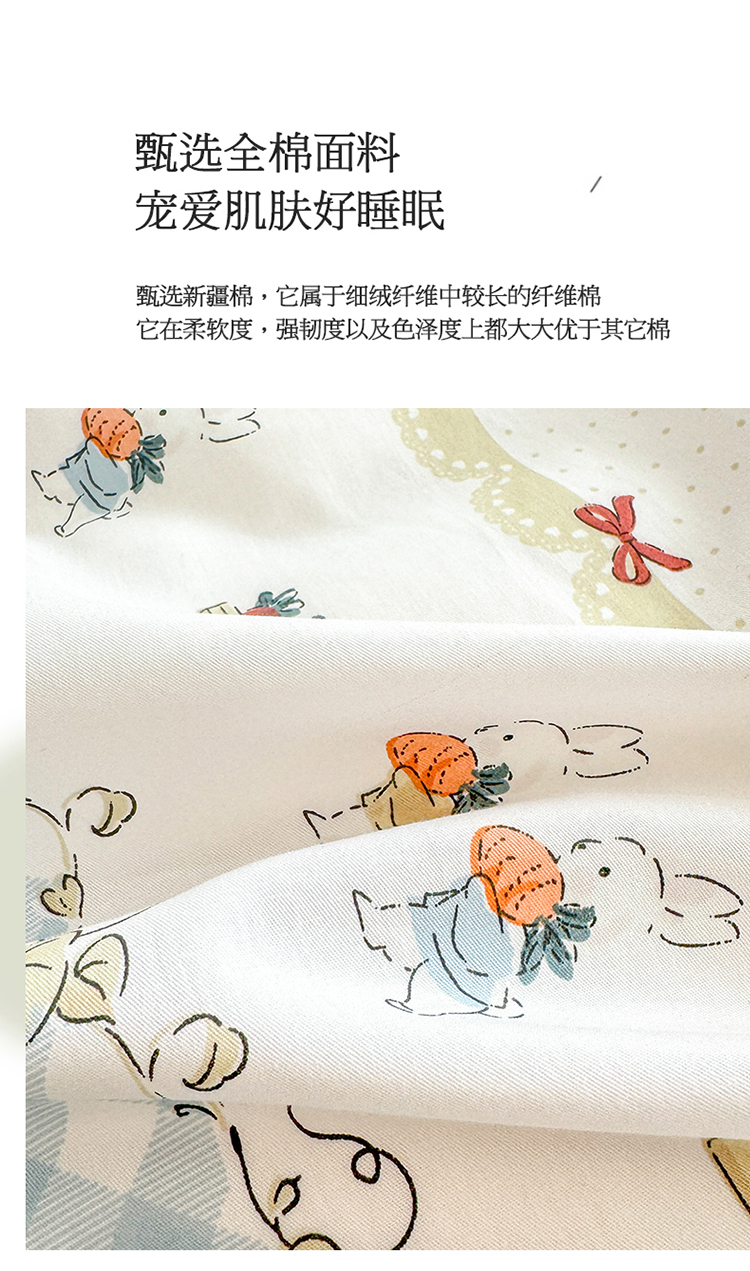 当前位置: 91家纺网 > 商品网购 > 床品套件 > 四件套 > 全棉普通四件套 > 清雅福 2024新款全棉13372小清新四件套和单品系列第四季 维西兔